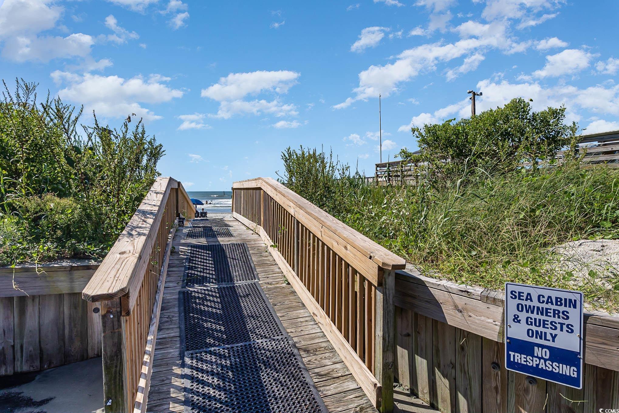 This direct oceanfront 1-bedroom, 1-bath condo offers stunning views, an open floor plan, and abundant natural light. The kitchen is equipped with appliances, granite countertops, and ample cabinet space, while tile flooring flows throughout the unit for easy maintenance. Built-in bunk beds in the hallway provide additional sleeping space, making this condo both functional and inviting. Perfect as a primary residence, vacation retreat, or investment property, this unit is just steps from the beach. Sea Cabin features exclusive amenities including a private pool and fishing pier, and is ideally located within walking distance of Cherry Grove's shops, restaurants, and attractions--plus it's just minutes from all the excitement of the Grand Strand.