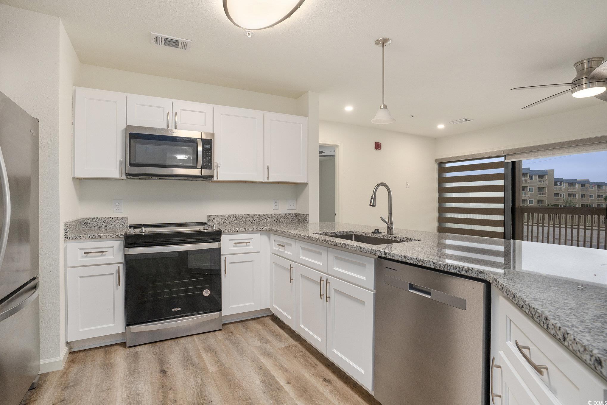 Welcome to coastal living at its finest at 9661 Shore Dr #A-38 in the desirable Ocean Bridge community of Myrtle Beach. This beautifully updated 2-bedroom, 2-bath first-floor end unit offers an open layout with upgraded cabinetry, stainless steel appliances, brand new washer dryer set, and a granite breakfast bar. Enjoy ocean views from the living room, kitchen, and primary suite, or relax on your private 12’ x 9’ balcony while feeling the sea breeze. The community features an outdoor pool, low HOA dues covering water and maintenance, and convenient parking right outside your door. Perfectly positioned just steps from the beach, this condo offers the best of both worlds—relaxation and easy access to everything Myrtle Beach has to offer. You’re minutes from popular dining spots like Ocean Annie’s, Flip Flops Bar & Grill, and Apache Pier, plus shopping, golf, and entertainment at Barefoot Landing and Tanger Outlets. Whether you’re looking for a full-time home, vacation getaway, or rental investment, this Shore Drive gem delivers comfort, style, and unbeatable location.
