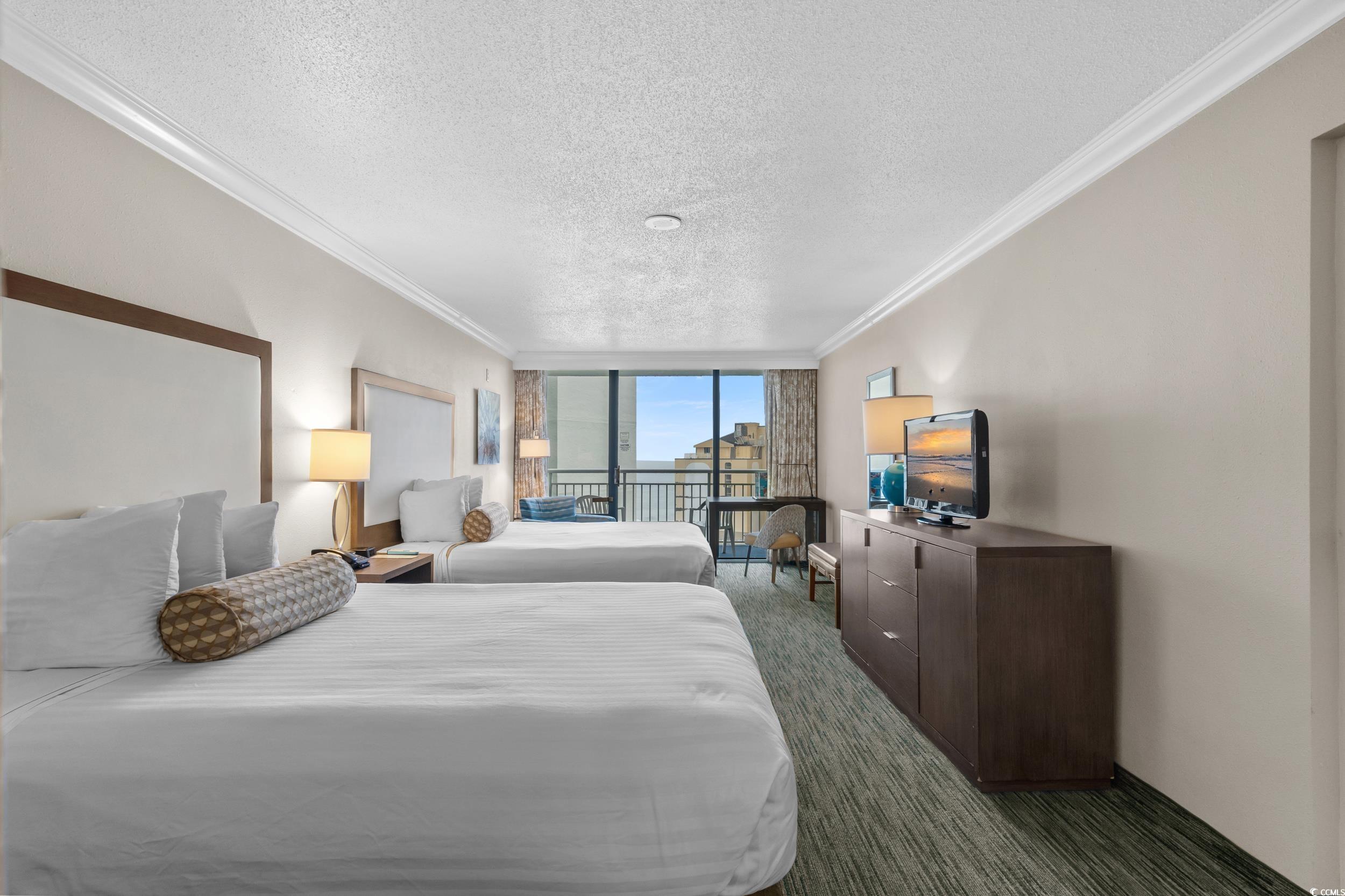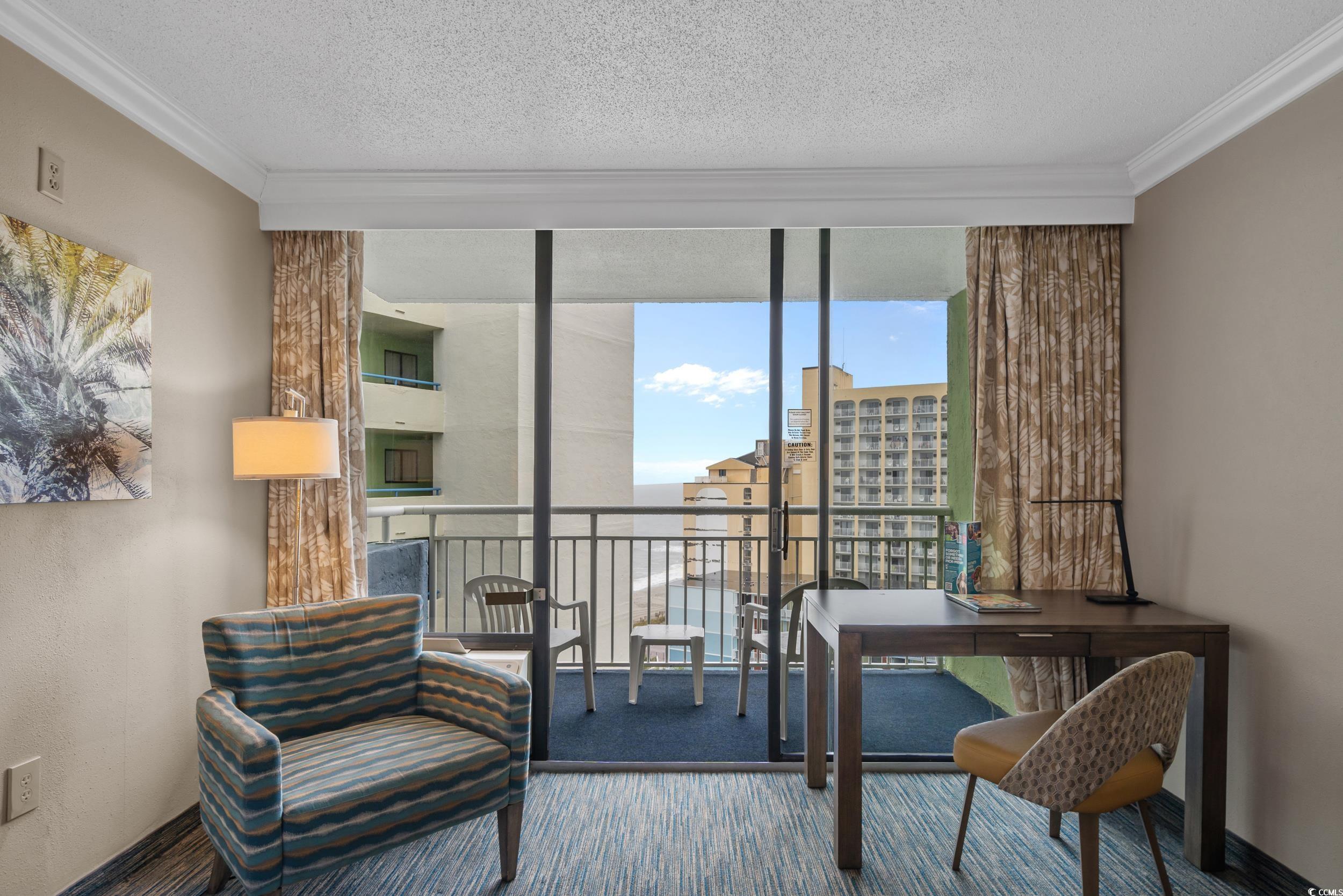 Welcome to beautiful Coral Beach Resort right on the oceanfront of Myrtle Beach! Wake up to ocean views and sounds in this furnished efficiency unit with a private balcony. This welcoming unit features two queen beds, a sitting area, a mini refrigerator, microwave, coffee maker and a bath tub with shower. This is a wonderful get away haven that is sought after for vacation rentals or to enjoy for yourself. There is no shortage of resort amenities with outdoor pools, and indoor pool, gym, lazy rivers, bars, restaurant, hot tubs, arcade, laundry facility, shopping, and even a bowling alley. Coral Beach is located in the heart of Myrtle Beach with a large selection of entertainment routes from Broadway at the Beach, Market Common, Myrtle Beach State Park, the beautiful Atlantic Ocean itself, and the Boardwalk. A great opportunity to own your slice of paradise!