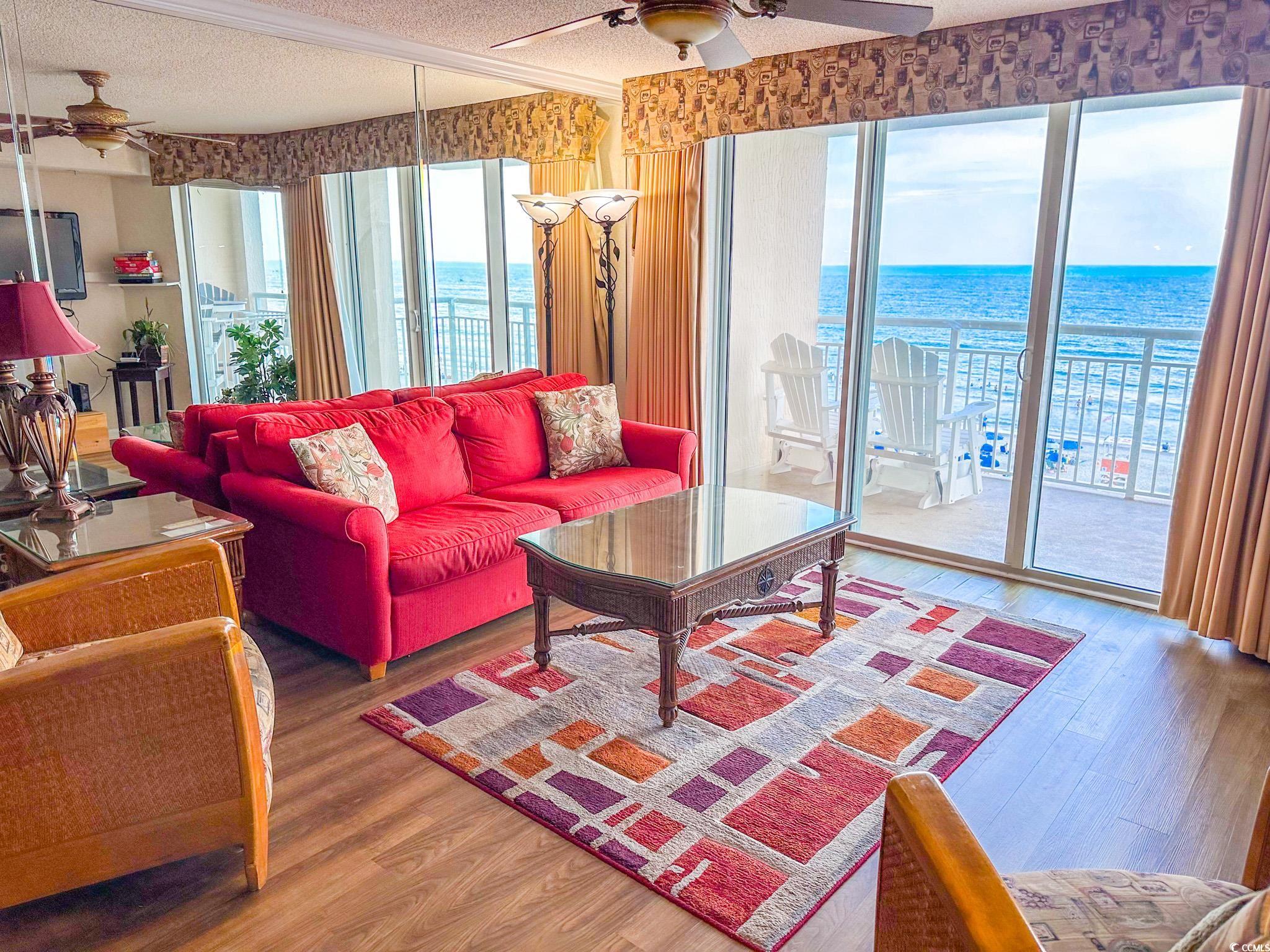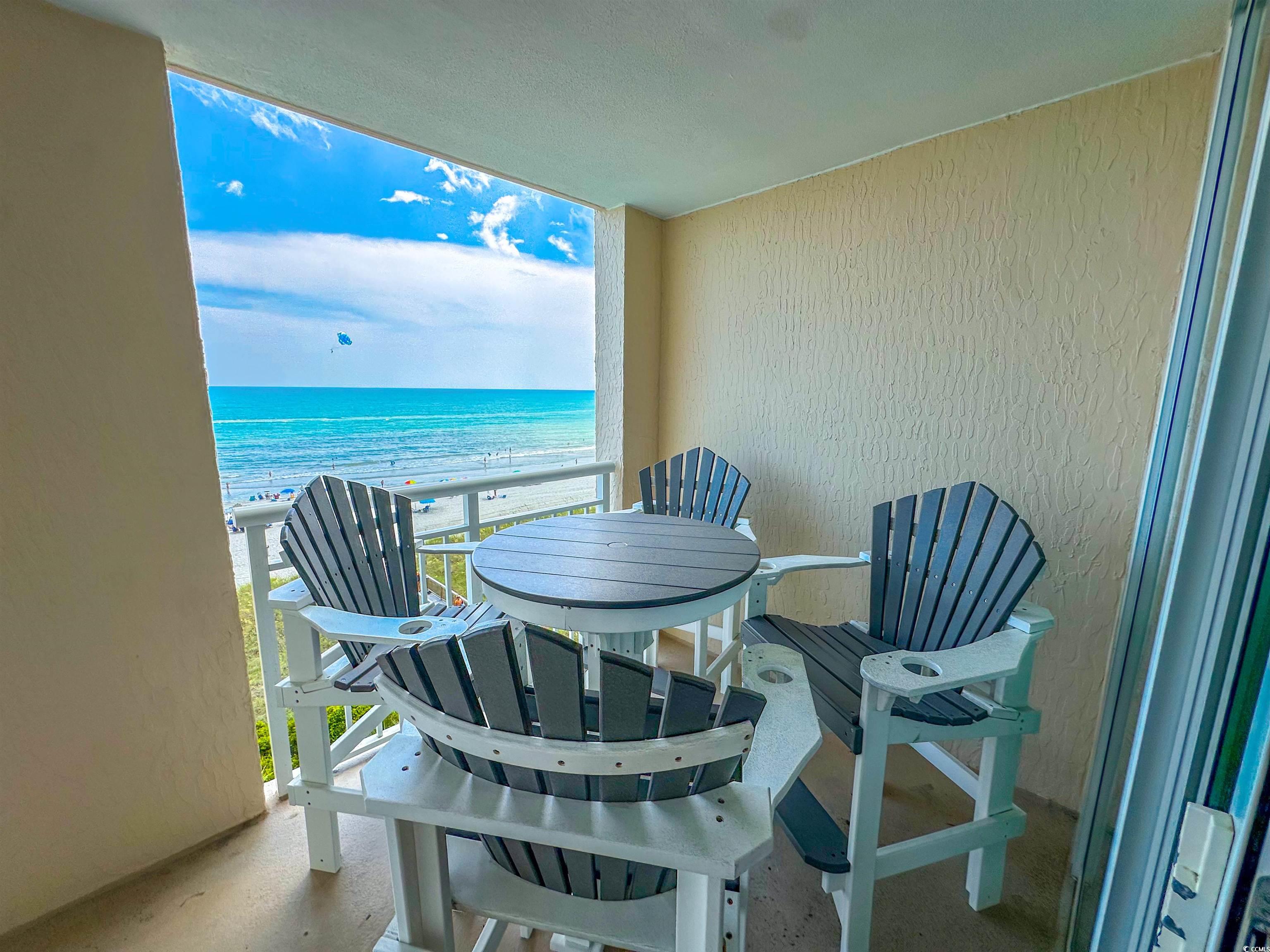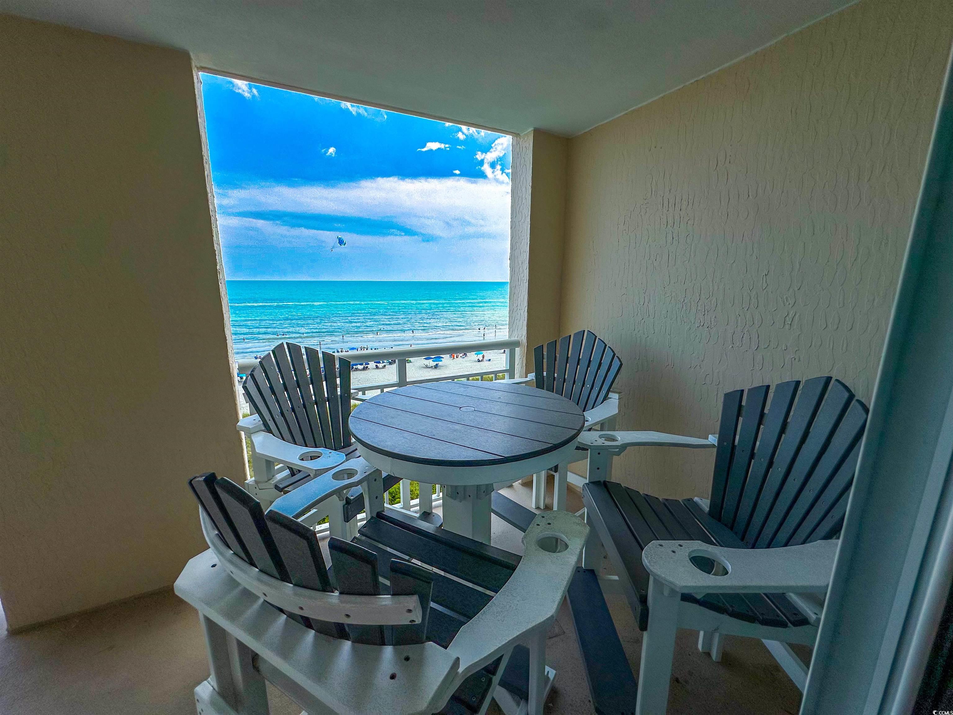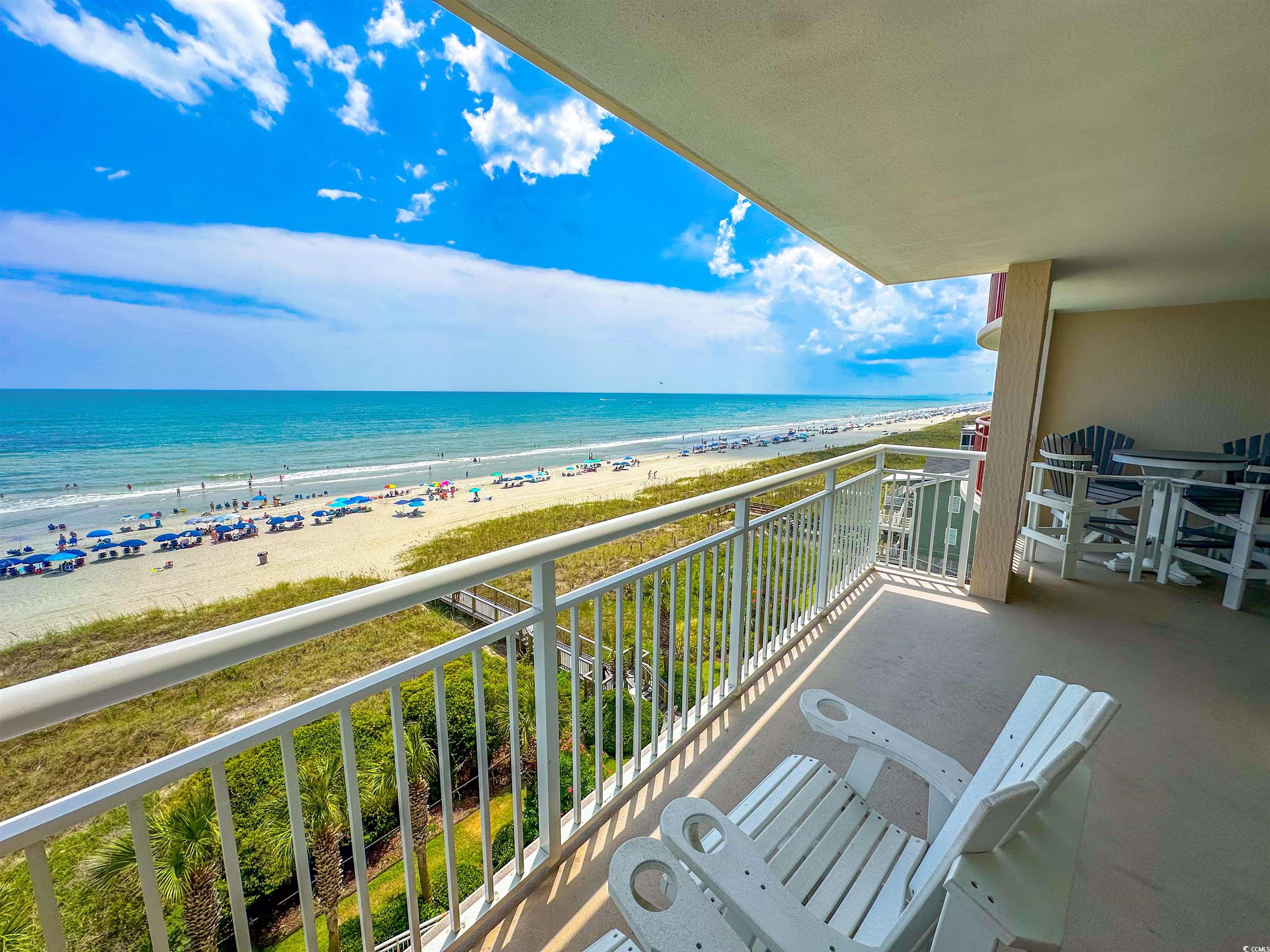 Tranquil Oceanfront Luxury at Crescent Beach. If you crave a peaceful, uncrowded beach experience, this beautiful 2-bedroom, 2-bath condo at South Shore Villas is your perfect getaway. Located on the 5th floor retreat offers stunning Atlantic views and a relaxed, quiet atmosphere. The bright, airy living room features a flat-screen TV, ceiling fan, and free Wi-Fi, opening to a huge 25-foot oceanfront balcony accessible from both the living room and master suite. The fully equipped kitchen boasts granite countertops, a breakfast bar, Keurig coffee maker, and a full-size washer/dryer for easy living. The master suite is pure relaxation with a king-size bed, flat-screen TV, ceiling fan, and a spa-like en-suite bath with double sinks, a jacuzzi tub, and a glass-enclosed shower. The second bedroom also offers a king bed, flat-screen TV, and ceiling fan, with easy access to the second full bath in the hallway. South Shore Villas is an exclusive, low-density complex — just 63 units — meaning no crowded beaches or packed pools. Enjoy convenient covered parking, a beautiful oceanfront pool, and direct beach access in the heart of North Myrtle Beach's Crescent Beach section. Start your day with coffee and a sunrise on the balcony, and end it with a sunset cocktail while the ocean breeze soothes your soul. This is beachfront living the way it was meant to be — calm, comfortable, and unforgettable.