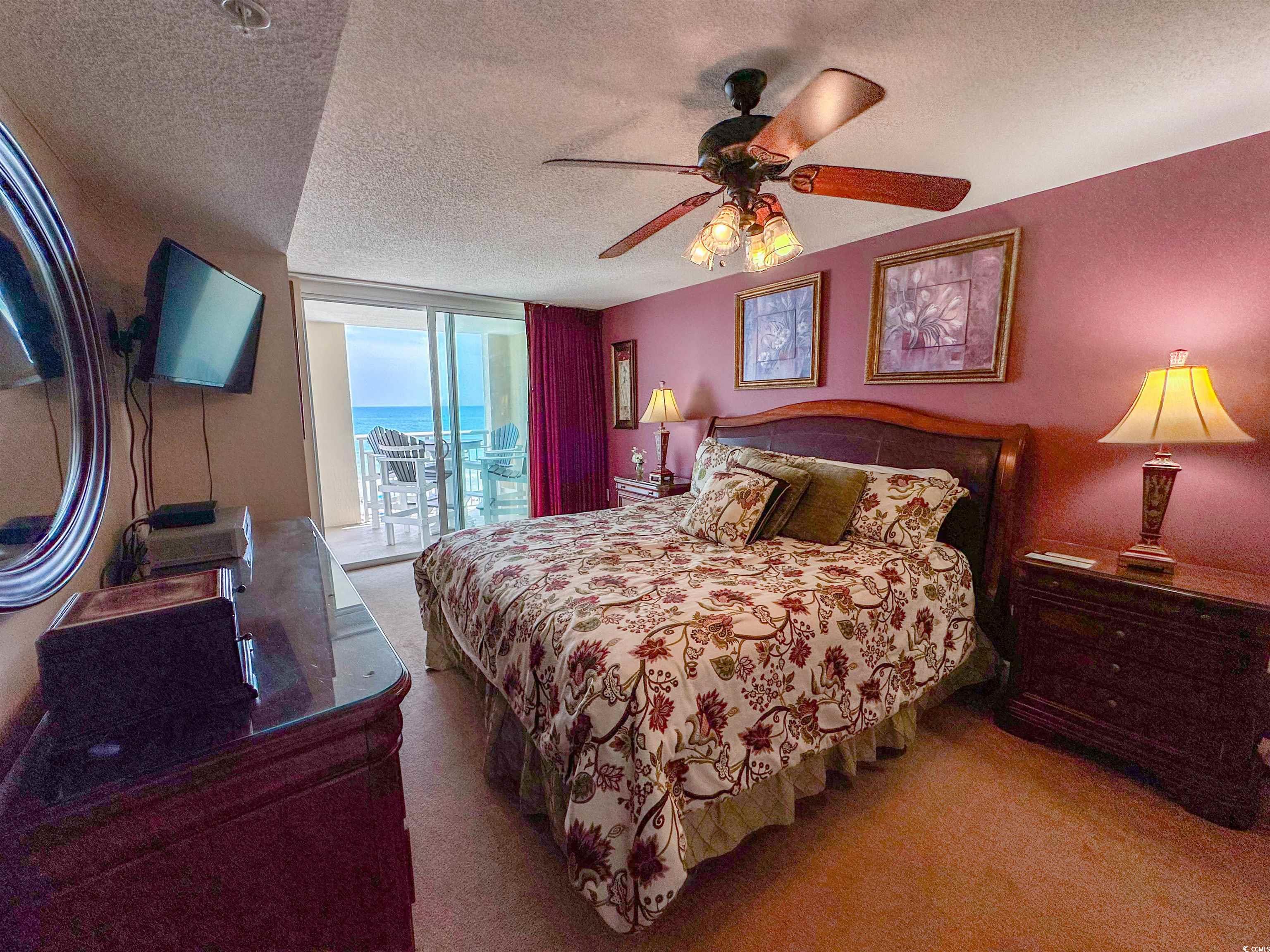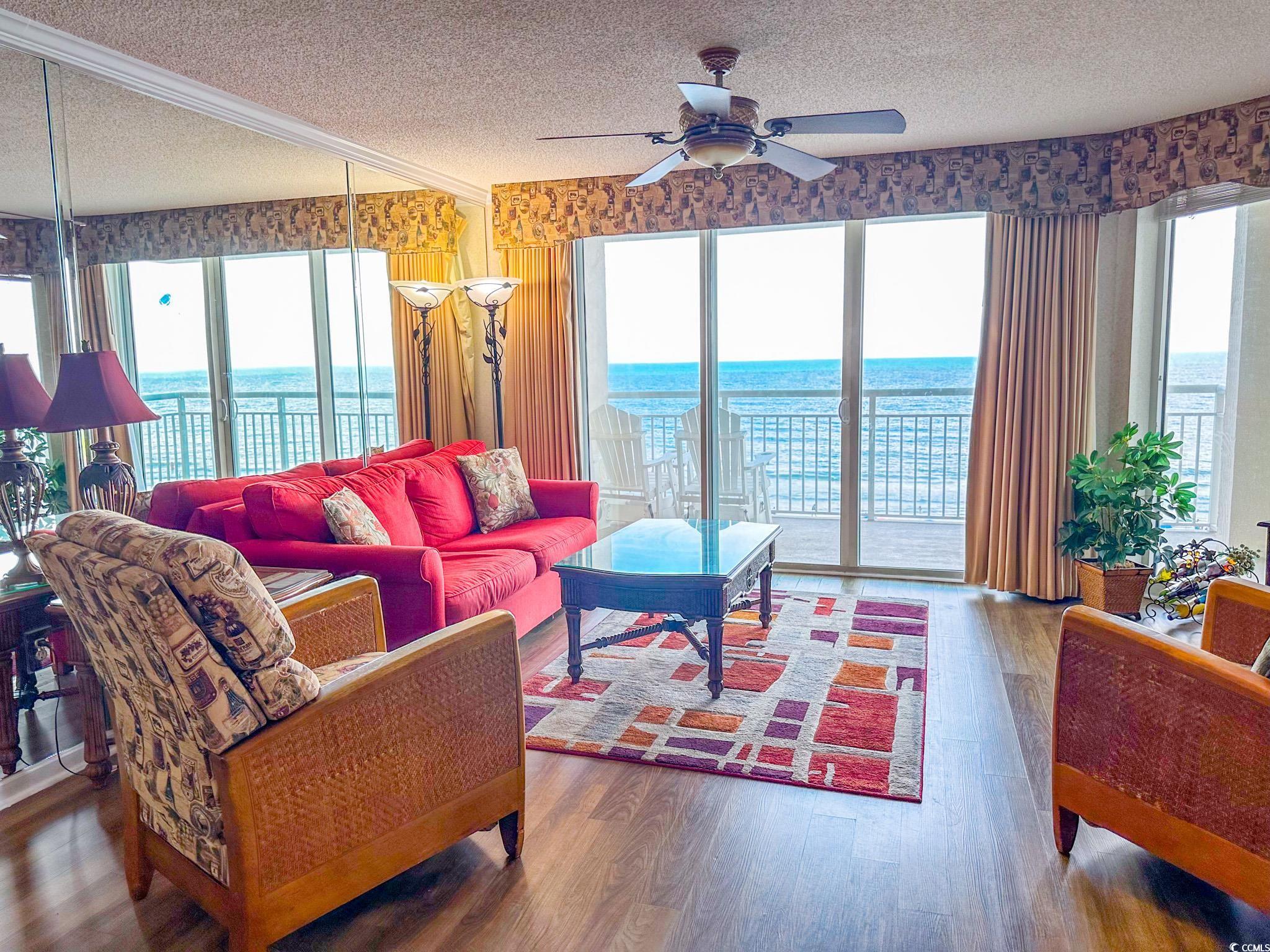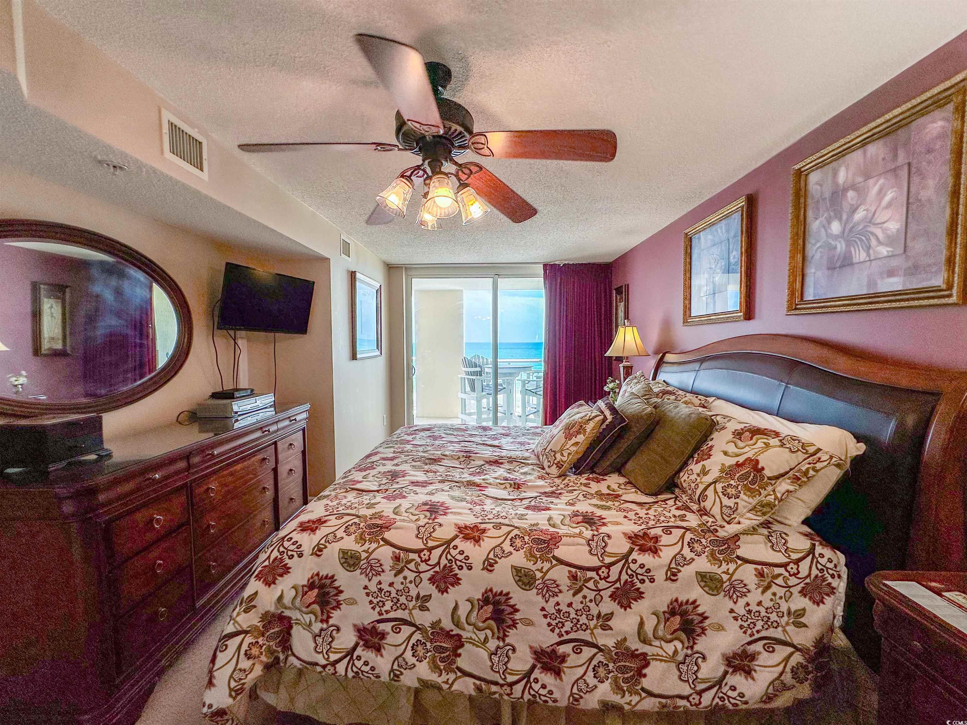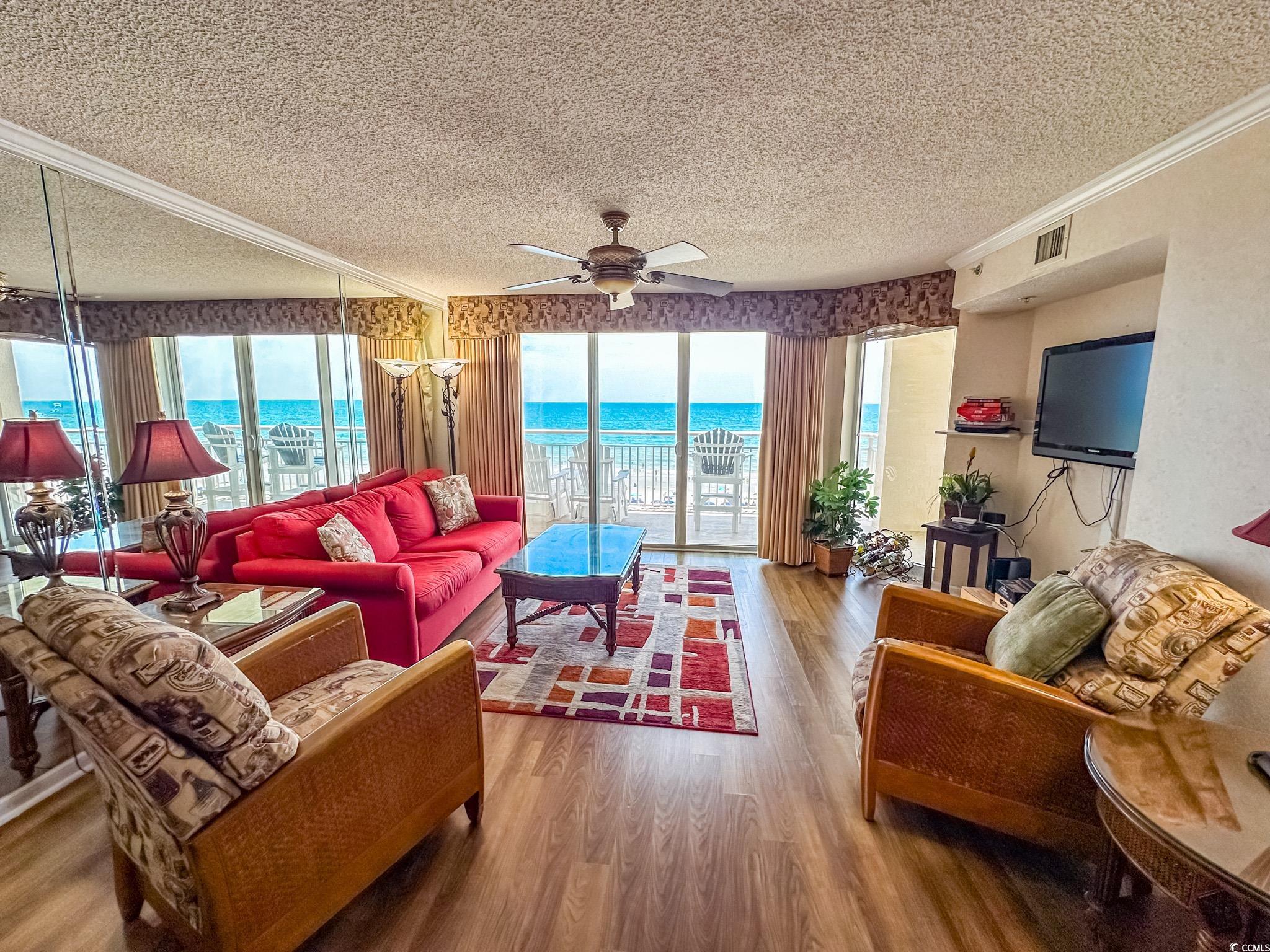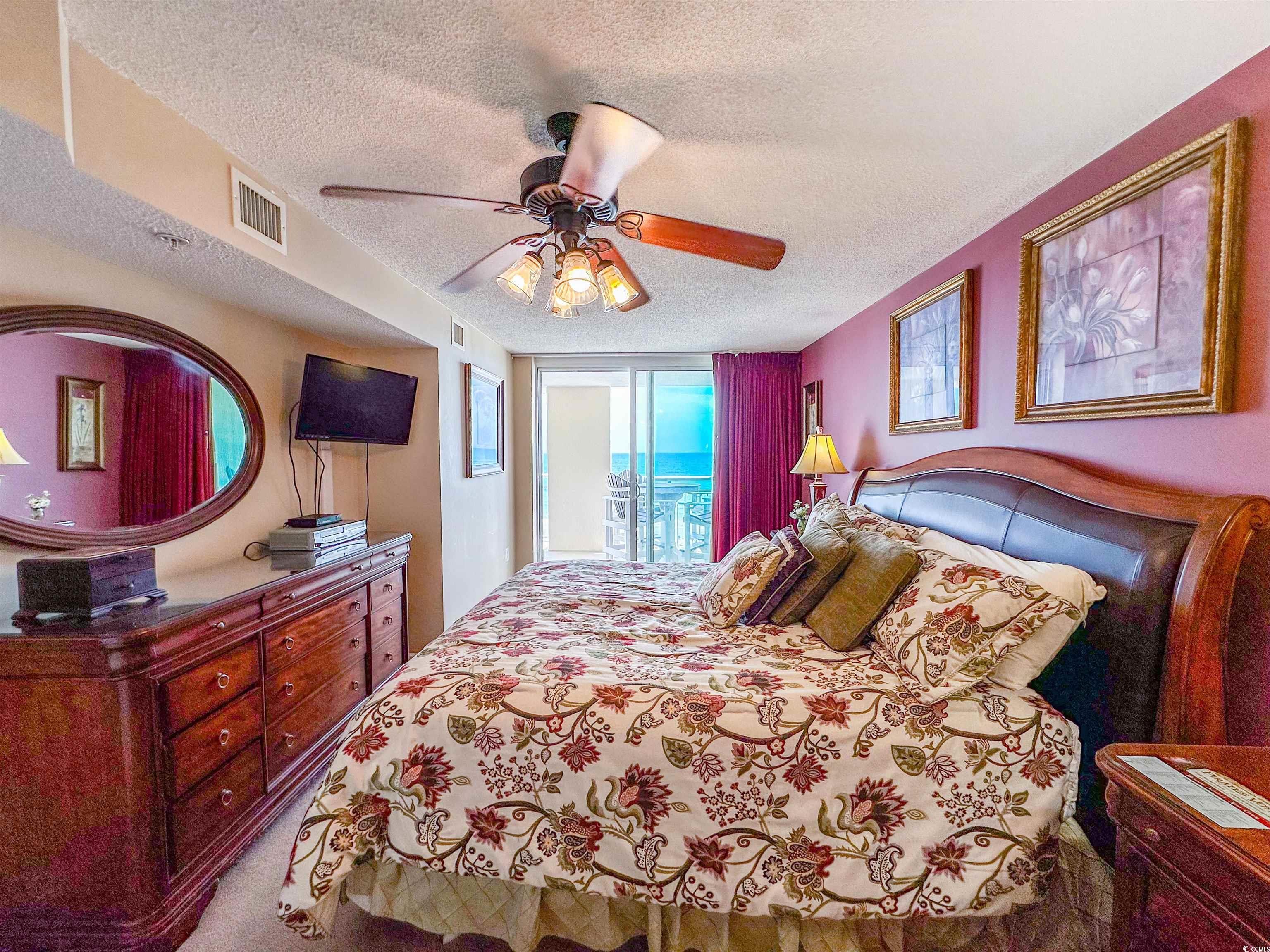 Tranquil Oceanfront Luxury at Crescent Beach. If you crave a peaceful, uncrowded beach experience, this beautiful 2-bedroom, 2-bath condo at South Shore Villas is your perfect getaway. Located on the 5th floor retreat offers stunning Atlantic views and a relaxed, quiet atmosphere. The bright, airy living room features a flat-screen TV, ceiling fan, and free Wi-Fi, opening to a huge 25-foot oceanfront balcony accessible from both the living room and master suite. The fully equipped kitchen boasts granite countertops, a breakfast bar, Keurig coffee maker, and a full-size washer/dryer for easy living. The master suite is pure relaxation with a king-size bed, flat-screen TV, ceiling fan, and a spa-like en-suite bath with double sinks, a jacuzzi tub, and a glass-enclosed shower. The second bedroom also offers a king bed, flat-screen TV, and ceiling fan, with easy access to the second full bath in the hallway. South Shore Villas is an exclusive, low-density complex — just 63 units — meaning no crowded beaches or packed pools. Enjoy convenient covered parking, a beautiful oceanfront pool, and direct beach access in the heart of North Myrtle Beach's Crescent Beach section. Start your day with coffee and a sunrise on the balcony, and end it with a sunset cocktail while the ocean breeze soothes your soul. This is beachfront living the way it was meant to be — calm, comfortable, and unforgettable.