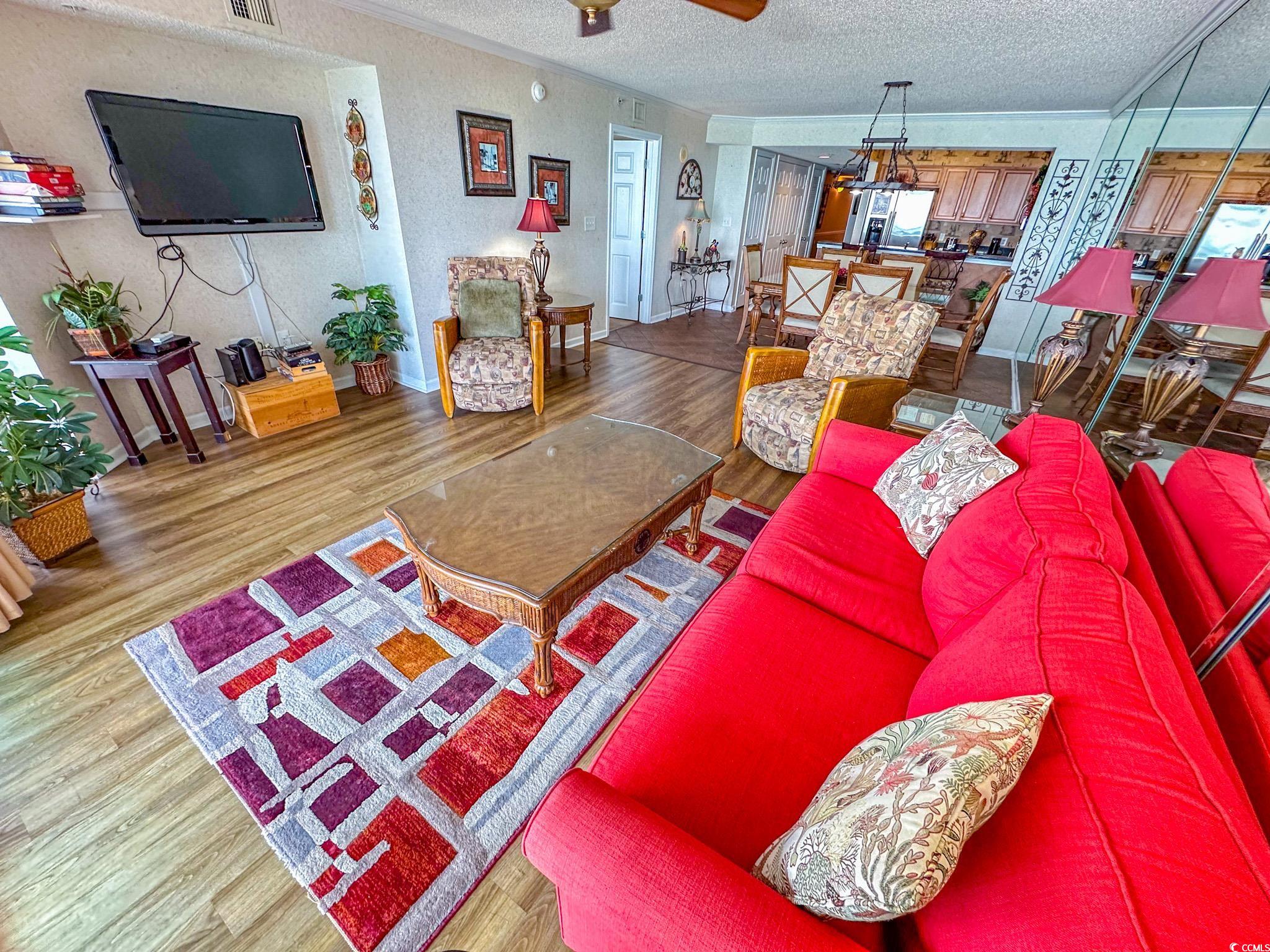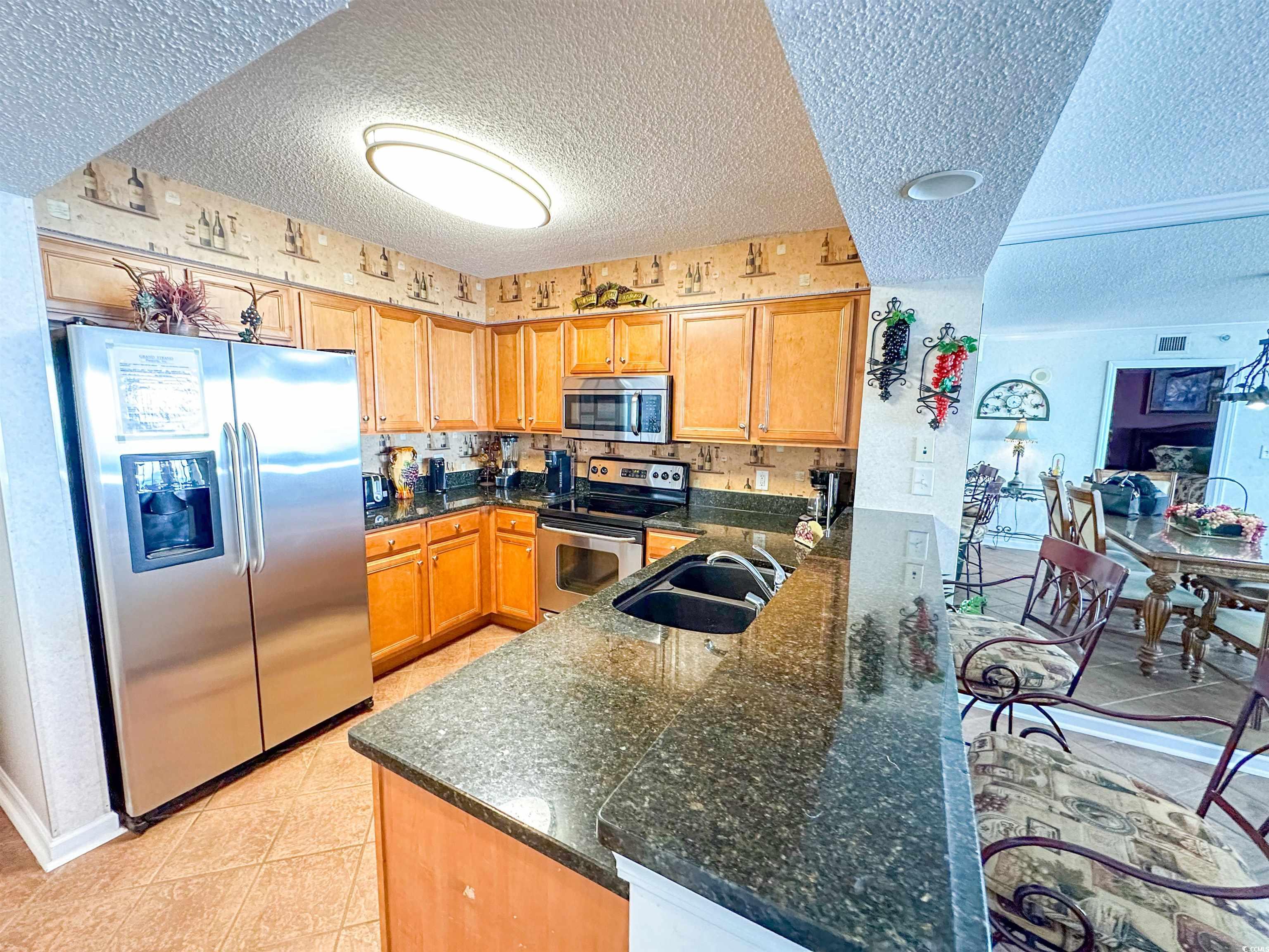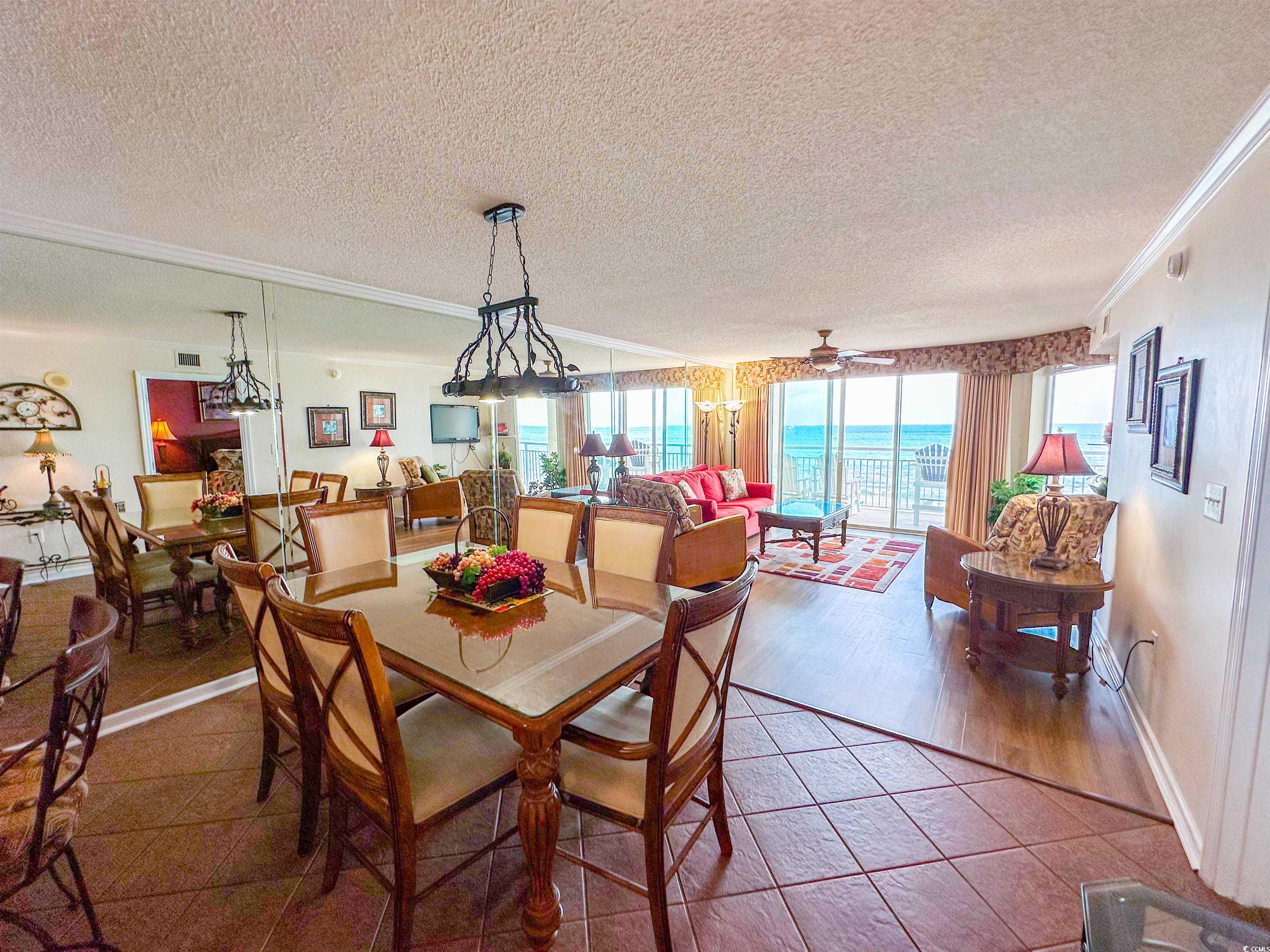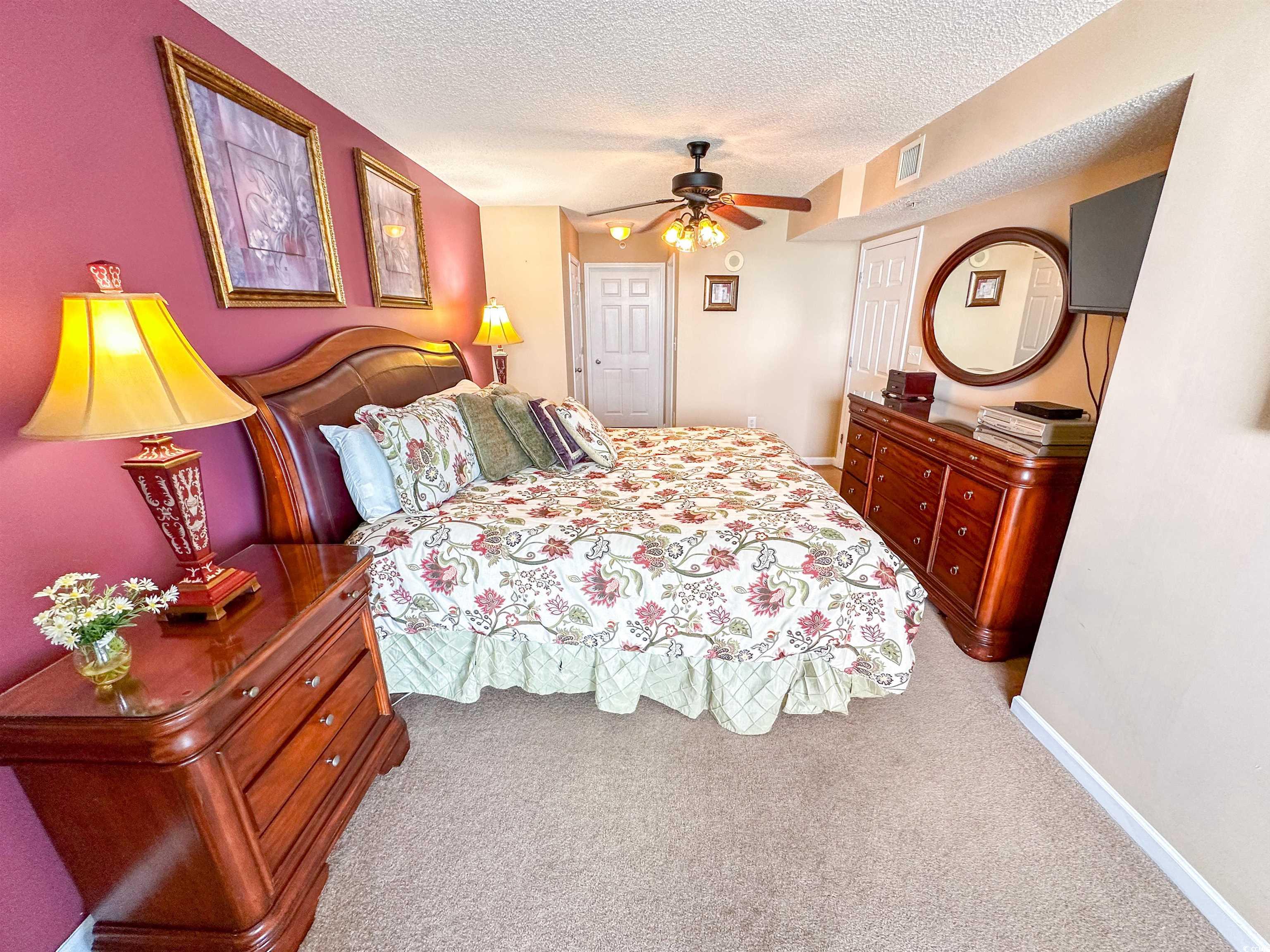 Tranquil Oceanfront Luxury at Crescent Beach. If you crave a peaceful, uncrowded beach experience, this beautiful 2-bedroom, 2-bath condo at South Shore Villas is your perfect getaway. Located on the 5th floor retreat offers stunning Atlantic views and a relaxed, quiet atmosphere. The bright, airy living room features a flat-screen TV, ceiling fan, and free Wi-Fi, opening to a huge 25-foot oceanfront balcony accessible from both the living room and master suite. The fully equipped kitchen boasts granite countertops, a breakfast bar, Keurig coffee maker, and a full-size washer/dryer for easy living. The master suite is pure relaxation with a king-size bed, flat-screen TV, ceiling fan, and a spa-like en-suite bath with double sinks, a jacuzzi tub, and a glass-enclosed shower. The second bedroom also offers a king bed, flat-screen TV, and ceiling fan, with easy access to the second full bath in the hallway. South Shore Villas is an exclusive, low-density complex — just 63 units — meaning no crowded beaches or packed pools. Enjoy convenient covered parking, a beautiful oceanfront pool, and direct beach access in the heart of North Myrtle Beach's Crescent Beach section. Start your day with coffee and a sunrise on the balcony, and end it with a sunset cocktail while the ocean breeze soothes your soul. This is beachfront living the way it was meant to be — calm, comfortable, and unforgettable.