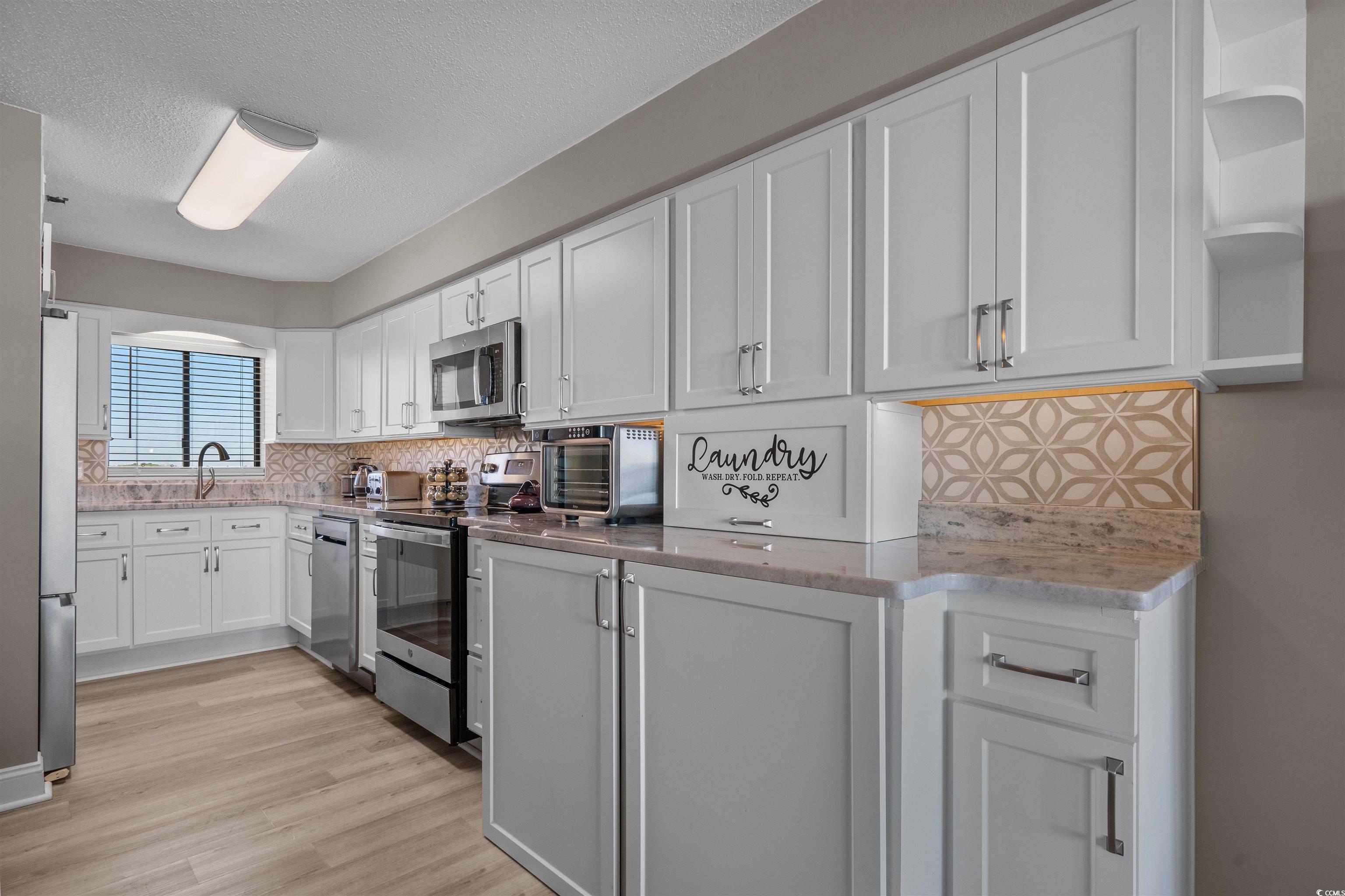 Welcome to Sea Winds #707, an oceanfront villa located in the highly desirable Windy Hill section of North Myrtle Beach! Perfect for full-time coastal living, a home away from home, or even an income-producing vacation rental opportunity. Sea Winds Resort is a favorite among both locals and repeat out of town guests. This stunning 2-bedroom, 2-bath villa has been completely remodeled and upgraded by the current homeowner, featuring beautiful new kitchen countertops, flooring, custom cabinets with pull-outs, an under-cabinet washer/dryer, stainless steel appliances, lighting, updated bathrooms, and two heavy duty Oceanfront sliding glass doors — every detail thoughtfully designed for modern comfort and style. Enjoy breathtaking ocean views from your private balcony and experience the stress-free beach lifestyle you’ve always dreamed of. The Sea Winds Resort offers wonderful year-round amenities, including an indoor pool that owners love to enjoy in every season. Just a short stroll away, you’ll find Barefoot Landing, with its world-class dining, shopping, House of Blues concerts, Alabama Theatre shows, and marina-front entertainment. This is truly a must-see property — beautifully updated, ideally located, and ready for its next owner to start living the North Myrtle Beach dream! Floor plan included with this listing was completed by third party and All measurements and data are deemed reliable but are not guaranteed, purchaser and or purchasers professional to verify.For more information about this listing please contact the Listing Broker OR your real estate professional.
