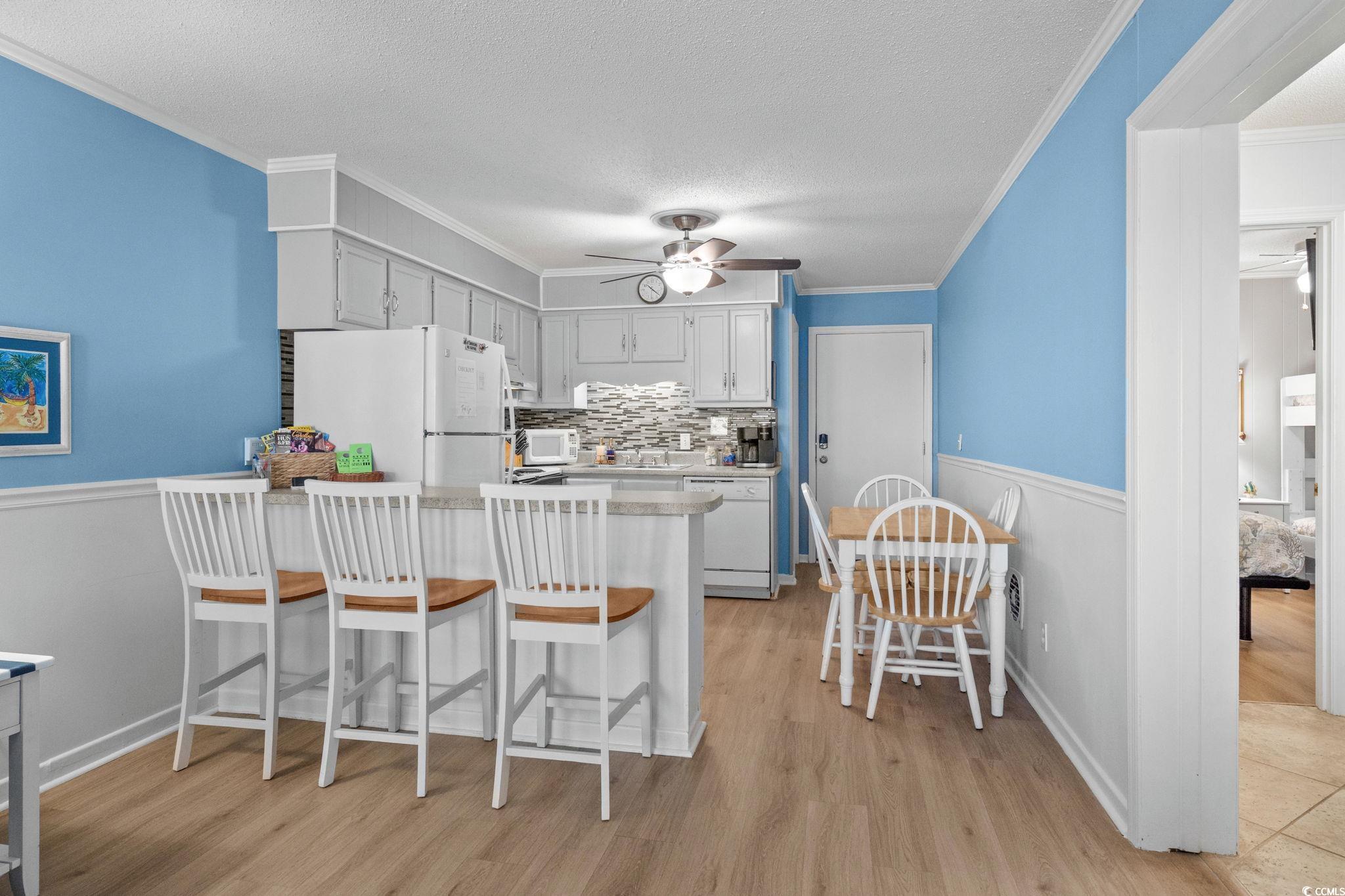 Wake up to the sound of the surf and the smell of salt air at A Place at the Beach III—where coastal living is simple, sunny, and steps from the sand. This fully furnished 2-bedroom, 2-bath condo is perched on the top floor, offering views of the ocean and a perfect perch for morning coffee or evening breezes on the covered balcony. Inside, the open layout feels bright and inviting, with luxury vinyl plank flooring throughout and thoughtful updates that make it move-in ready. The kitchen and baths feature modern finishes including a tiled tub surround, granite countertop vanity, and classic crown molding details that add a touch of polish. This condo makes the most of its space with smart storage options, including a convenient entry closet for beach gear. And when you’re not relaxing indoors, you’ll love the two outdoor pools, picnic and grilling areas, and—best of all—direct beach access just across the dunes. Tucked in the popular Shore Drive area, you’re minutes from oceanfront restaurants, golf, entertainment, and shopping, yet the vibe here stays wonderfully relaxed. Whether you’re looking for a full-time home, a weekend retreat, or an investment getaway, this one is ready when you are. Arrange a tour today!