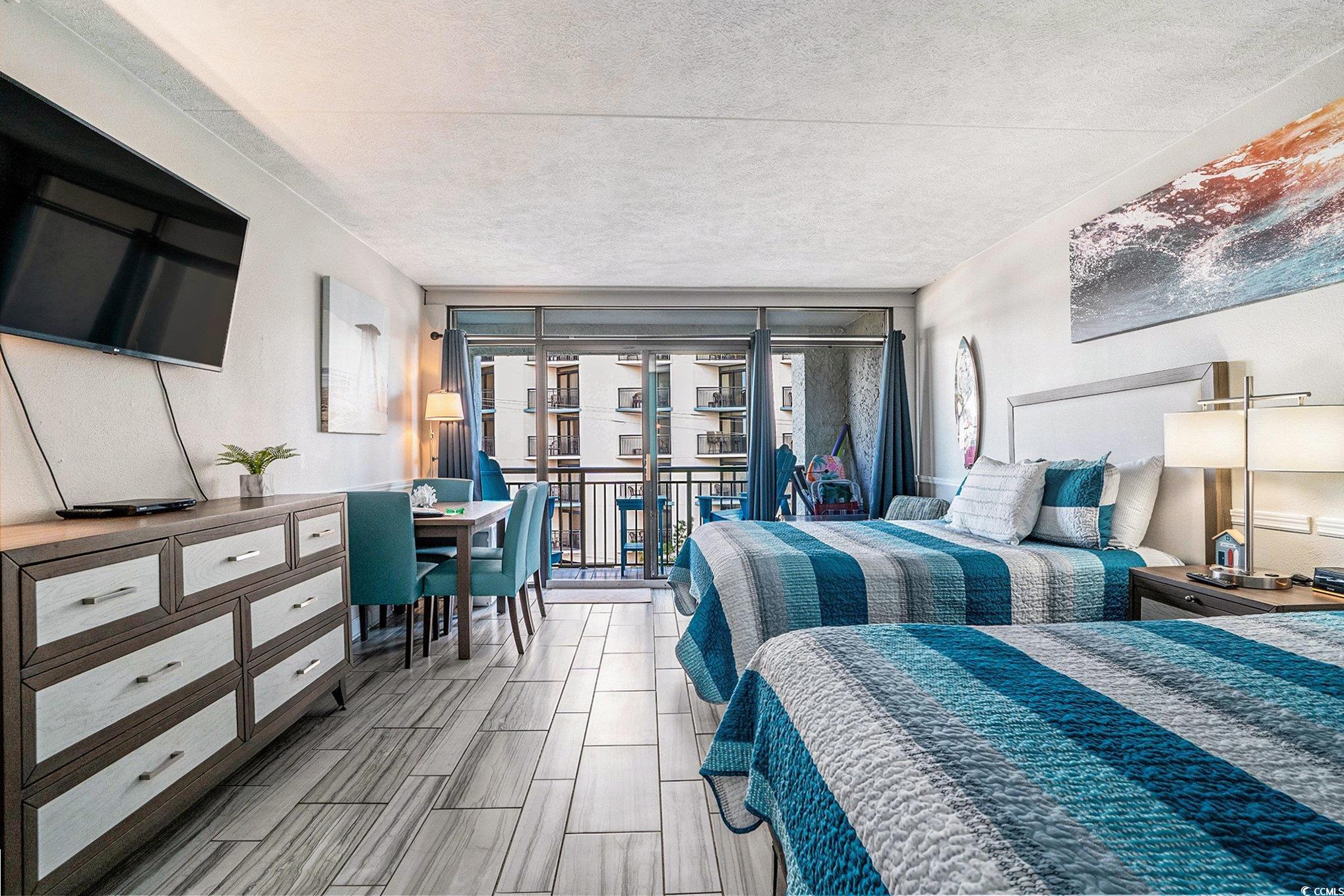 Welcome to this stunning efficiency ocean-view condo located in the renowned Grande Cayman Resort in Myrtle Beach! This condo perfectly combines comfort, style, and convenience for your ideal coastal retreat. As you enter, you'll be greeted by a kitchenette featuring granite countertops, a microwave, and a refrigerator-perfect for those quick meals or snacks. The upgraded LVP flooring throughout the unit adds a modern and appealing touch to the living space. Sleep comfortably in the two queen-sized beds, accommodating your family and friends with ease. The bathroom is elegantly designed with a granite countertop and a stylish shower tub combo with tile shower. Step outside to your private balcony and soak in the breathtaking panoramic views of the Atlantic Ocean, making it the perfect spot for morning coffee or evening relaxation. This condo is being sold fully furnished, offering a turn-key opportunity for new owners to move in and start enjoying the beach lifestyle right away. The Grande Cayman Resort enhances your vacation experience with a variety of amenities. Take a refreshing dip in the oceanfront outdoor pool, unwind in the indoor pool, or float along the lazy river. For endless entertainment, enjoy the water park, sauna, fitness center, and miniature golf, there's something for everyone! Culinary delights are just a stone's throw away, with fantastic dining options like Due South at 72nd, Turtle Bay Cafe, a Tiki Bar, and Starbucks conveniently located within the resort. This condo is not just a great vacation home; it also serves as an excellent investment property. Don't wait, schedule your showing today!