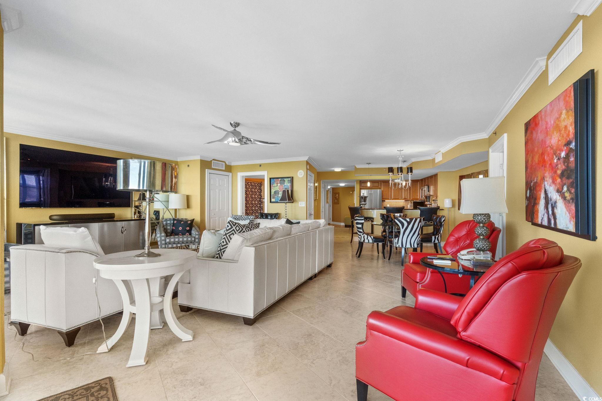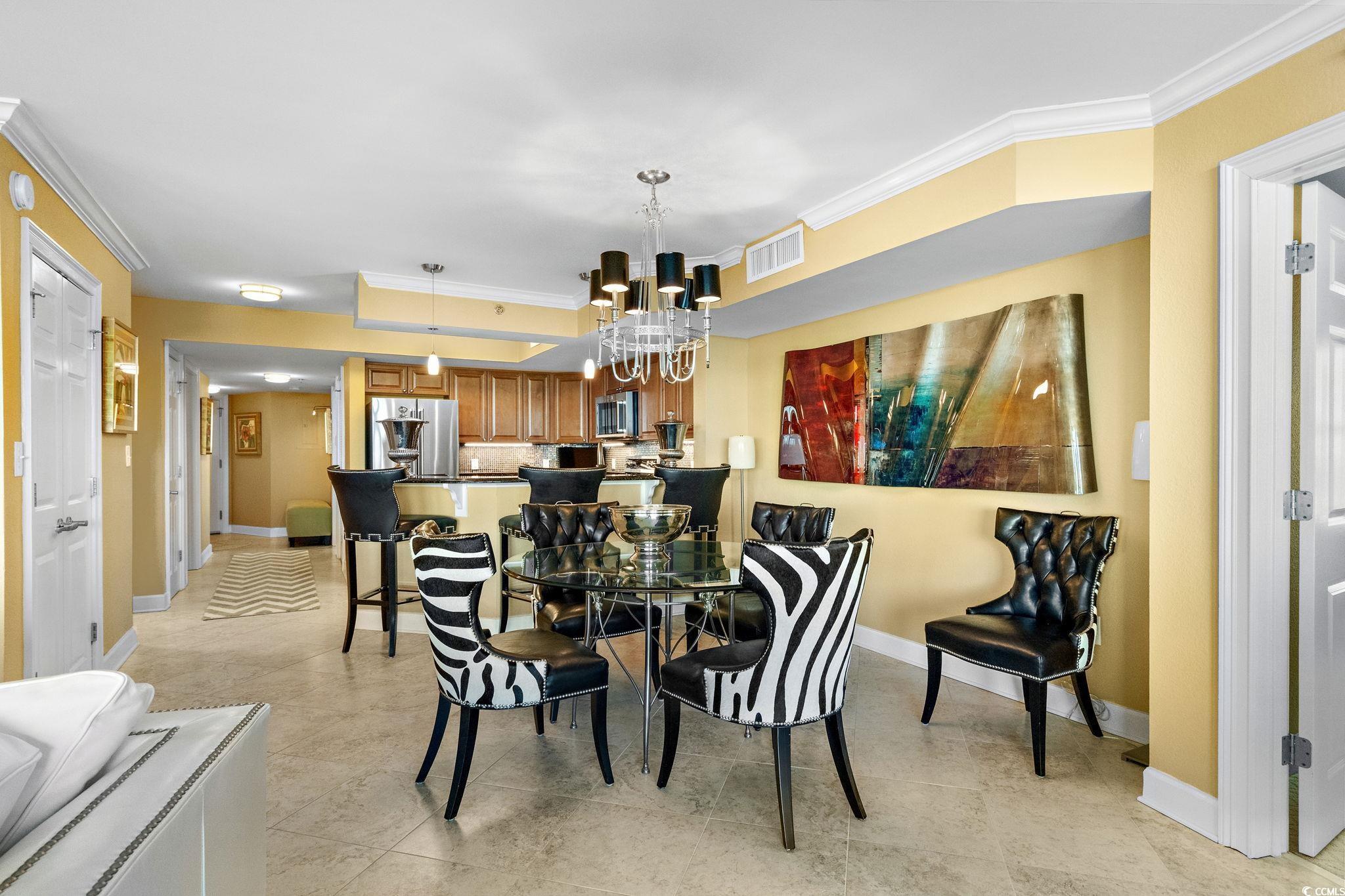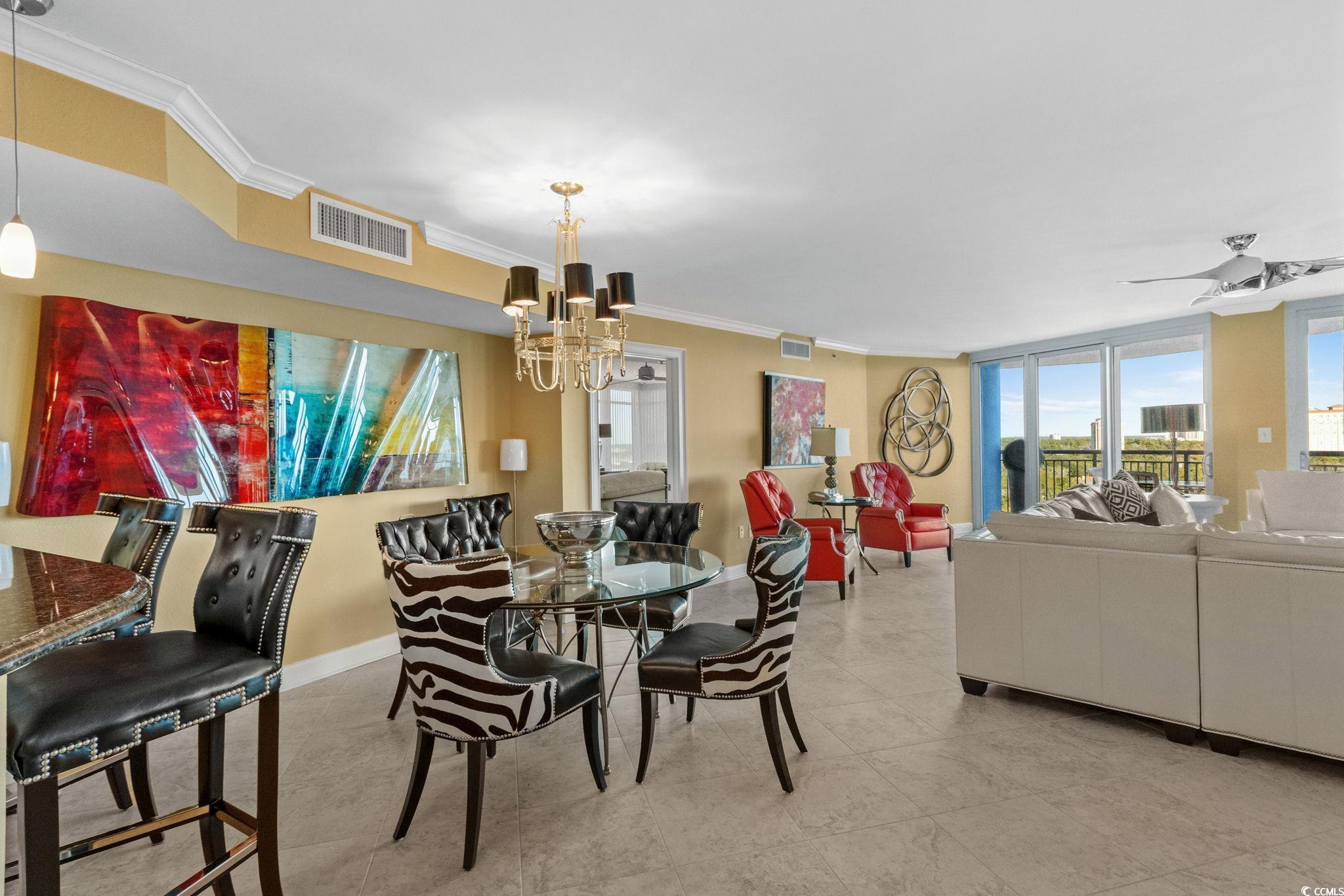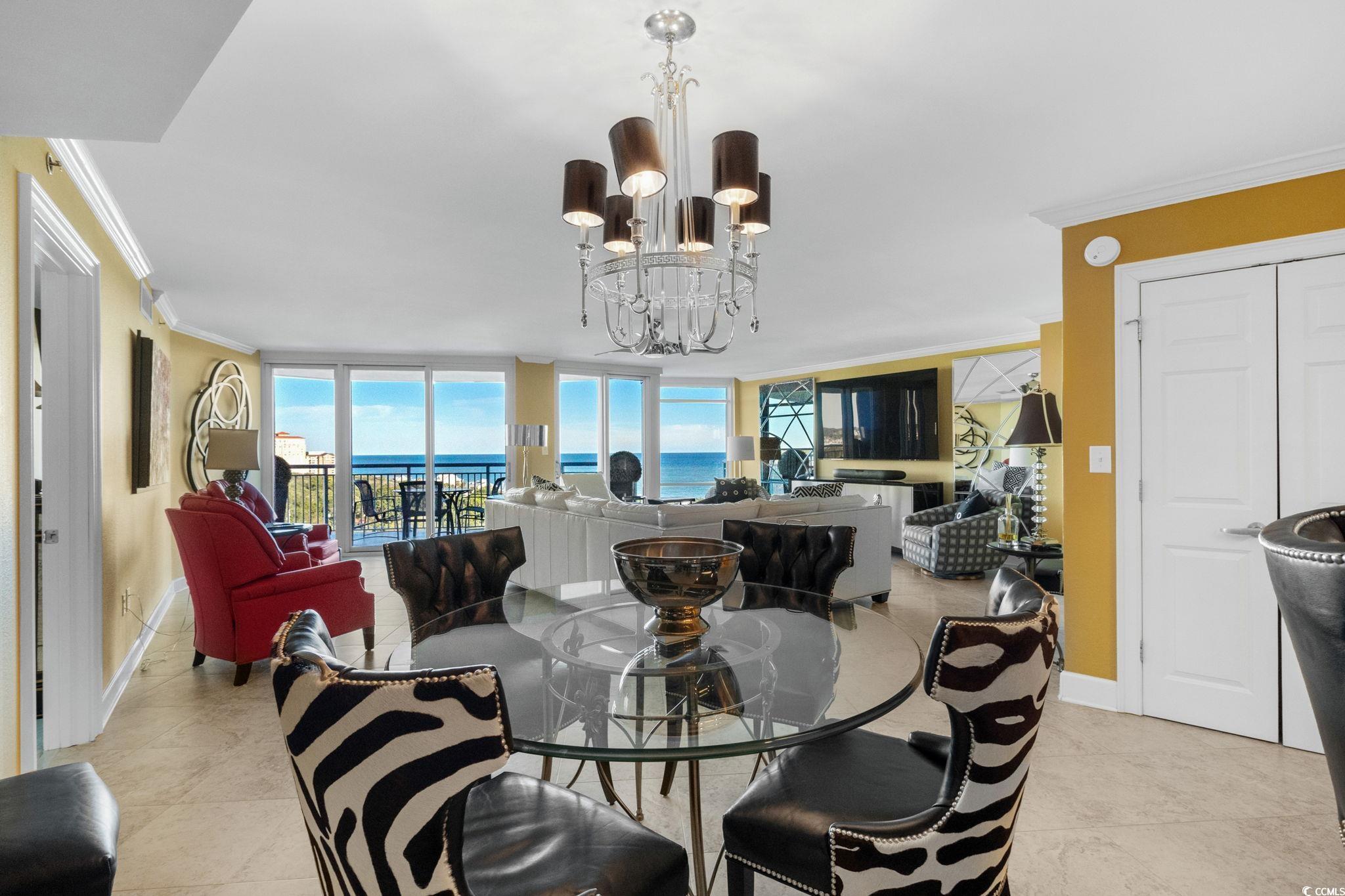 Experience spectacular ocean views from this spacious, professionally designed Corner unit, 2-bedroom, 3.5-bath condo—fully furnished with high-quality, top-name-brand pieces and offered completely all-inclusive. Relax on your private balconies where lush greenery meets the white sands of the Atlantic, creating the perfect backdrop for East and West views, morning coffee, or sunsets. The kitchen has Stainless steel appliances, granite countertops, a breakfast bar, and best of all, views overlooking the dining table, living room, and looking straight out to the blue skies and ocean. Inside, you have modern style meets comfort with luxurious upgrades throughout, offering a bright, open layout ideal for both everyday living and entertaining. There are plenty of closets for storage and an owner's closet that has electric for storage right outside the main entrance to the unit for easy access for bikes, etc. The Horizon Building offers ample gated garage parking, key-card–secured elevators, and overnight security. Resort-style amenities include indoor and outdoor pools, a lazy river, a hot tub, a fitness center, and a rooftop terrace. The HOA covers nearly everything: electricity inside your unit, water and sewer, cable, internet, trash pickup, exterior structure insurance—everything except your property taxes. This condo has only been used by the sellers as a second home and has never been rented. The unit oferrs a 3 bedroom configuration.