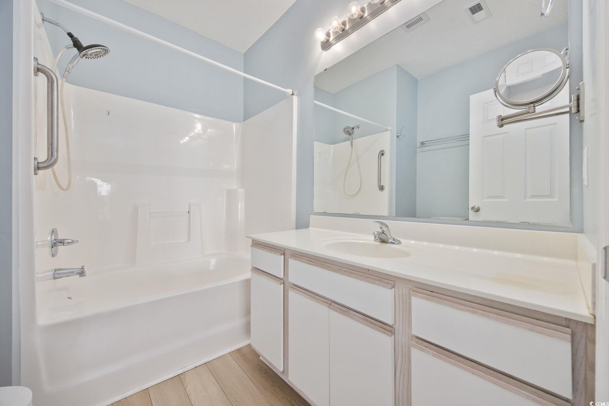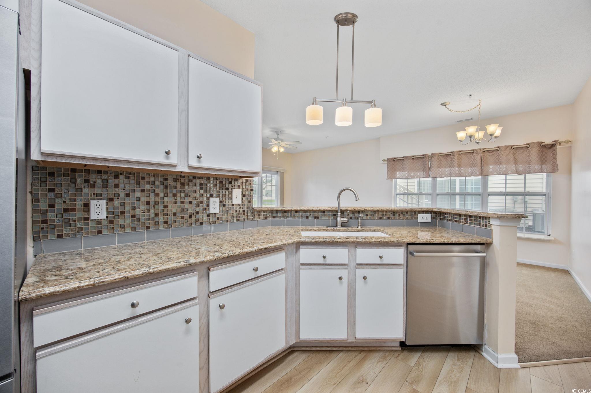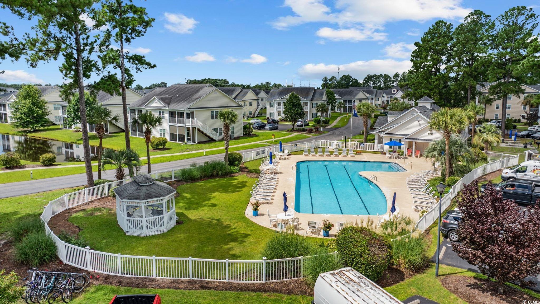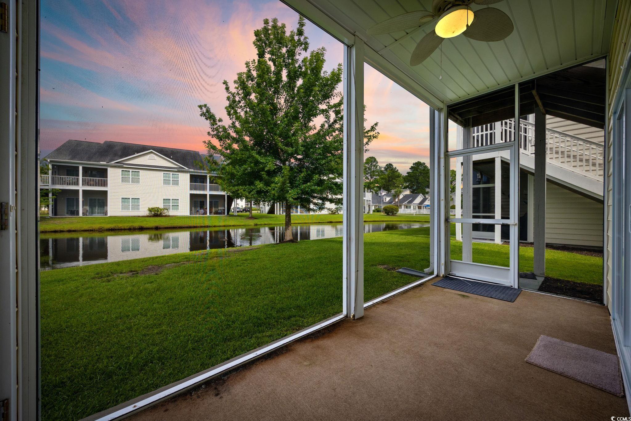 First-floor and end-unit living at its best! This bright, spacious, and meticulously cared-for 3BR/2BA condo in Windsor Green at Carolina Forest is looking for new owners. Offering an open layout with a smart split-bedroom design and a serene screened porch overlooking a peaceful pond, this home checks so many boxes. Attractive LVP flooring in the foyer leads to two well-sized guest bedrooms, each with ceiling fans. One features its own walk-in closet and LVP floors. The nearby full bath offers LVP flooring, a comfort-height toilet, and a tub/shower combination. The kitchen is filled with natural light and includes stainless steel appliances, granite countertops, pendant lighting, abundant cabinetry, and a breakfast bar. A separate laundry room sits just off the kitchen and comes complete with a full-size washer and dryer, plus a roomy storage rack. The living and dining areas sit between the guest rooms and the primary suite, and this end-unit’s extra windows, along with the double sliding doors, flood the space with sunlight. Both the living room and primary bedroom enjoy pond views and direct access to the screened porch. The primary suite also features a spacious walk-in closet and an ensuite bath with linen storage and a tub/shower combo. An additional outdoor storage closet is located on the front porch. Windsor Green offers an outdoor pool, playground, recreation center, and beautifully maintained grounds. This community is ideally situated near Tanger Outlets, local and national dining options, golf courses, and walking/biking paths along the boulevard. Just a short drive to the beach and MYR airport. Whether you’re seeking a coastal getaway, a primary home, or an investment opportunity, this condo is a standout. Book your private showing today! **Some photos virtually staged or digitally altered.**