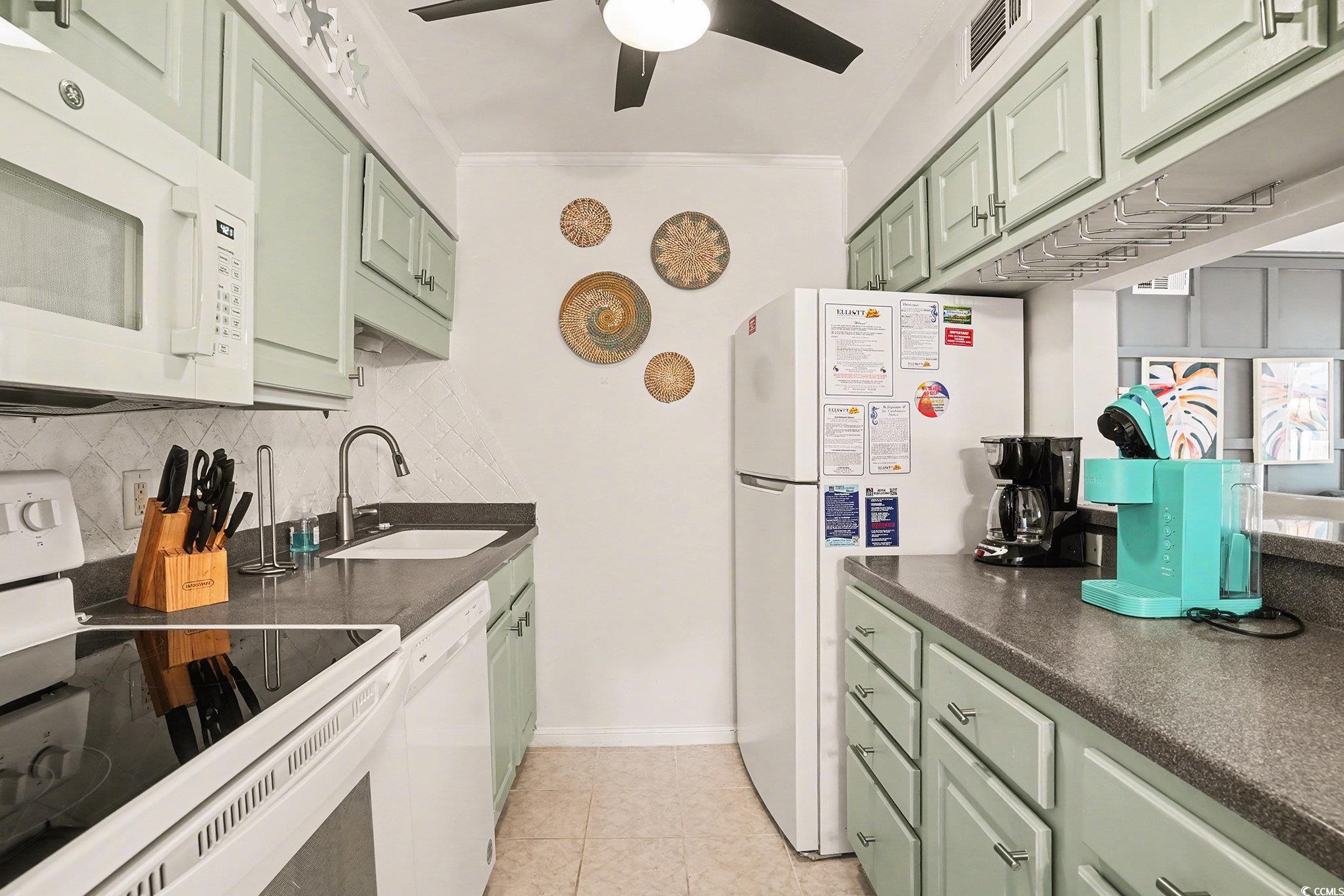 RARE updated FIRST FLOOR END UNIT filled with natural light and offers the ease of no stairs, along with a designated parking space conveniently located just outside the entrance along with the community pool. This second row 2 Bedroom 2 Bath condo is TURN KEY offered furnished including all Kitchen appliances and interior laundry room with stackable washer/dryer and extra storage. Recent updates and condo features include master bedroom furniture and décor, Living Room Sofa, bathroom renovations, newer appliances, keyless entry, and a 2023 HVAC air filtration system, and carbon-based water filters for Kitchen sink and refrigerator. Charming screened in porch to relax after a day at the beach or enjoy your morning coffee! Owners are permitted pets and golf carts following HOA guidelines. Waipani condo community is located second row from the 6th Avenue S. beach access in the Ocean Drive section of North Myrtle Beach with close proximity to Main Street for dining, shopping, and more! Whether seeking a vacation retreat as a second home or investment property or primary beach living, this is an opportunity you won’t want to miss. Schedule your showing today!