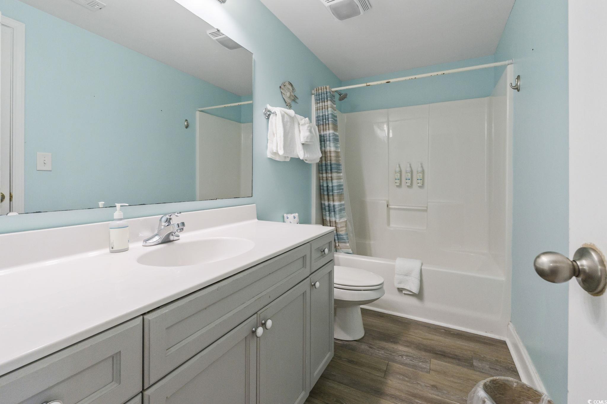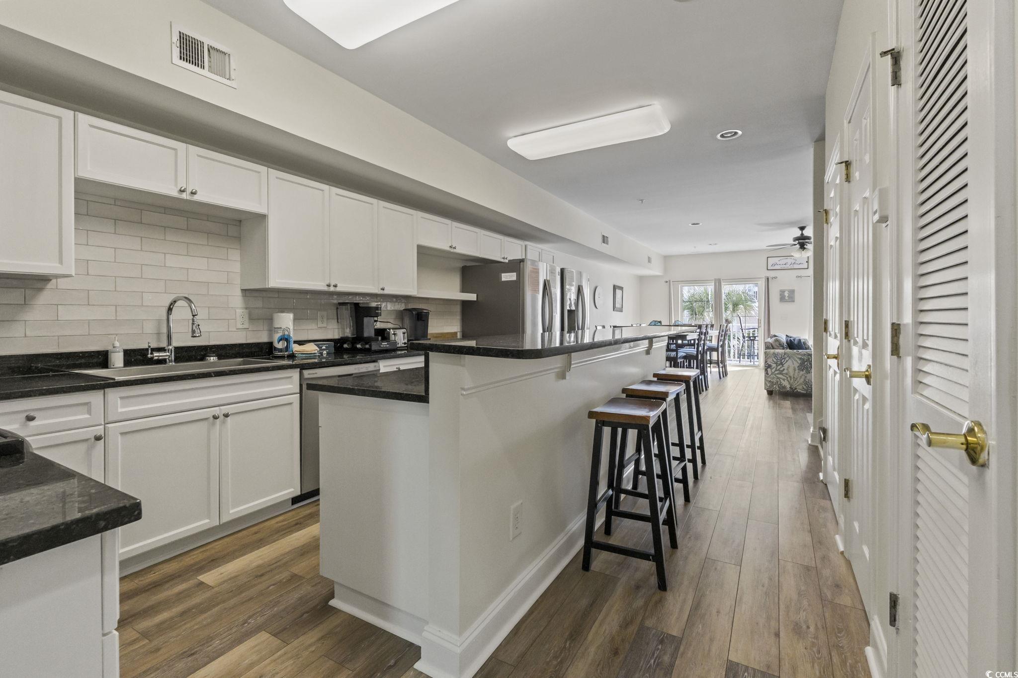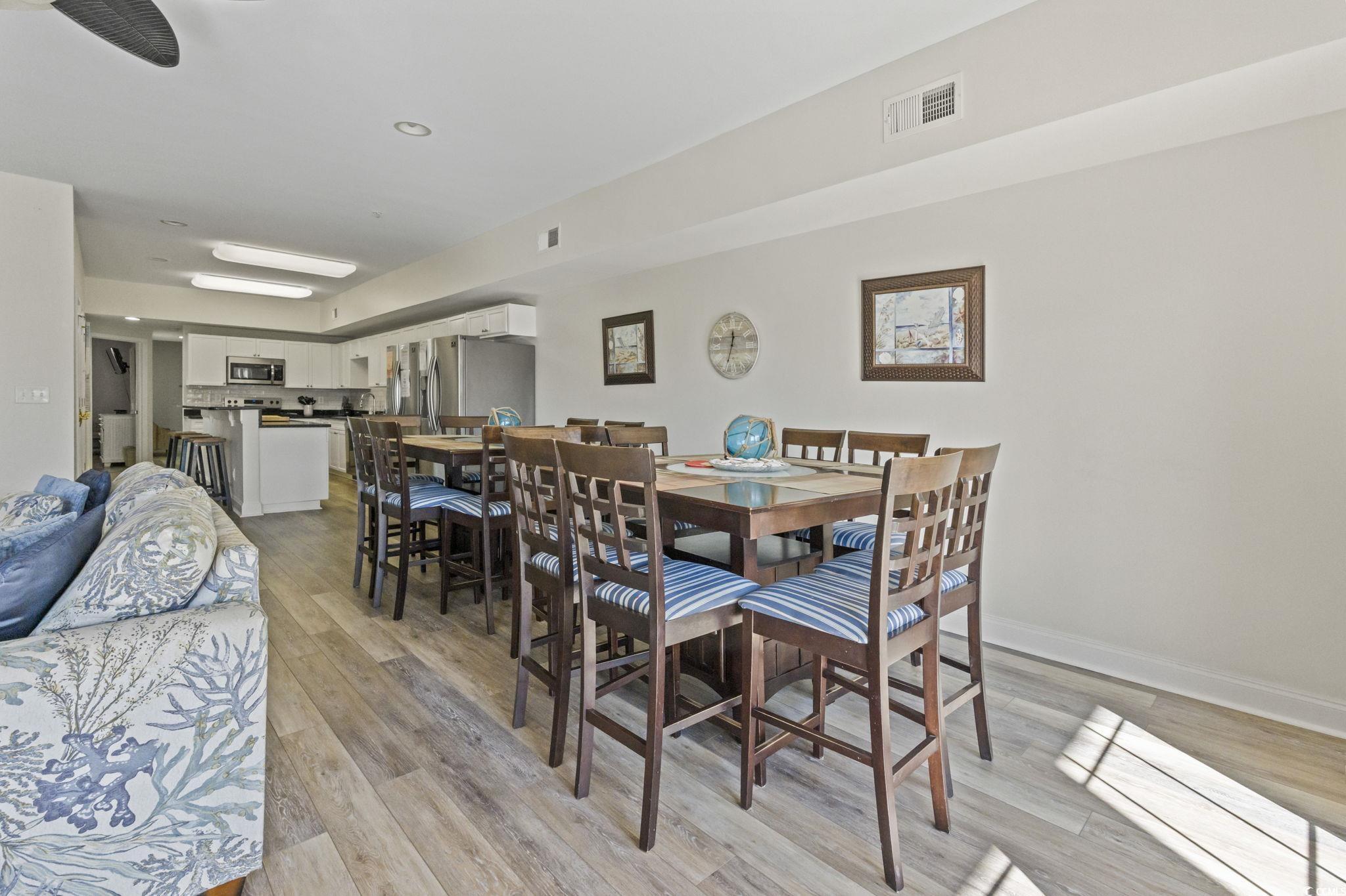 Just steps from the beach, this enormous 5 bedroom 5 bathroom two-level condo is now for sale! Designed for comfort and entertaining, this condo features an oversized kitchen with granite countertops, a beautiful tile backsplash, stainless steel appliances and two refrigerators, making it ideal for hosting family and friends or accommodating rental guests. The main level offers a large bedroom, 2 full bathrooms and of course the kitchen and main living areas. Just off the dining and living room is access to one of two huge balconies. Upstairs, enjoy a game room/second living room and the other 4 bedrooms and 3 full baths. This is where you will find the second large balcony, perfect for relaxing after a day at the beach. Residents and guests enjoy access to a private outdoor pool and grilling/picnic area, with easy beach access directly across the street. Short-term rentals are allowed, offering excellent flexibility as a primary residence, vacation home, or investment property. This condo doesn't feel like your typical shotgun style condo, it actually doesn't feel like a condo at all. When you walk into Coconut Grove 203, you feel like you're in a beach house. The best part is, you get that beach house feel for half the price and none of the exterior maintenance. Recent updates include new flooring downstairs and on stairwell, new HVAC units installed in 2023 and 2025, new kitchen backsplash and tile in the entry way. The owners have meticulously maintained this property for not only themselves, but for rental guest comfort. This property is located just a few short blocks from all the fun and top-rated dining, shopping, entertainment, and everything Main Street and North Myrtle Beach as a whole has to offer.. without the noise that comes with it. This is the ideal unit to host your large family or group of friends where everyone is comfortable. The memories here would be unforgettable. Grab this property before the rental season starts.. you can earn that summer money and enjoy the benefits of the beach life. Contact your agent today before it's too late! All information is deemed reliable and not guaranteed, buyer to verify any and all pertinent information.