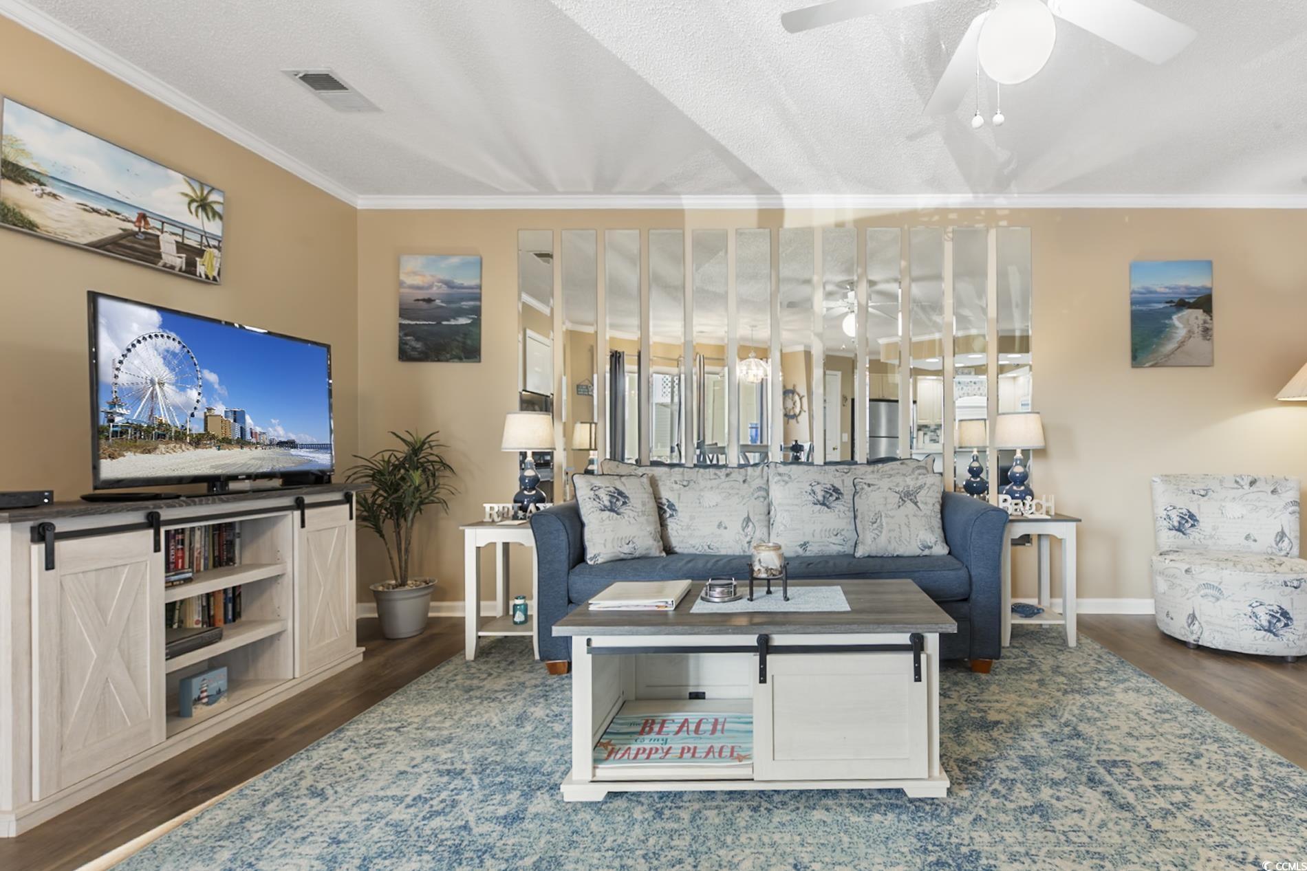 Welcome to effortless coastal living in the desirable Shorehaven community! This immaculate first-floor residence combines beachy charm with modern convenience in a bright, open layout that feels like home from the moment you arrive. The sun-drenched floor plan is perfect for both relaxing and entertaining, featuring a well-appointed kitchen with generous pantry storage, two spacious bedrooms with private deck access, and two full bathrooms adorned with new stylish LVP flooring. Throughout the home, you'll find elegant crown molding, ceiling fans in every room, and no carpet anywhere. The real magic happens outside, where two expansive covered decks create an unparalleled indoor-outdoor living experience. The welcoming front porch includes convenient storage for all your beach essentials, while the stunning rear deck overlooks the water offering serene lake views where you can watch local wildlife throughout the day. Both bedrooms open directly onto this peaceful retreat, making it effortless to enjoy your morning coffee or evening sunset in your own private sanctuary. The Shorehaven community enhances your lifestyle with exceptional amenities including a sparkling pool and outdoor grilling area perfect for gatherings. Located just minutes from the beach, popular restaurants, shopping, and healthcare facilities, this home offers the perfect balance of tranquil coastal living and convenient access to everything you need. This is more than a home, it's a lifestyle. Schedule your private tour today and start living the coastal dream!