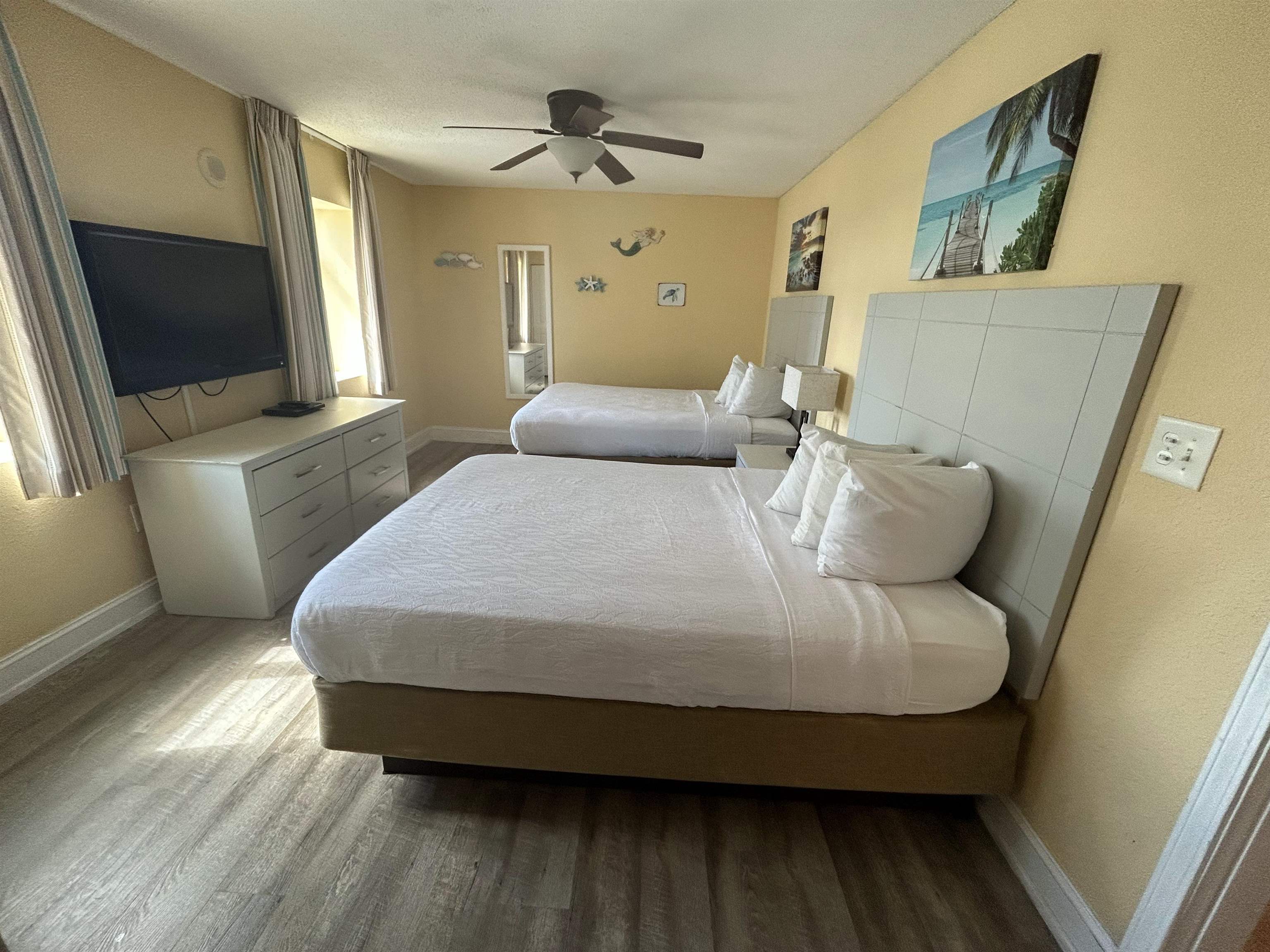 Take this chance to seize your piece of oceanfront paradise. Relax on the double-wide oceanfront balcony as you listen to the waves crash calmly on the nearby sand. Awake to breathtaking sunrises from your master bedroom suite with oceanfront views! This 4 bedroom condo provides all of the comforts of home plus the added benefits of beachfront living. The property comes fully furnished and ready for immediate occupancy or rental. With four bedrooms, 3 bathrooms and a sofabed, you can accommodate up to 16 people. The 4th bedroom with ensuite bath is a lockout so it can be completely separated from the rest of the unit. A total of 7 beds provide comfort for extending family or groups. Outside of the unit, the Grand Atlantic offers multiple indoor and outdoor water amenities, a fitness center, seasonal restaurant, game room and gift shop. Building is well-maintained and has competed many recent upgrades including painting, balcony resurfacing and this past year a full pool area remodel.