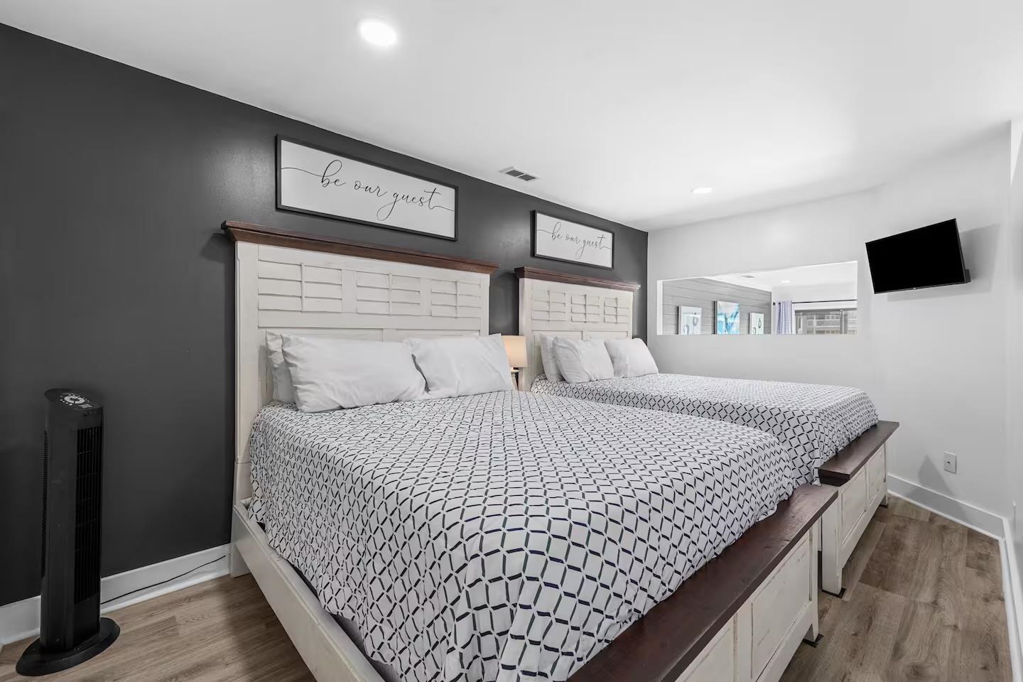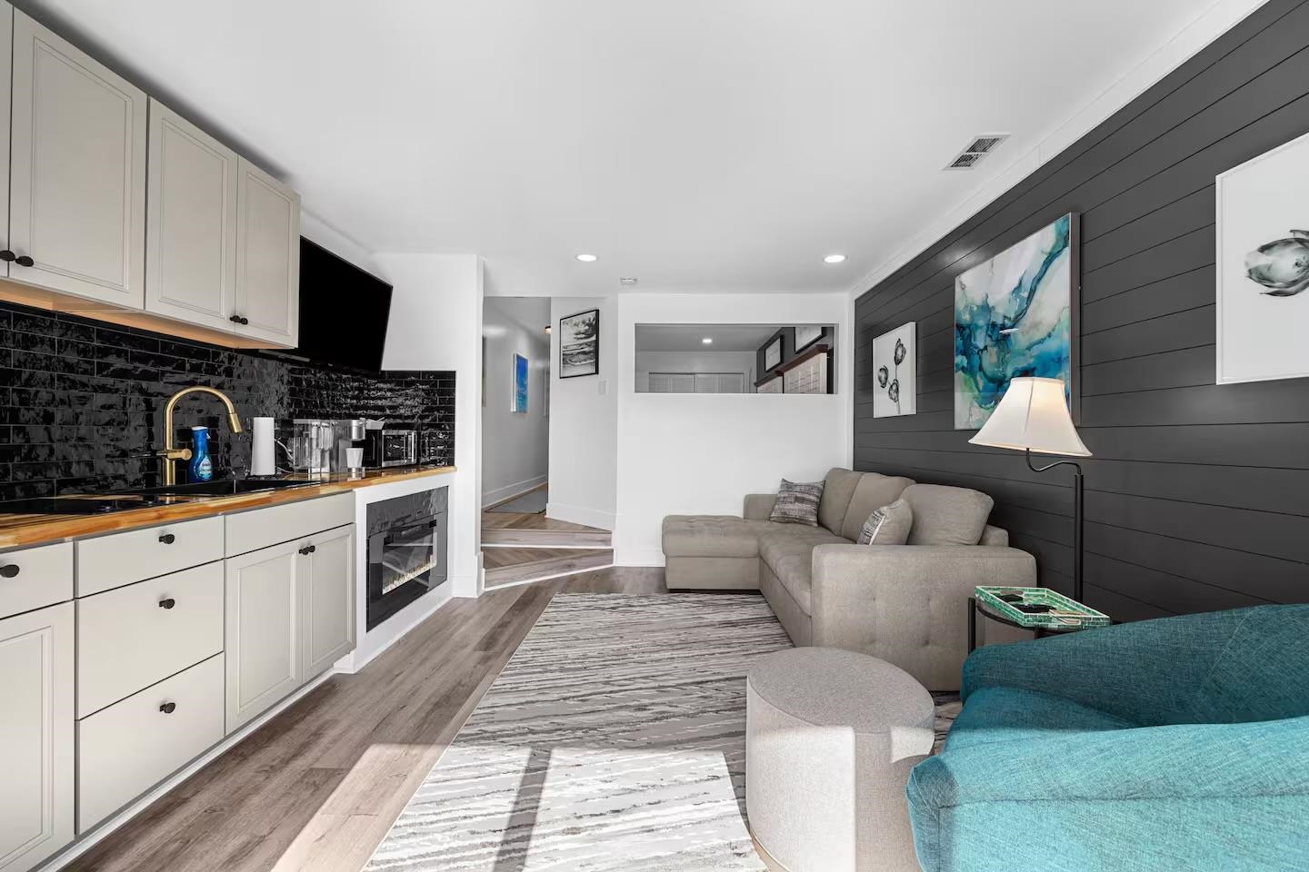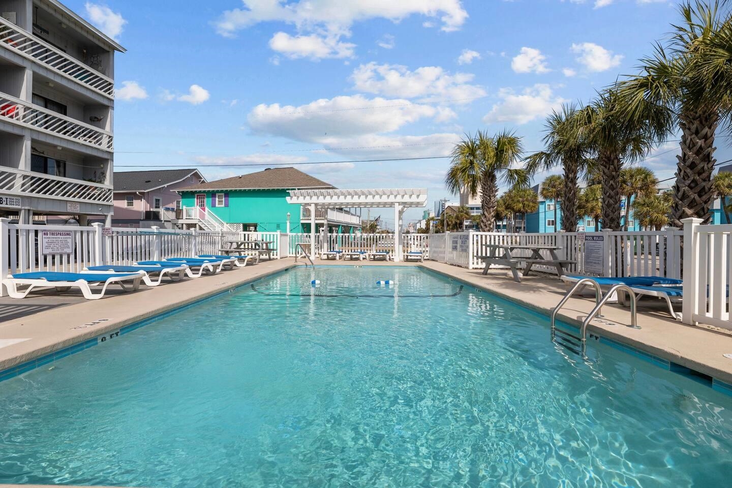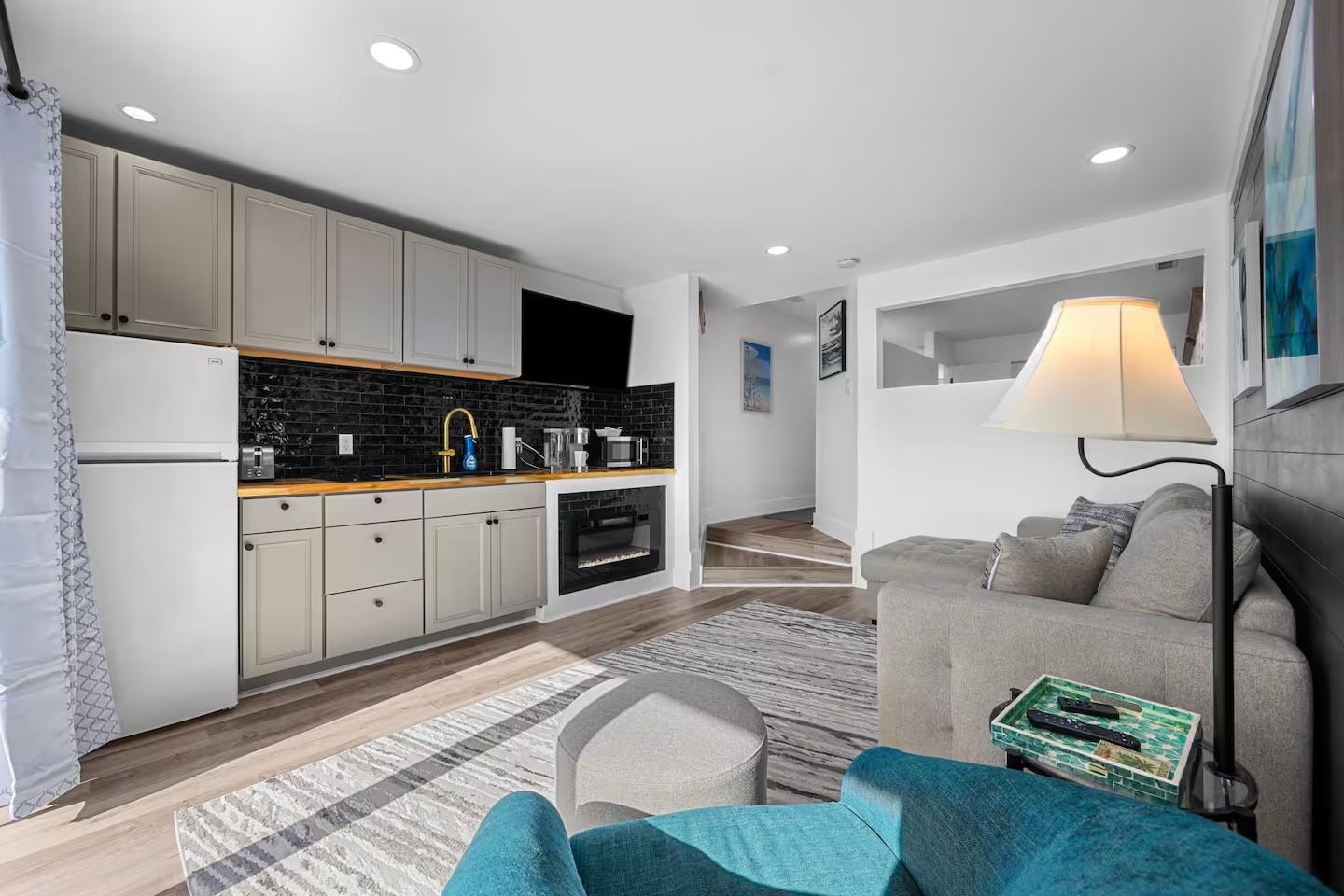 Turnkey and fully renovated 1 bedroom, 1 bath condo located in Whispering Sands in North Myrtle Beach! This beautifully updated unit features luxury vinyl plank flooring throughout and comes fully furnished for immediate enjoyment or rental use. The renovated bathroom showcases a modern tiled shower with elegant gold fixtures. The kitchenette is thoughtfully designed with a full-size refrigerator, dual-burner stovetop, butcher block countertops, and a striking black ceramic tile backsplash. The living area offers a cozy fireplace and opens to a private balcony, perfect for enjoying the coastal breeze. The bedroom is equipped with two queen size beds, maximizing comfort and flexibility. Whispering Sands community amenities include a private pool and convenient golf cart parking. Just one block from the ocean and close to dining, shopping, and local attractions, this condo is an ideal beach getaway, second home, or investment opportunity in the heart of North Myrtle Beach.
