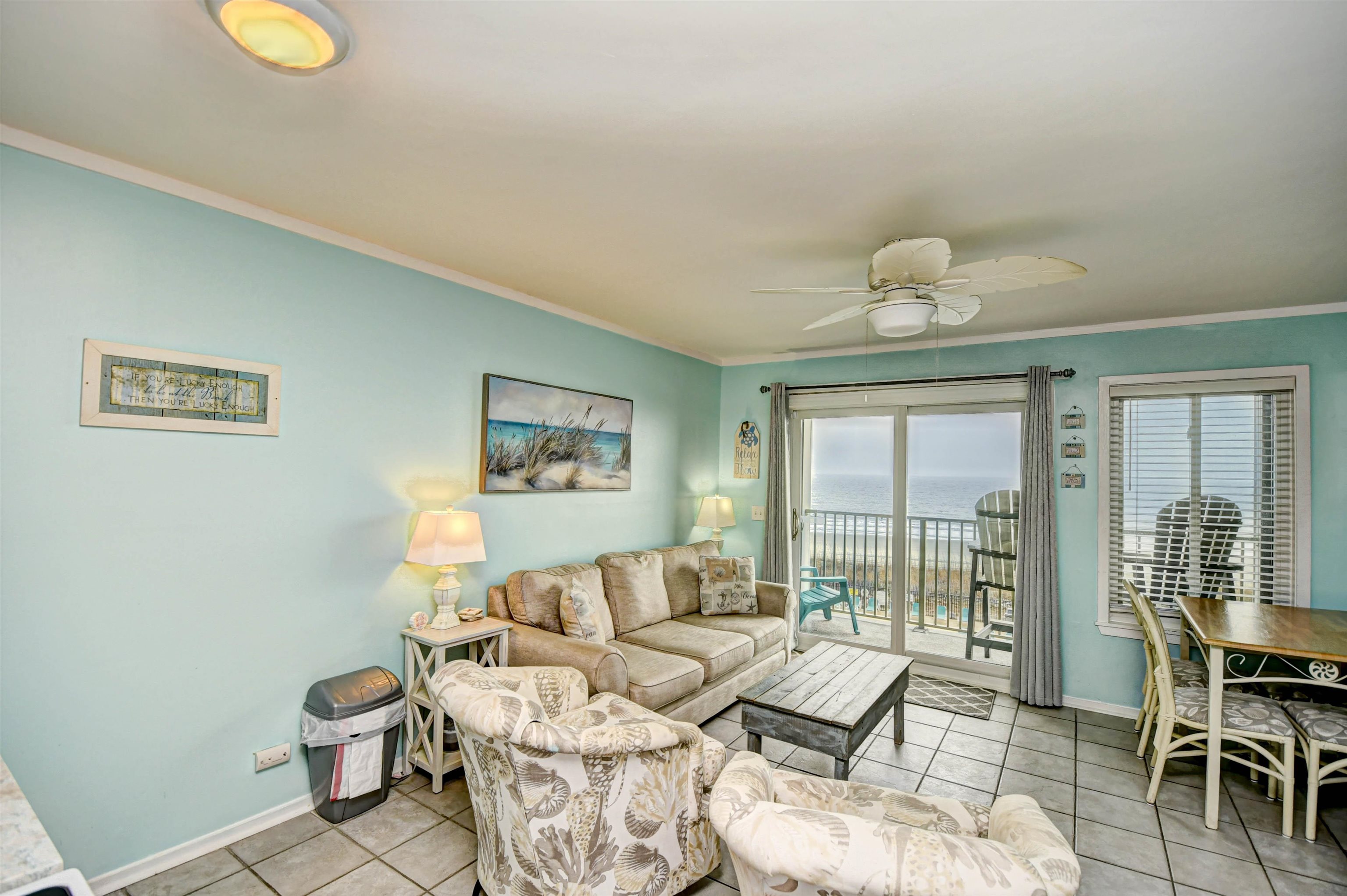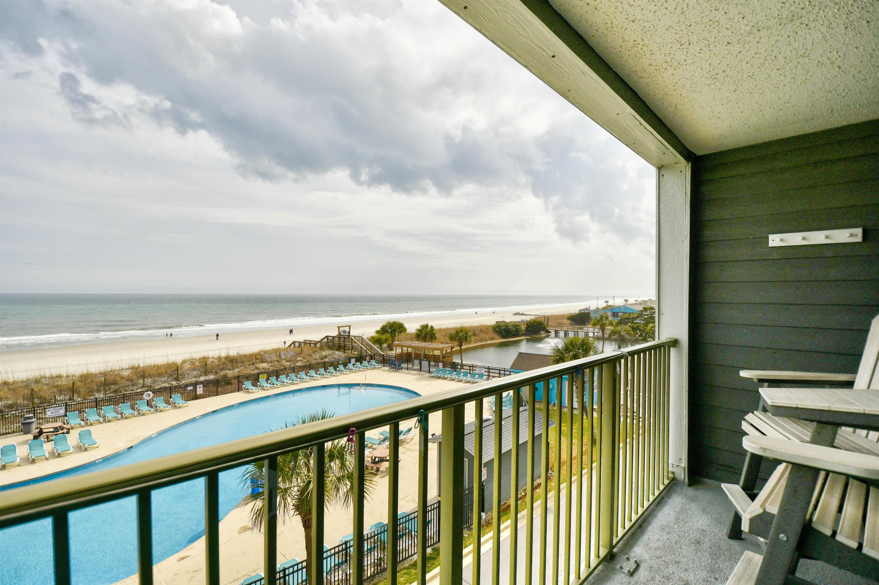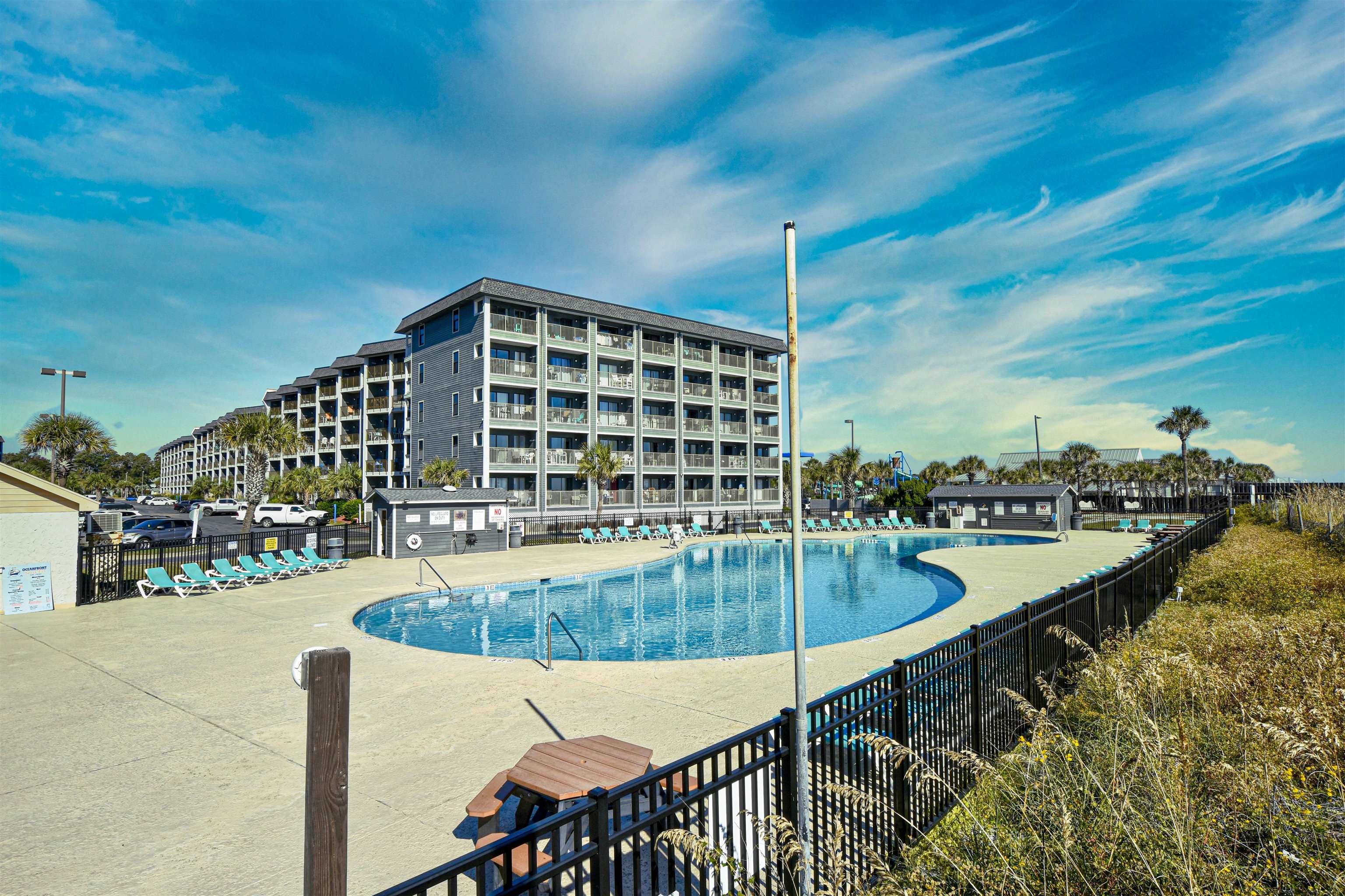 This is the one you’ve been waiting for! Don’t miss your chance to own a true oceanfront property in a sought-after gated, 33-acre community Myrtle Beach Resort just on the edges of Surfside Beach! Enjoy an incredible lineup of resort-style amenities, including indoor and outdoor pools, splash and spray areas, a lazy river, fitness center, tiki bar with live music, drinks and snacks, bocce ball, pickleball, tennis and basketball courts, playground, hot tub, sauna, putting green, and 24-hour security—plus so much more. Take in gorgeous pool views from your updated kitchen featuring quartz countertops and a beach-inspired glass backsplash. The condo comfortably sleeps six, with the built-in bunks always being a hit with the kidos! It’s a true one-bedroom layout—no walking directly into the bedroom or living room upon entry. Relax on your private balcony with a morning coffee or evening glass of wine while listening to the waves—they’re that close. Additional highlights include: HVAC system approximately 6 years; LVP flooring in bedroom; kitchen appliances 2025; Popcorn ceiling removed; bedroom furniture and mattress 2025; bunk mattresses 2025; 2025 Bathroom Vanity and light fixture; Ecobee smart thermostat with sensors on door (if door is open too long it will turn off the unit); UV germicidal lights (specifically UVC lights) added to the HVAC also 2025 Please note: no pets allowed on resort. This unit would be a great Beach or second home, or investment opportunity. It is ready for you to arrive and start enjoying the beach life right away!