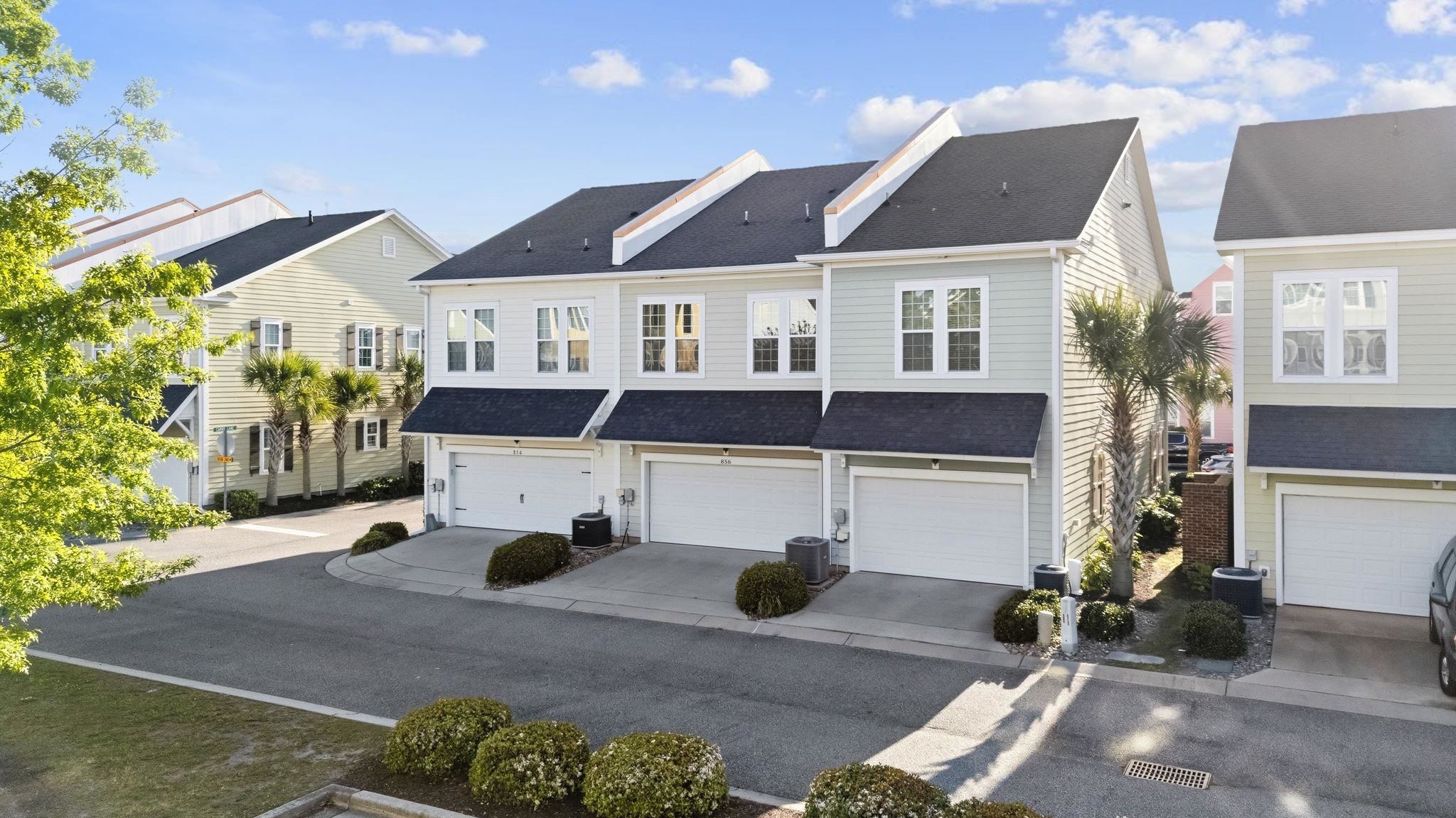Welcome to 856 Shine Ave, a move-in ready 3-bedroom, 2.5-bath true townhome is located in The Market Common community! Featuring a 2-car garage, this home offers both convenience and style. The interior showcases granite countertops, a tile backsplash, stainless steel appliances, including a new gas range, shiplap accents, upgraded light fixtures, and hardwood flooring throughout the main level and stairs. Relax on the inviting front porch, with low-maintenance Trex decking, perfect for enjoying the coastal breeze just a mile from the Atlantic Ocean. Upstairs, the spacious owner’s suite features a double vanity, soaking tub, separate shower, two walk-in closets, and a ceiling fan. Two additional generously sized bedrooms share a full bath with a tub/shower combo. The laundry room is conveniently located upstairs and has been enhanced with additional cabinetry for extra storage. A new HVAC system installed in 2024 adds comfort and peace of mind. Downstairs, you’ll find a convenient half bath along with a butler’s pantry, complete with extra cabinetry and countertop space, ideal for entertaining and everyday functionality. Living in The Market Common means enjoying unmatched amenities and lifestyle. The HOA includes access to the Market Common amenity center located behind Barnes & Noble, featuring a resort-style pool, lap pool, lazy river, hot tubs, kiddie pool, fitness center, and more. Enjoy easy access to the beach, dining, shopping, and entertainment—all just a golf cart ride, bike ride, or short walk away. From scenic trails and parks to bowling, a movie theater, dog park, and more, this community truly has it all. Schedule your showing today!