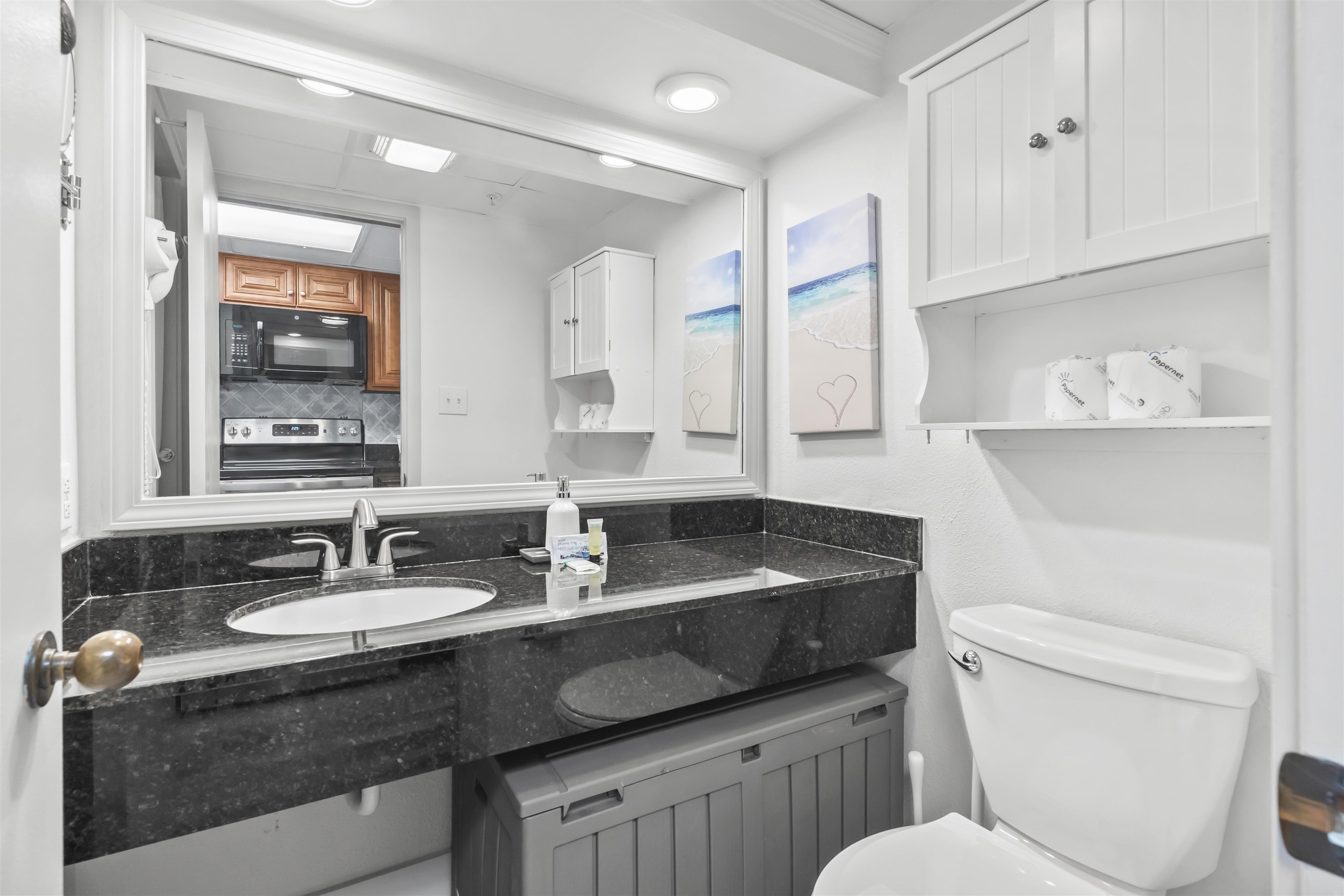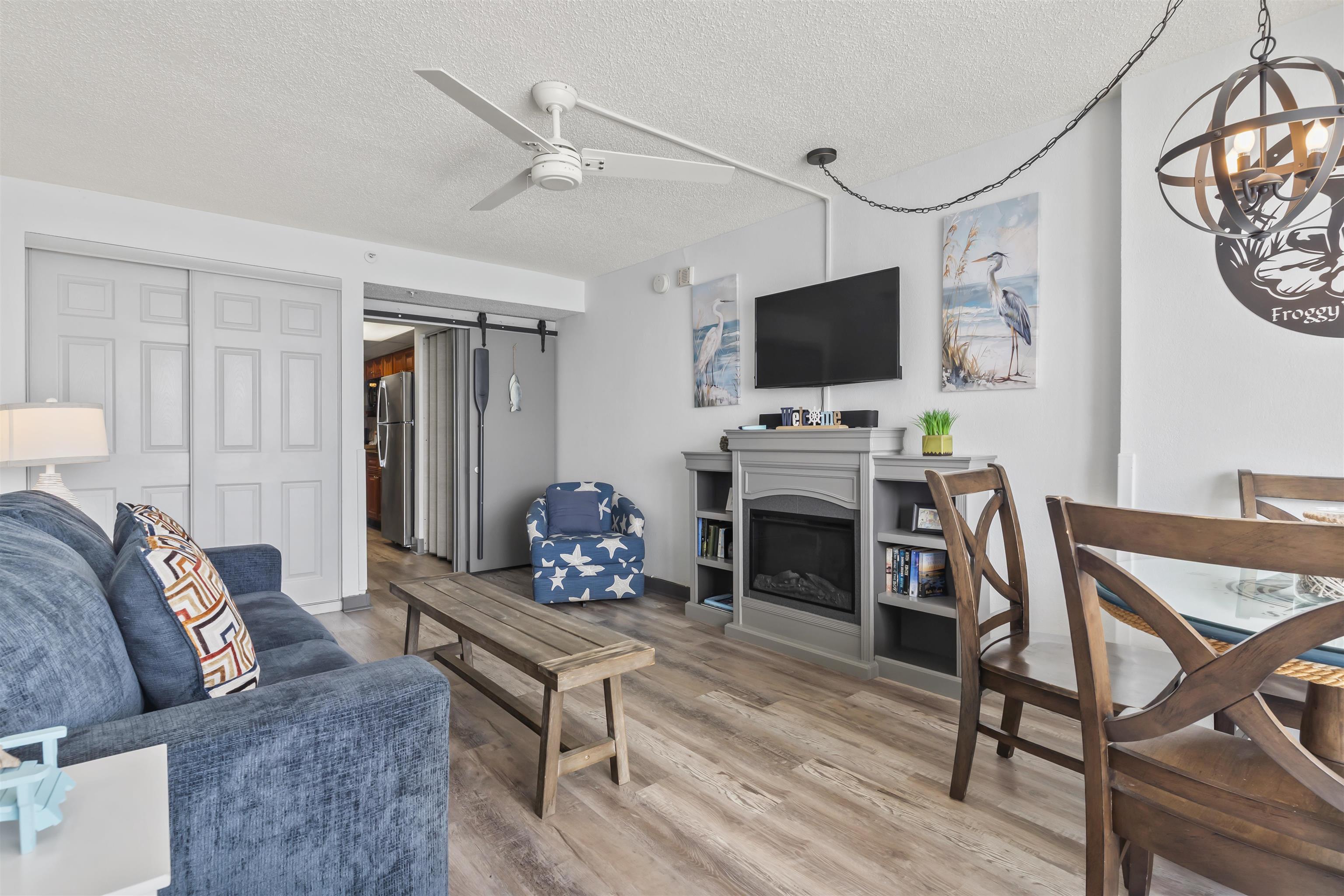 Experience the ultimate coastal retreat with this stunning, oceanfront condo at 1501 S. Ocean Blvd. #1042 in Myrtle Beach. Nestled in the highly sought-after Landmark building, this immaculate condo has been meticulously maintained, making it a rare find for those seeking a luxurious seaside escape. From the moment you step inside, you'll be mesmerized by breathtaking views of the Atlantic Ocean. The open-concept design allows for seamless flow between the inviting living area, featuring a queen-size sofa bed, and the oceanfront balcony, where you can start your mornings with a cup of coffee while watching the sunrise or unwind in the evenings as the moonlight shimmers on the waves. The beautifully upgraded kitchen boasts a full-size refrigerator, sleek flat-top range, under-counter lighting, and ample counter space, making meal preparation effortless. The adjacent dining area provides the perfect setting for dinners with the soothing sounds of the ocean as your backdrop. The spacious bedroom offers a plush king-size bed with built-in storage, while the 1.5 bathrooms include a luxurious walk-in shower in the primary bath and a separate vanity and toilet in the half bath. Stylish beachy décor, high-end finishes, and meticulous upkeep make this condo a rare opportunity. Beyond the condo, the Landmark community offers an impressive array of amenities, including indoor and outdoor pools, a lazy river, a thrilling waterslide, an arcade, and a fitness center - ensuring entertainment for all ages. Plus, you'll have effortless access to Myrtle Beach's top attractions, renowned dining, and premier shopping. Don't miss this incredible opportunity to own a pristine oceanfront vacation home where the beach is your backyard, and unforgettable memories await. Schedule your showing today! Measurements are not guaranteed; buyers are responsible for verification. Please ask your agent about lender closing costs incentives for this property.