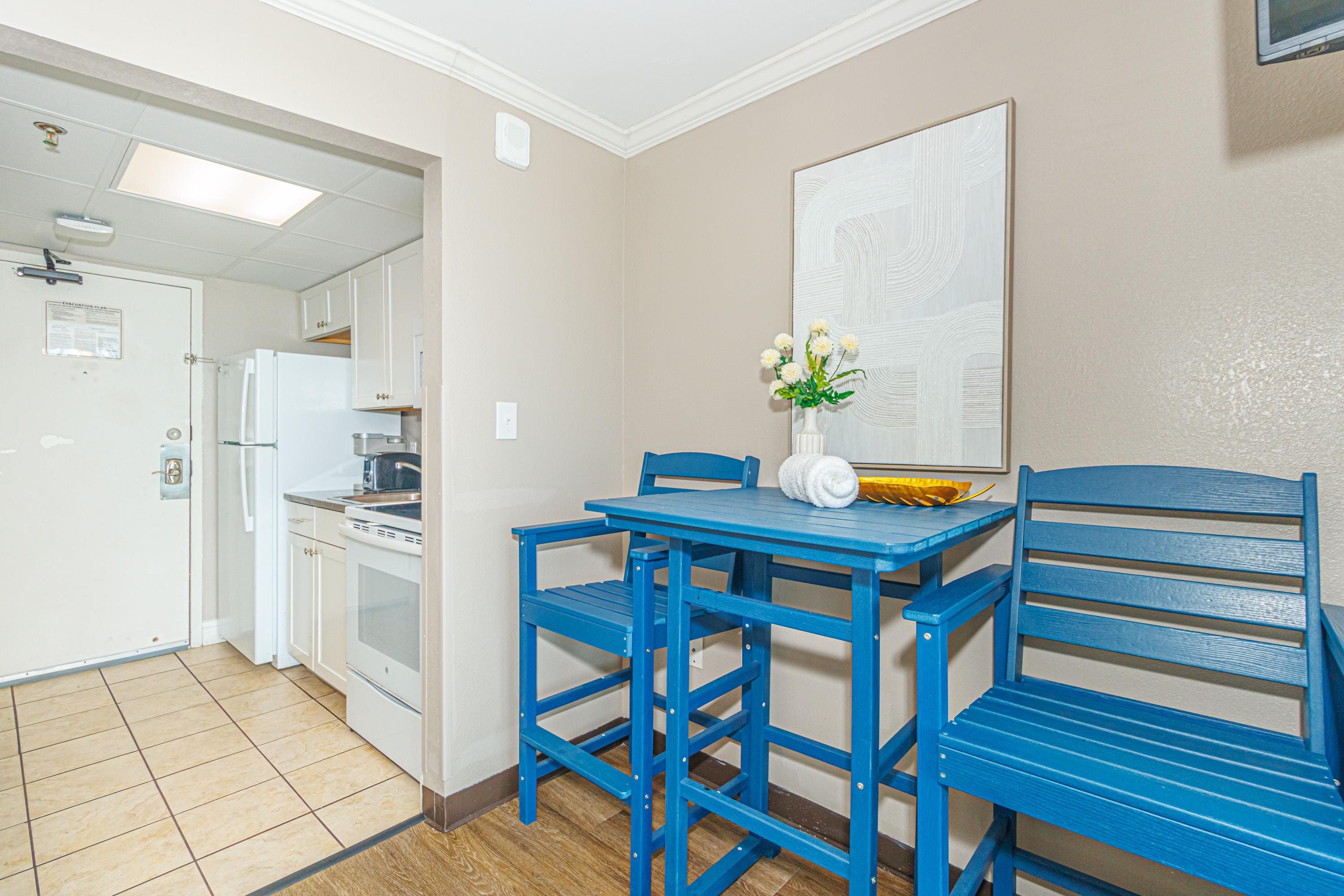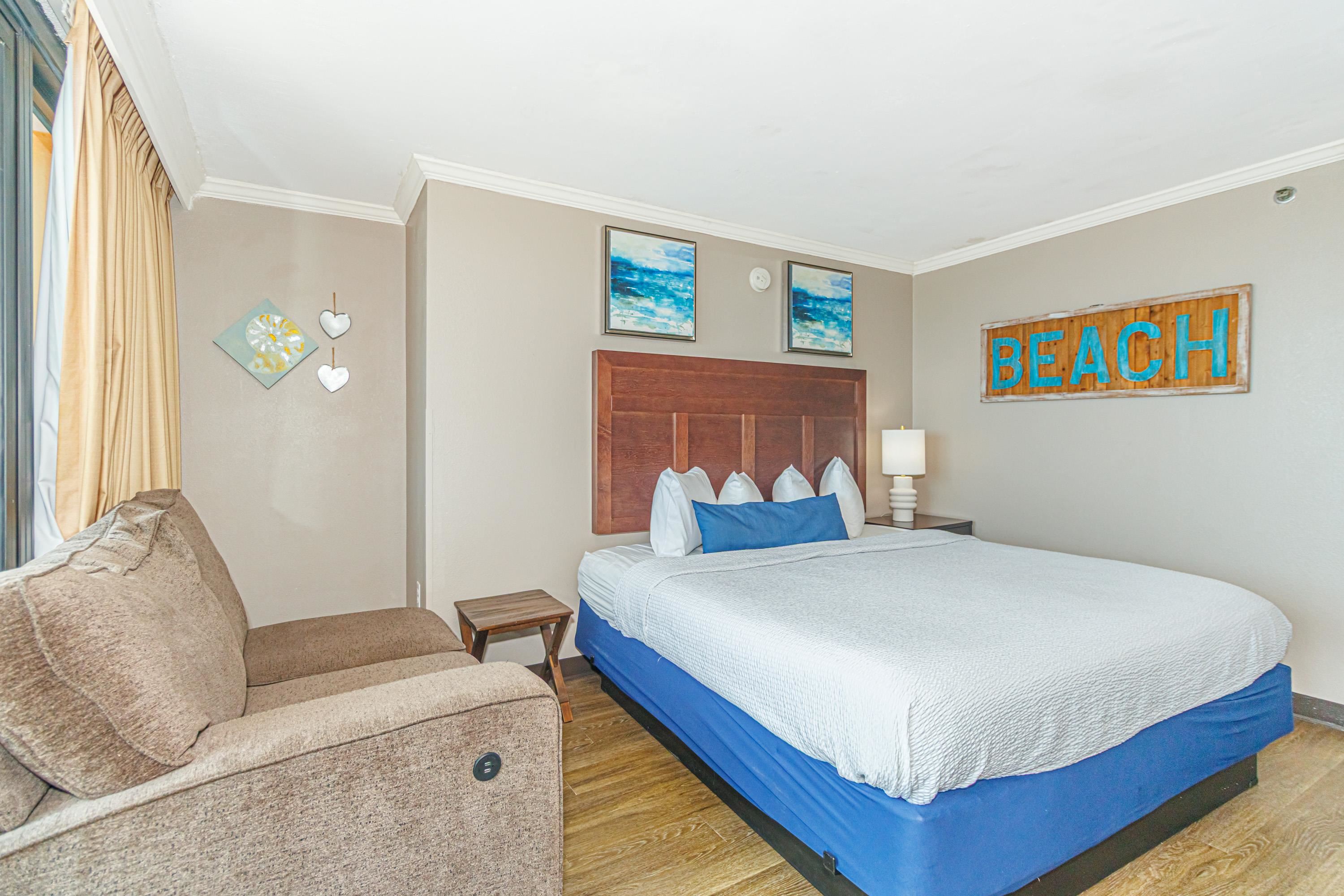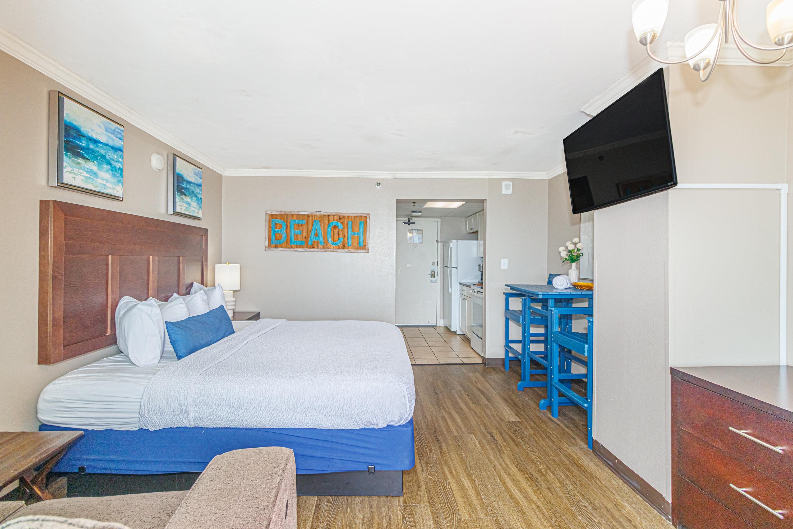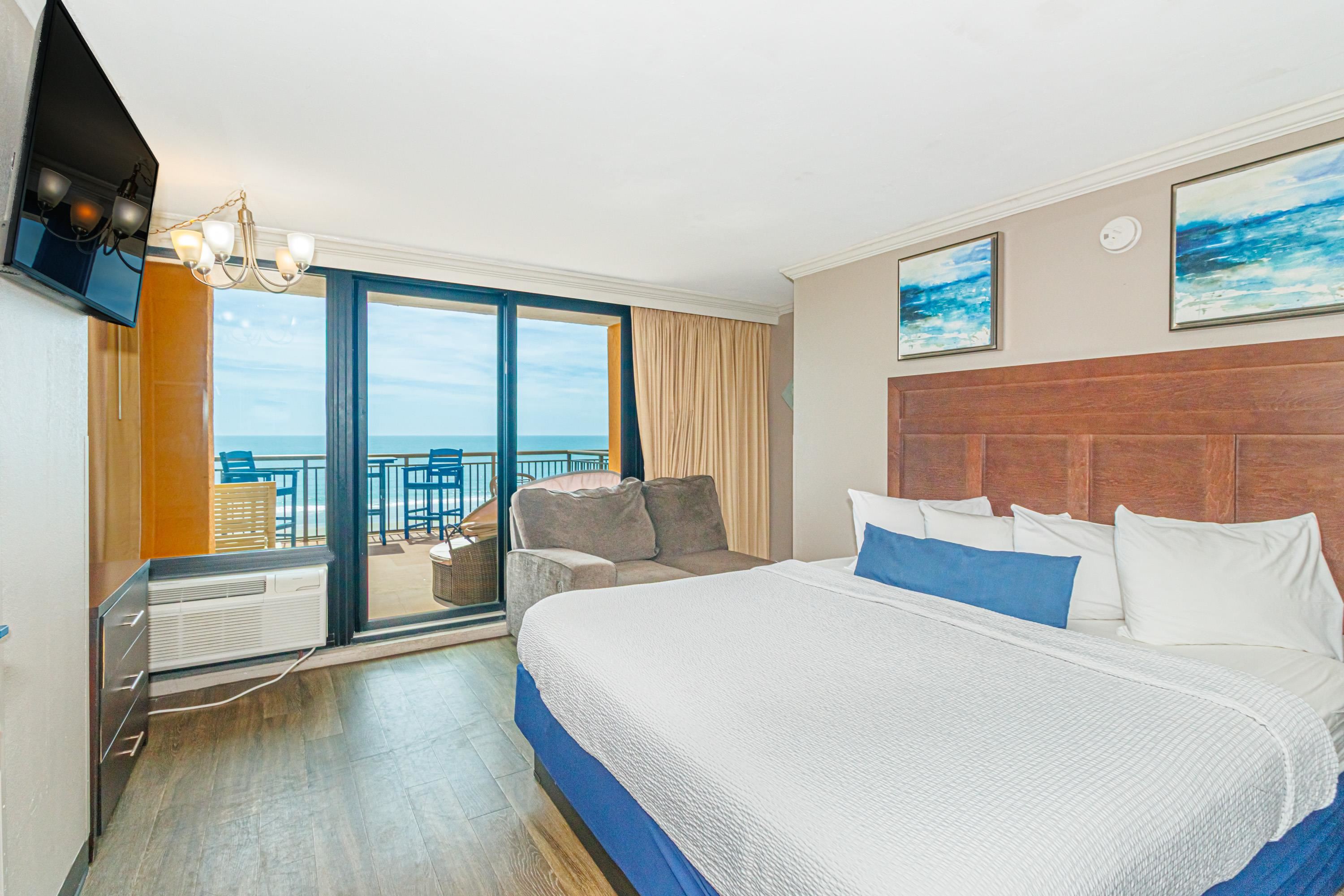 One-of-a-Kind Oceanfront Retreat at The Caravelle Discover one of Myrtle Beach’s most coveted condo styles — the exclusive 5th-floor sundeck units at The Caravelle Resort. These rarely available homes are known for their unbeatable rental performance and unforgettable oceanfront views. Step inside this fully furnished, tastefully updated condo featuring luxury vinyl plank flooring, smooth ceilings, a king-size bed, and a sleeper sofa to accommodate extra guests. The kitchen and bath showcase sleek granite countertops for a clean, modern touch. The highlight of this property is the oversized private balcony — a true outdoor living space unlike anything else on the Grand Strand. Enjoy ocean breezes from your personal daybed, host dinners at the outdoor table, or simply unwind while taking in the endless views of the Atlantic. Nestled on quiet 69th Avenue North, The Caravelle offers the perfect blend of relaxation and convenience—close to Myrtle Beach’s best dining, entertainment, and shopping yet tucked away from the bustle of downtown. Resort amenities include a fitness center, multiple pools and water attractions, an arcade, ice cream shop, and an on-site restaurant and bar. Don’t miss this chance to own a standout oceanfront condo with one of the most impressive balconies on the beach!