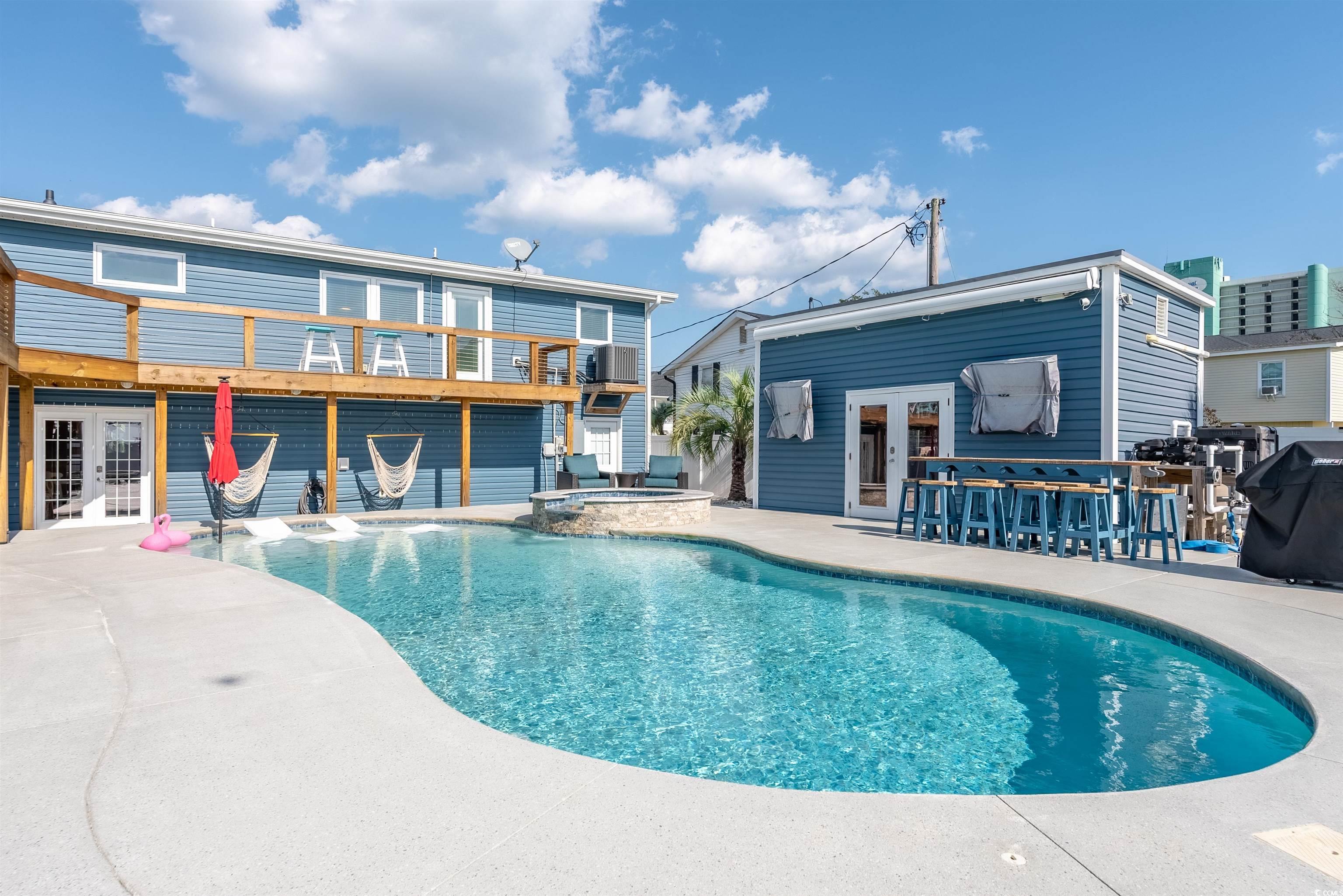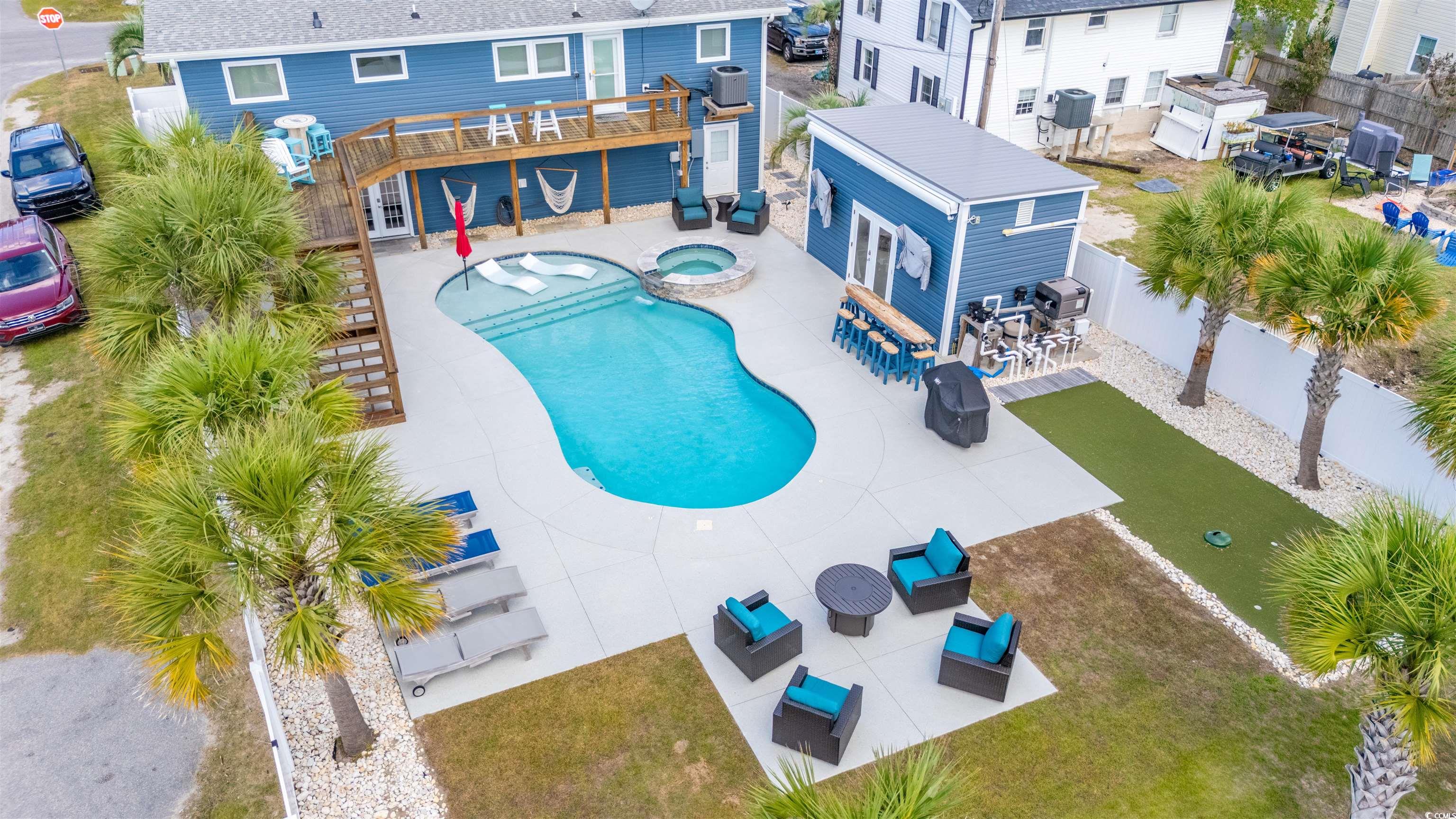 PRICE REDUCED! Welcome to your very own slice of paradise in Garden City Beach! This newly updated raised beach home is a dream come true for those seeking the perfect blend of luxury, comfort, and coastal living. Just one block from beach access, this 3-bedroom, 2-bathroom gem offers thoughtfully designed living spaces that are sure to captivate your heart. As you approach the property, you'll immediately notice the charming curb appeal of this raised beach home. The elevated design boasts stunning views of the surrounding area. Once inside, you'll be greeted by a bright, airy interior that perfectly captures the essence of coastal living. The heart of this home is undoubtedly its newly updated kitchen, complete with state-of-the-art appliances that will bring out your inner chef. Whip up delicious meals while enjoying the company of friends and family in the open-concept living area. The sleek, modern design is both functional and aesthetically pleasing, making it a joy to entertain. No doubt, the standout feature of this property is the incredible backyard oasis. Prepare to be amazed as you step outside to find a stunning swimming pool and spa, perfect for those hot summer days or cool fall nights, as the pool is heated, or relaxing evenings under the stars. The addition of a pool house adds an extra layer of luxury and convenience, providing a perfect spot for changing, storing pool supplies, or even setting up a small outdoor kitchenette. For the golf enthusiasts, there's a delightful surprise waiting - your very own putting green! Practice your short game without ever leaving the comfort of your home. It's like having a mini golf course right in your backyard! The primary bedroom is a true retreat, offering a spacious and serene environment to unwind after a long day at the beach. The two additional bedrooms provide ample space for family members or guests, ensuring everyone has their own comfortable haven. As you move downstairs, you will see a large laundry room from that flows into the specious recreation room that could be easily converted into another bedroom. Included on the bottom level is a full bathroom and kitchenette. Energy efficiency is a top priority in this home, with a tankless water heater powered by a propane. This not only helps reduce energy costs but also ensures you'll never run out of hot water, even with a house full of guests. Location, location, location! Situated in the heart of Garden City Beach, this property offers the best of both worlds - a quiet, residential feel with easy access to all the excitement of the Grand Strand. Practically right around the corner you'll find the famous Garden City Pier, where you can fish, enjoy live music, or simply take in the breathtaking ocean views. For those who love to explore, the nearby Murrells Inlet MarshWalk is a must-visit destination. This waterfront boardwalk boasts an array of restaurants, bars, live entertainment, and shops, all with stunning views of the marsh and local wildlife. It's the perfect spot for a romantic evening out or a fun-filled family day. Beach lovers rejoice! With beach access just one block away, you'll be able to feel the sand between your toes and the ocean breeze on your face within minutes of leaving your front door. Imagine starting each day with a peaceful sunrise along the shore and ending your evenings with spectacular sunset views. For those looking to maximize their investment, this property offers excellent rental income potential. Its prime location, coupled with desirable amenities like the pool and proximity to the beach, make it an attractive option for vacationers year-round. Transportation is a breeze with the inclusion of a golf cart (LSV), perfect for zipping around the neighborhood or making quick trips to nearby shops and restaurants. It's not just practical; it's part of the laid-back, coastal lifestyle that Garden City Beach is known for. Call today to schedule a tour of this wonderful beach retreat!
