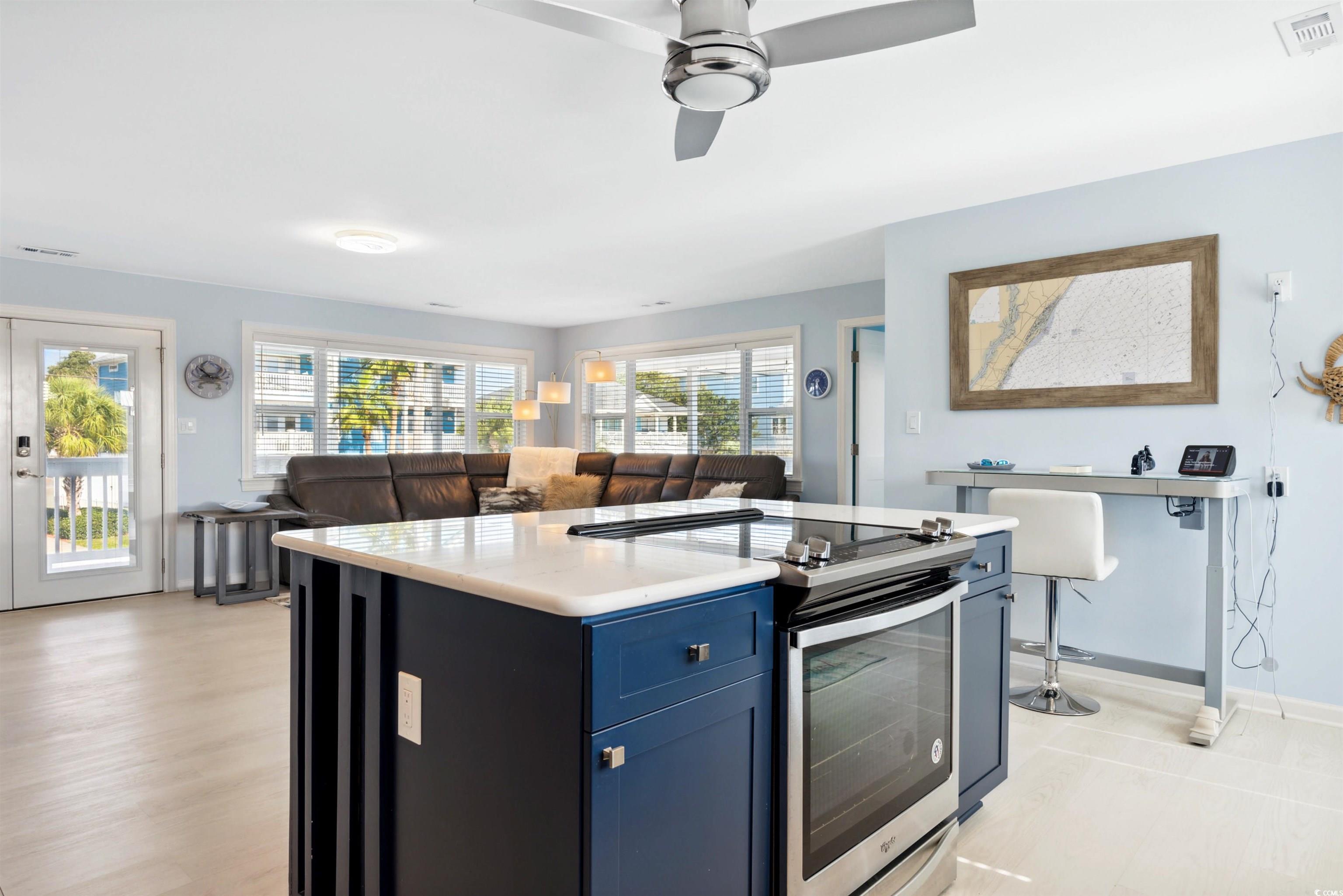 Ceiling Fan, Dishwasher, Garbage Disposal, Microwave, Refrigerator, Solid Surface Countertops, Stainless Steel Apps.