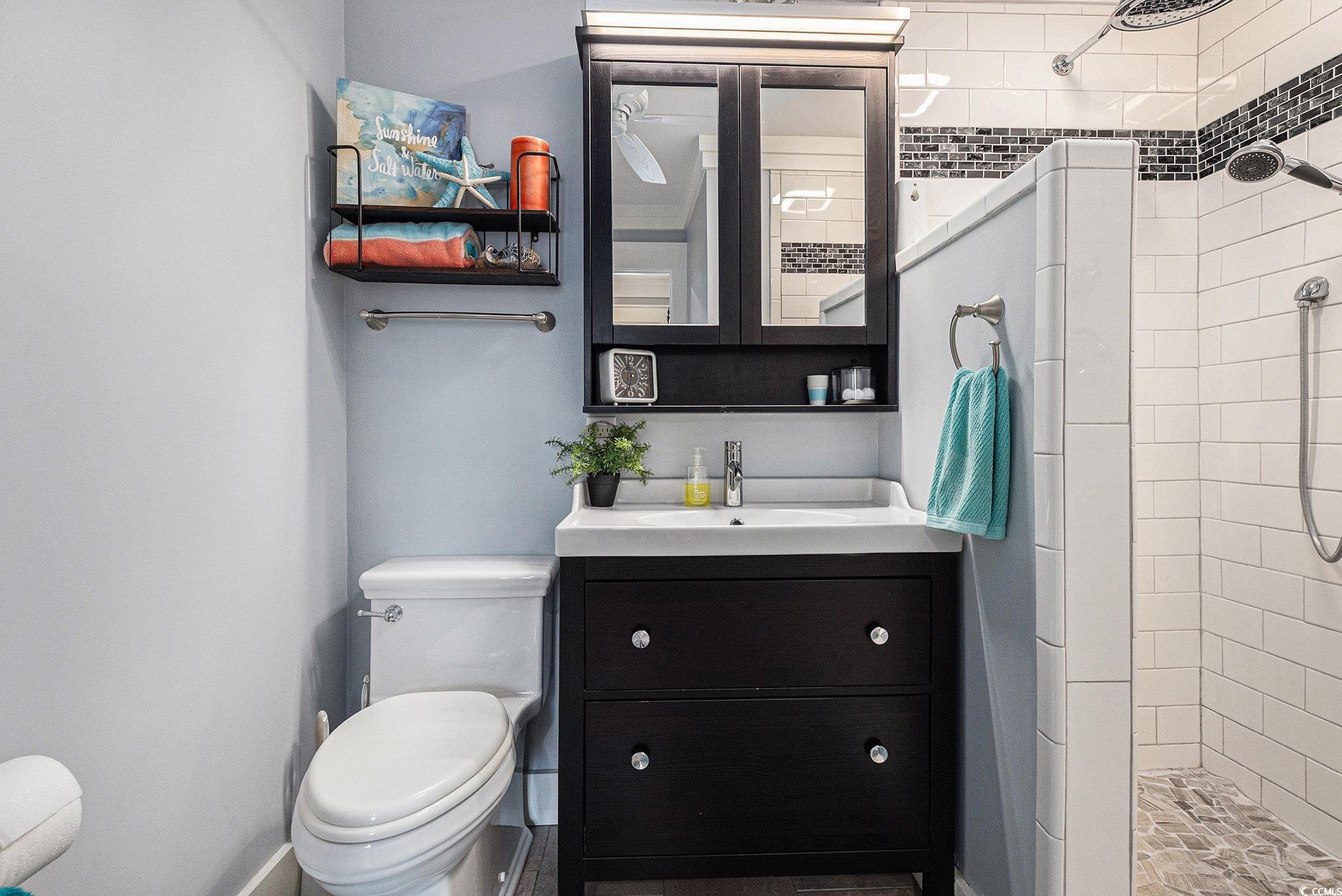 Just two blocks from the beach, this beautifully upgraded coastal home offers the perfect blend of relaxation and convenience, easily accessible by a short walk or golf cart ride to the Surfside Beach. Fully renovated inside and out, this property showcases a brand-new metal roof, durable vinyl flooring throughout, and a fresh coat of paint for a modern, move-in-ready feel. Enjoy the welcoming front screened porch that sets the tone for coastal living. Step inside the stunning kitchen featuring new cabinets, granite countertops, Samsung stainless steel appliances, a stylish tile backsplash, and updated fixtures that bring elegance and function together. The separate laundry room adds extra convenience for daily living. Out back, you'll find a large fenced yard perfect for pets, entertaining, or creating your own outdoor retreat. The exterior detached storage shed with electricity offers ample space for tools, beach gear, or even a small workshop. Whether you're searching for a full-time residence, vacation getaway, or investment opportunity, this home checks every box. Located steps away from public beach access, you can soak up the sun or stroll along the sand whenever you wish. The Surfside Beach Entertainment District is filled with vibrant dining, shopping, and live shows. Fishing enthusiasts will love the nearby piers, while those who enjoy nightlife can explore the famous Marsh Walk. The location also provides quick access to countless golf courses along the Grand Strand, making it ideal for recreation lovers. With everyday necessities such as grocery stores, banks, post offices, and medical centers just minutes away, convenience is at your fingertips. This home offers coastal charm, modern upgrades, and unbeatable proximity to the beach. Don't miss your chance to own this beachside gem--schedule your showing today and experience the best of Surfside Beach living!