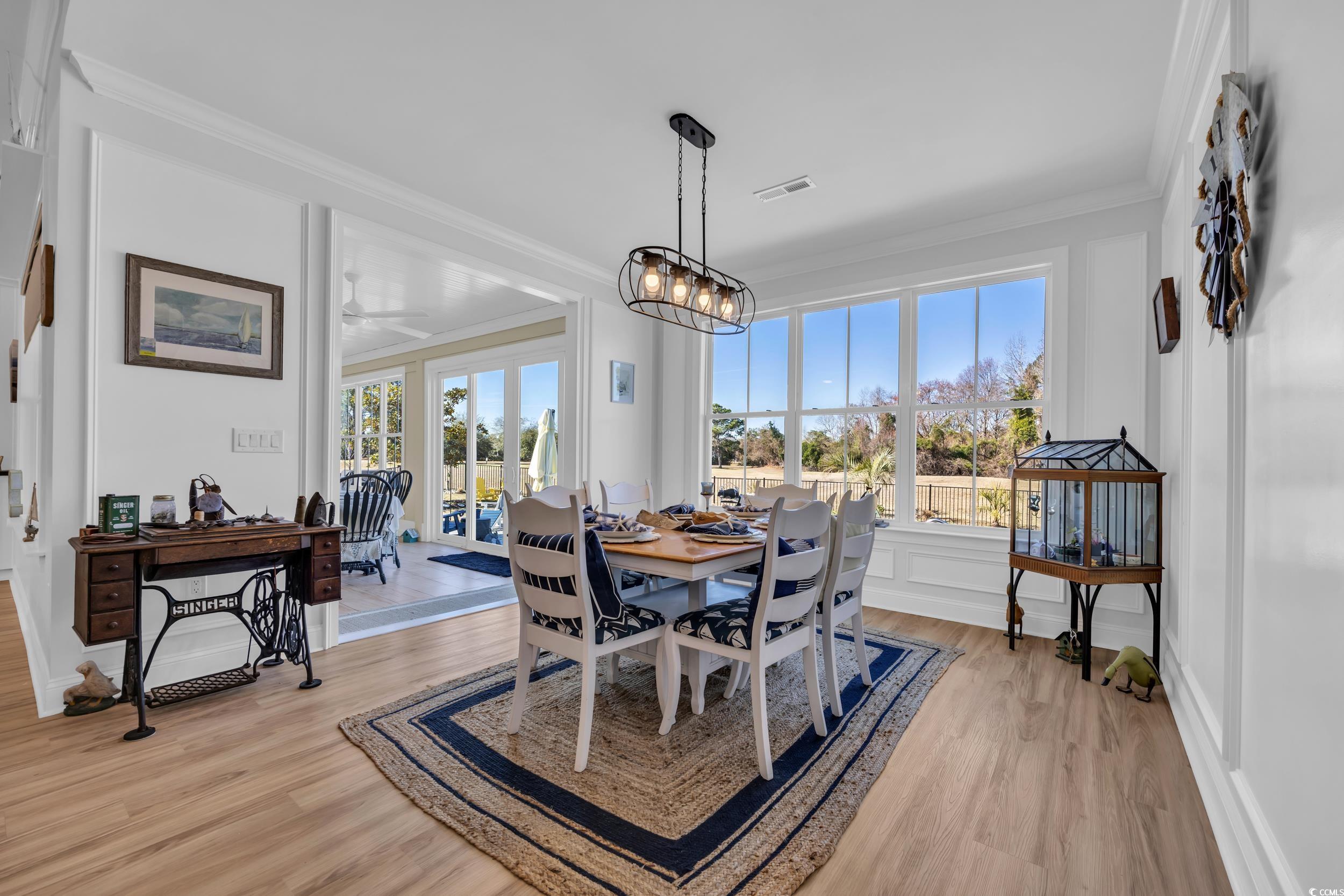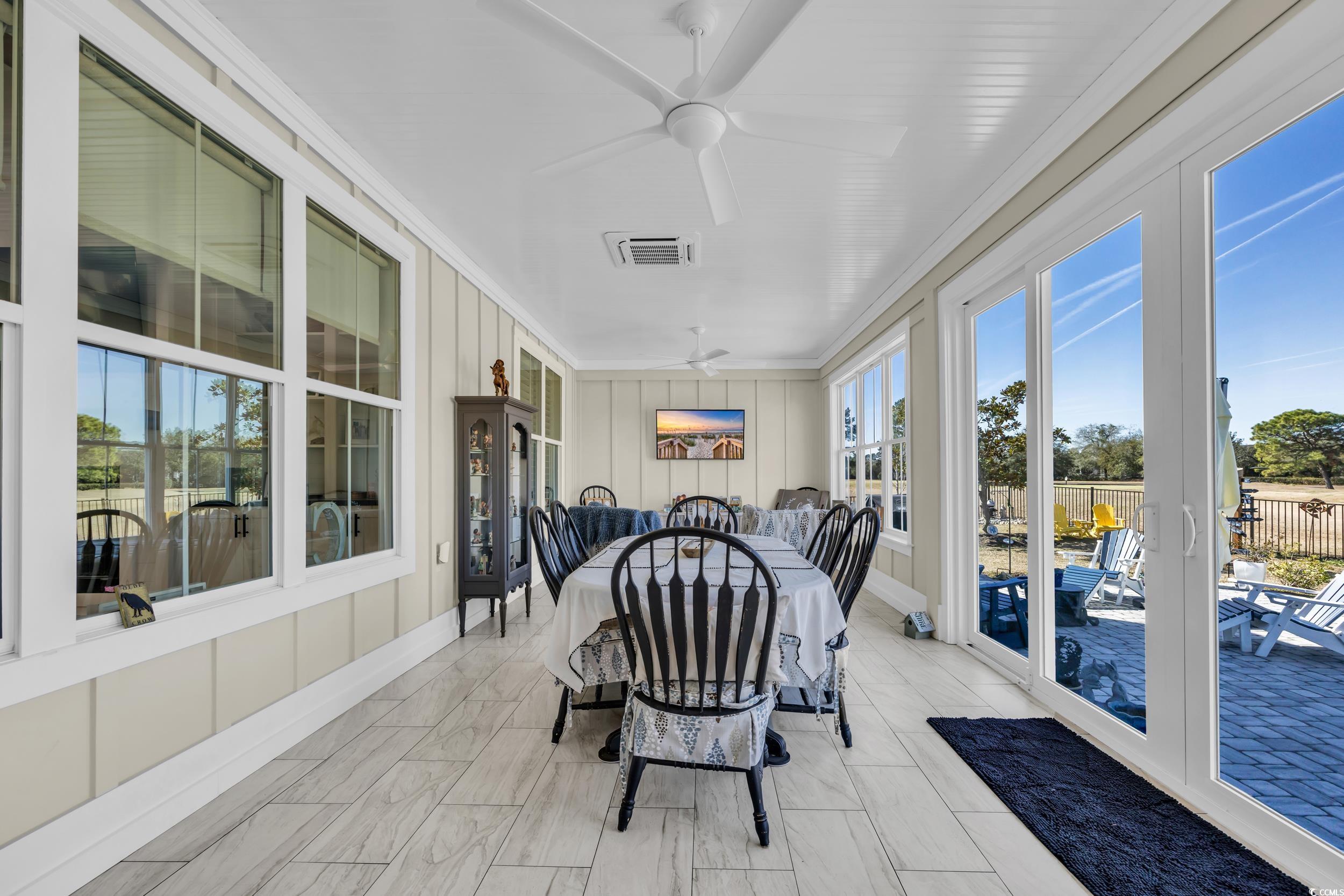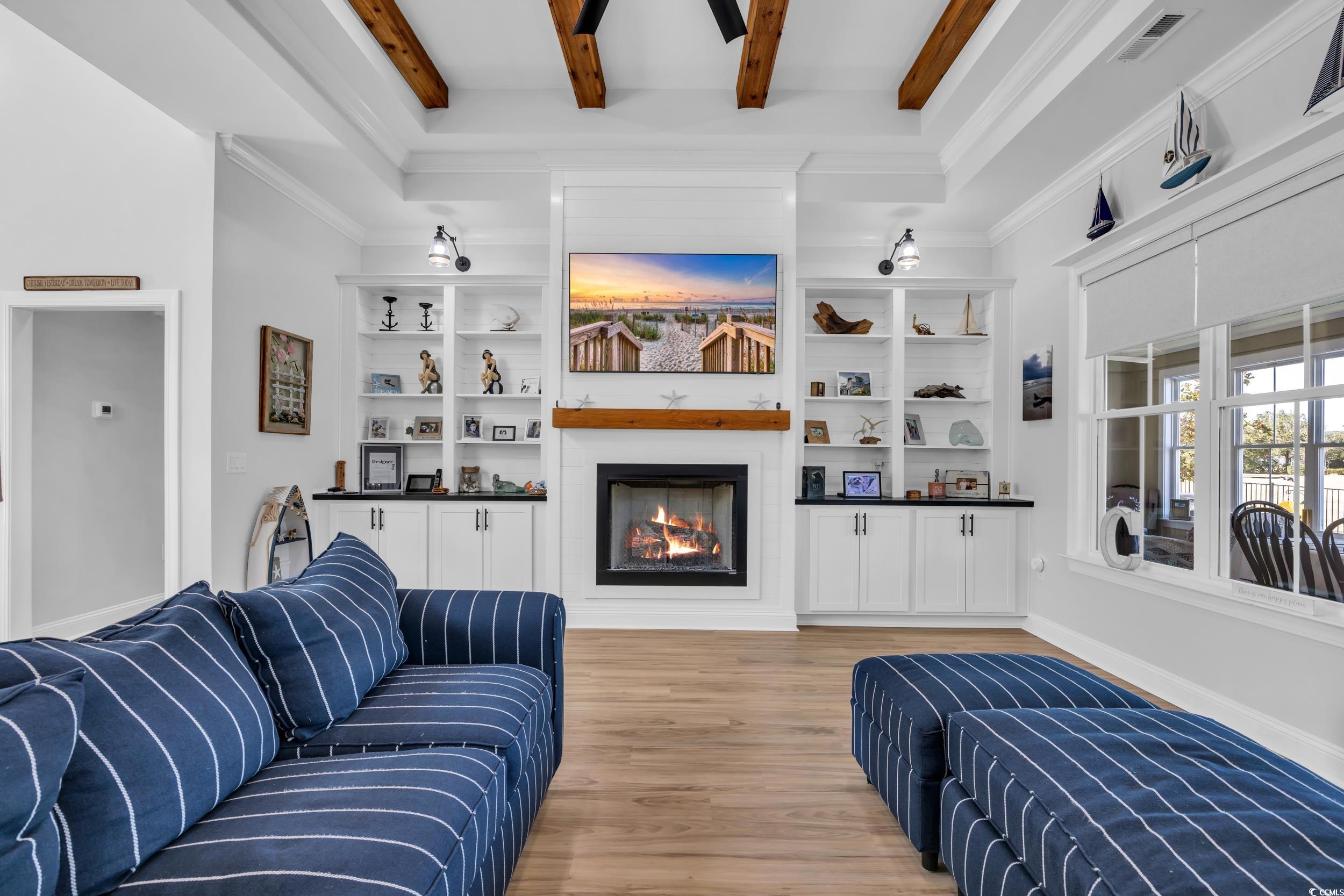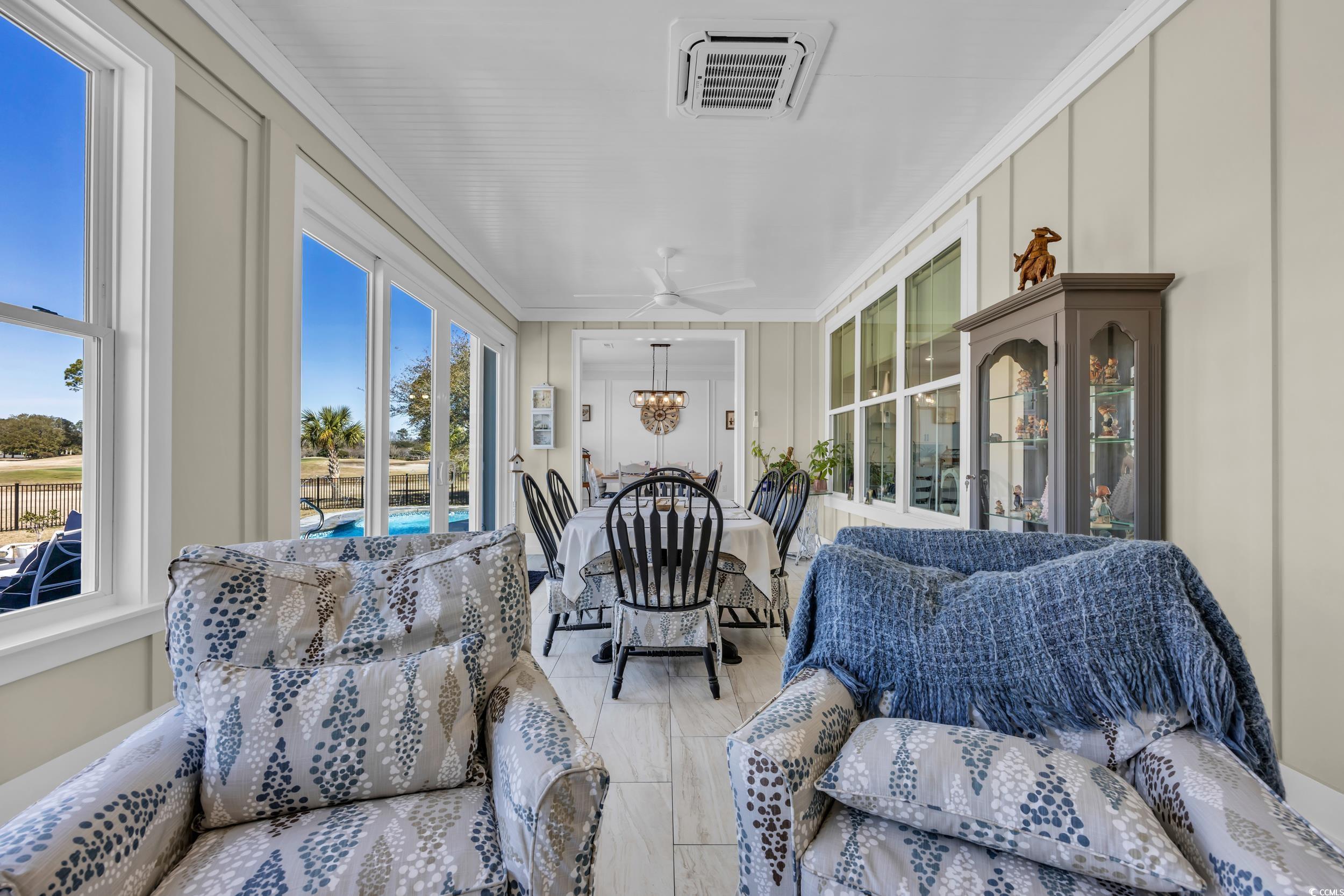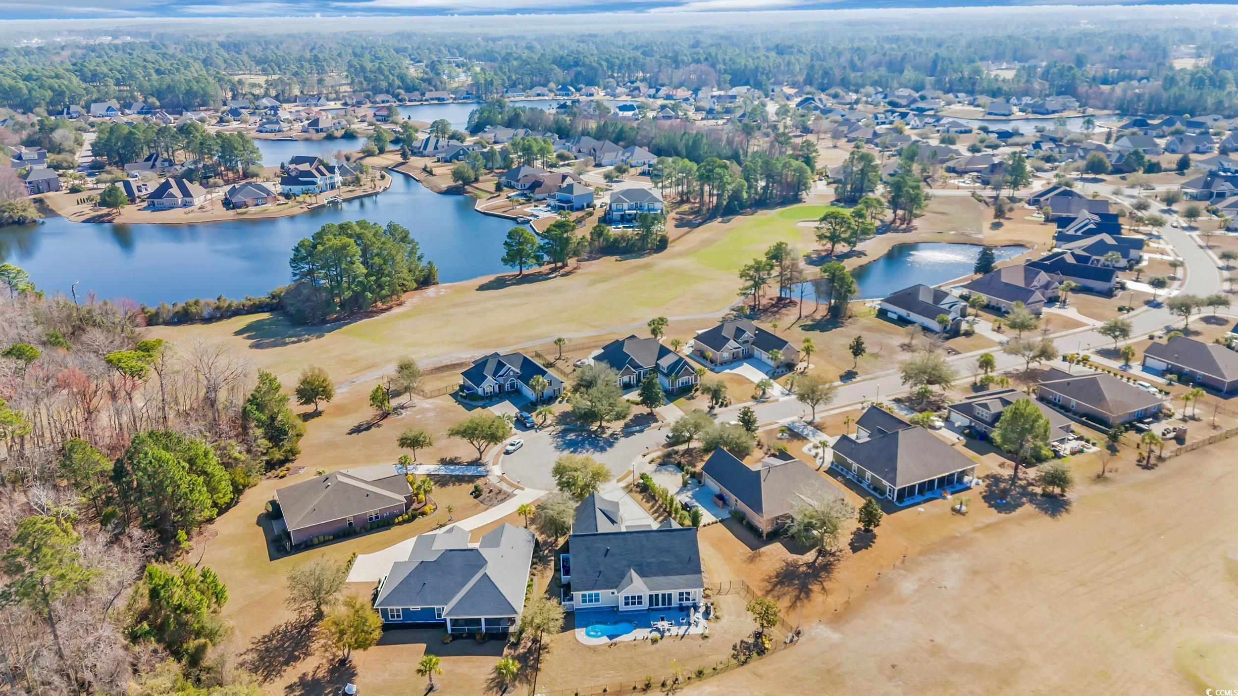 Immaculate Golf Course Home - Welcome to the epitome of modern living in this impeccably designed executive home located in the highly desirable Wild Wing Plantation. This Carolina low country inspired residence not only offers modern sophistication, and architectural elegance, but also an array of high-end features that cater to your every need. As you enter through the front door, you are immediately greeted by the open and spacious split floor plan. The living room has tall tray ceilings with beautiful rustic beams also featuring a gas fireplace and custom wooden built-in cabinets and shelving. The gourmet kitchen is truly a chef's dream boasting GE Cafe appliances in a crisp white finish including a unique double oven with French doors, 36” gas cooktop, gorgeous natural quartzite countertops, oversized 10’ x 5’ island that accommodates eight seats, ample cabinet space with soft-close features, and a large walk-in pantry. Prepare your favorite cocktail from the built-in beverage station equipped with a wine cooler for your favorite wine collection. The primary bedroom is a sanctuary of comfort with great natural light adorned with a tray ceiling and crown molding. The primary bathroom is designed with a double vanity with quartz counter tops, soaking tub, 6” tiled shower with glass enclosure. The 26’ x 12’ conditioned Carolina room is equally impressive with a 12’ sliding door that steps out to a custom paver patio with your very own private pool oasis with heat and cooling system, all overlooking a panoramic golf course view of the 9th green. The first floor has the primary suite and two additional guest bedrooms. Don’t forget about the spacious second floor that is situated with a private and spacious 14’ x 17’ guest bedroom, full bath, and a 26’ x 19’ flex space that is perfect for a family room, office, or fitness room. The features don't stop there. This home is equipped with dual HVAC units, tankless gas water heater, oversized two-car garage with epoxy floors and with a mini-split system, LVP flooring throughout, attic storage access, and plantation shutters and custom electronic blinds. This home's landscape features beautiful plantings, irrigation system, and fenced-in backyard. This home has it all. Don't miss the opportunity to own this stunning executive home that combines timeless elegance with contemporary convenience. The HOA offers resort style amenities including a clubhouse, fitness center, pool, tennis, playground, restaurant, etc. Wild Wing Plantation is conveniently located to Highway 501, award winning golf courses, CCU, HGTC, Conway Hospital, Carolina Forest, shopping, and dining. Schedule your private showing today! Square footage is approximate and not guaranteed. Buyer responsible for verification.