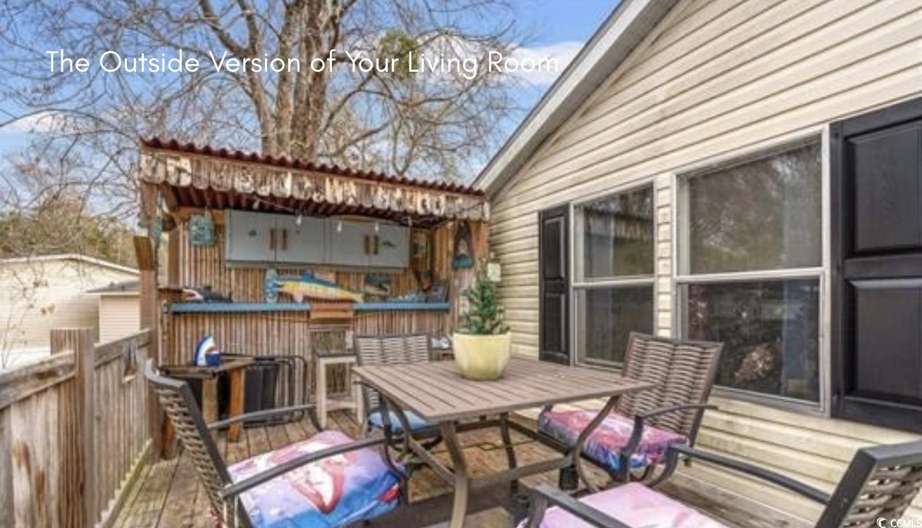 Your Coastal Oasis Awaits! 150 Folly Estates Drive, Myrtle Beach Welcome to your ultimate low-country retreat in the highly sought-after Folly Estates community! This light and bright home isn't just a place to live—it's a lifestyle waiting to be enjoyed, where every day feels like a vacation. Prime Location for the Myrtle Beach Lifestyle Enjoy the perfect blend of a peaceful neighborhood with unbeatable convenience. Beach Access: You are mere minutes from the pristine Myrtle Beach shores and all the excitement of the Grand Strand. Shopping & Dining Hub: Quickly access The Market Common, a premier destination for upscale boutiques, popular restaurants, and entertainment. Exclusive Community Amenities Folly Estates is designed for active, enjoyable living. Right within the neighborhood, you have fantastic amenities for socializing and recreation: Bocce Ball Court: Perfect for friendly competition and meeting neighbors. Courtyard & Social Areas: Enjoy relaxing in the community courtyard, creating a welcoming spot for gatherings and leisure. Entertainer's Dream Home The heart of this home is the incredible outdoor living space. Step onto your Caribbean-themed patio deck, an absolute showstopper featuring a fun, custom-built bar perfect for hosting legendary backyard BBQs. With two separate decks, you have ample space for entertaining, and dining Modern Interior Inside, you'll love the airy, spacious feel of the open-concept floor plan. Forget the hassle of carpets—this entire home boasts gorgeous, easy-to-clean laminate flooring throughout! Chef's Delight & Luxurious Rest Large Galley Kitchen: Featuring abundant counter space and cabinetry, this kitchen is designed for efficiency and perfect for preparing meals while staying connected to your guests. Split Bedroom Layout: Enjoy maximum privacy with the highly desirable split bedroom arrangement, keeping the primary suite separate from the guest rooms. Spa-Like Primary Bath: Unwind after a day at the beach in your private sanctuary featuring a large garden soaking tub, ideal for relaxation and de-stressing. Don't miss the chance to own this low-maintenance, party-ready home in a fantastic community location.