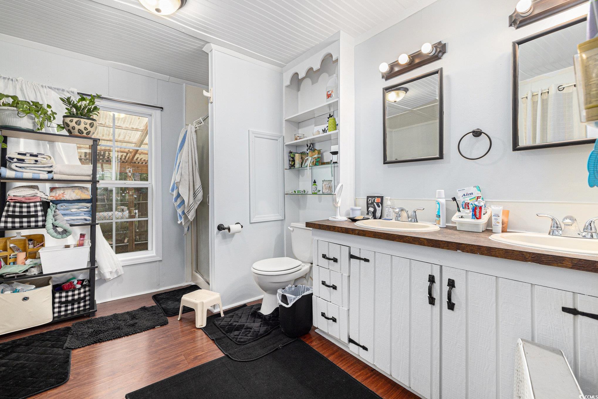 Welcome to this spacious and inviting 3-bedroom, 2-bathroom manufactured home nestled on a quiet lot in Conway. This charming residence offers comfortable living space, thoughtfully designed for both relaxation and entertaining. The open-concept layout features a generously sized living room with a cozy fireplace, a bright and airy dining area, and a large kitchen with ample cabinet space, a center work island, and breakfast bar seating. The primary suite boasts a private retreat with a large walk-in closet and an en-suite bathroom complete with a tub, and separate shower, and dual sink vanities. Two additional bedrooms are located on the opposite end of the home, each with their own walk-in closet and access to a second full bath, providing the ideal setup for family or guests. A dedicated laundry room adds to the home’s functionality. Step outside and enjoy the expansive backyard featuring a screened in porch, shaded sitting areas,—perfect for outdoor entertaining or simply enjoying the peaceful, wooded surroundings, and several outbuildings / sheds. Privacy at its best. NO HOA and on over half an acre! Don’t miss this opportunity to own this move-in-ready home just minutes from downtown Conway, shopping, dining, and not too far from the Grand Strand beaches. The property next door is also for sale. It's a singlewide on over half an acre with No HOA. Both can be purchased as a package deal. Perfect opportunity for those looking to homestead, or use for family and in-laws. They property next door is currently rented out, so can be kept as investment while living in the doublewide. Or Rent both homes out. The possibilities are endless! Buyer is responsible for verification.