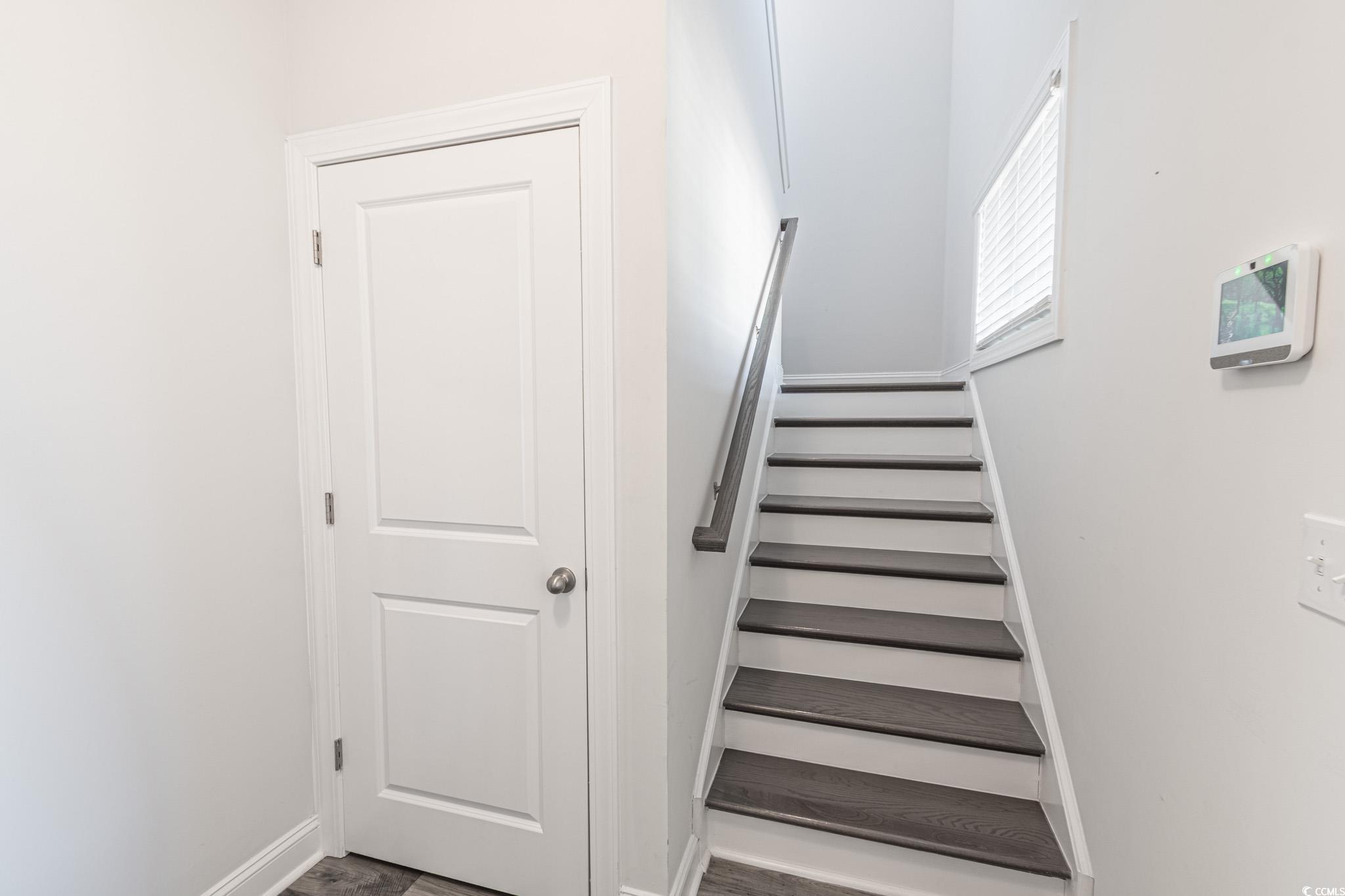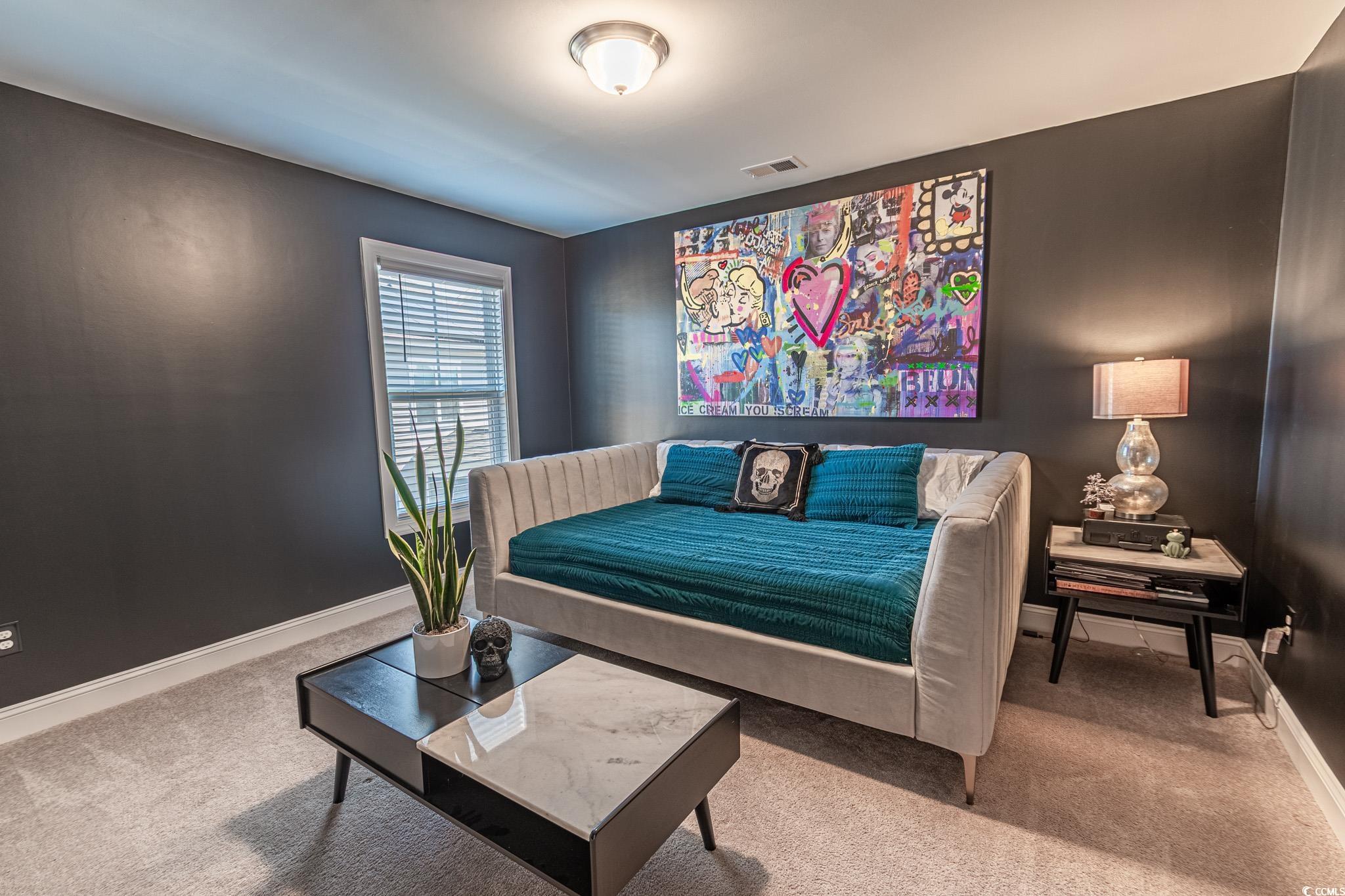 Experience refined living in this expansive two-story residence designed with both elegance and everyday comfort in mind. The thoughtfully planned main level offers a private first-floor owner’s suite and laundry, creating effortless single-level living while still providing abundant space for family and guests. A distinguished stone-accented façade, charming, covered porch, and grand 8-foot glass entry door set a sophisticated tone from the moment you arrive. Inside, the home opens to a grand, light-filled layout highlighted by a sophisticated kitchen featuring quartz countertops, oversized island seating, walk-in pantry, 36" cabinetry, and premium stainless gas appliances. Designer wide-plank flooring flows through the main living spaces, complemented by sleek tile finishes in the baths. The dining area seamlessly transitions to a screened outdoor living space, perfect for entertaining or unwinding. The upper level offers three spacious bedrooms and a large loft, providing flexibility for a media room, executive office, or additional gathering space. Smart Home technology enhances comfort, security, and efficiency. Set within Summit at Meridian, a premier master-planned community, this property enjoys an exceptional location just minutes from The Market Common—one of Myrtle Beach’s most coveted destinations for upscale dining, boutique shopping, entertainment, and outdoor recreation. Residents will enjoy future amenities designed to rival a private club experience, including an air-conditioned indoor pickleball court, resort-style pool, hot tub, fire pit, and scenic walking and biking trails. A rare opportunity to own a generously sized, luxury-inspired home in a premier Market Common-area community.