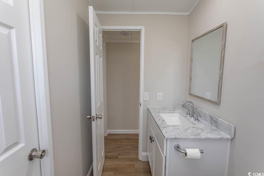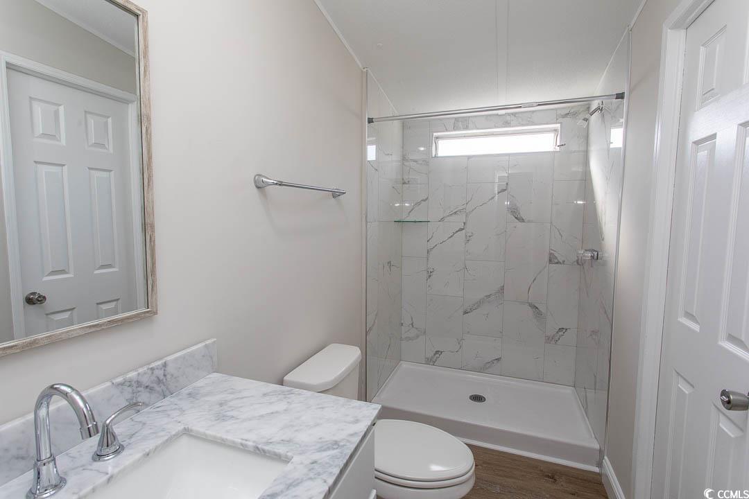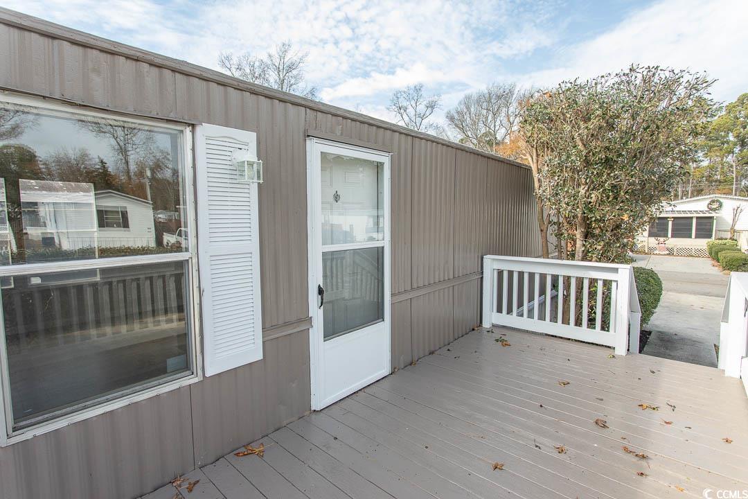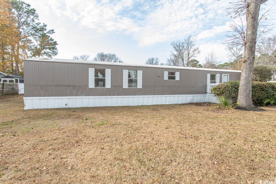 Newly renovated oversized single-wide manufactured home situated on a desirable corner lot with peaceful lake views. This 2-bedroom, 2-bath residence has been freshly painted inside and out and welcomes you from the spacious front deck overlooking Crystal Lake. Inside, a large family room flows seamlessly into the kitchen, creating an open and inviting living space. New LVP flooring runs throughout the home, complemented by sheetrock walls for a clean, modern look. The kitchen is beautifully updated with new cabinetry, granite countertops, stainless steel appliances, and a pantry for added storage. The generously sized primary suite features two walk-in closets and a private en-suite bathroom with a walk-in shower, new vanity, mirror, and lighting. The guest bathroom offers a new tile shower, vanity, and mirror, with convenient access from both the hallway and guest bedroom. Additional updates include replaced back stairs and a new concrete walkway leading to a large outdoor shed, perfect for extra storage. This home offers abundant space throughout and is ideally located near shopping, dining, entertainment, and Market Common. Enjoy golf-cart access to the beach and the serene Crystal Lake setting—perfect for kayaking, fishing, or simply relaxing on the deck and taking in the view. Whether you’re looking for a primary residence or a vacation retreat, this property checks all the boxes: affordability, proximity to the beach, low lot rent, and a peaceful waterfront setting.