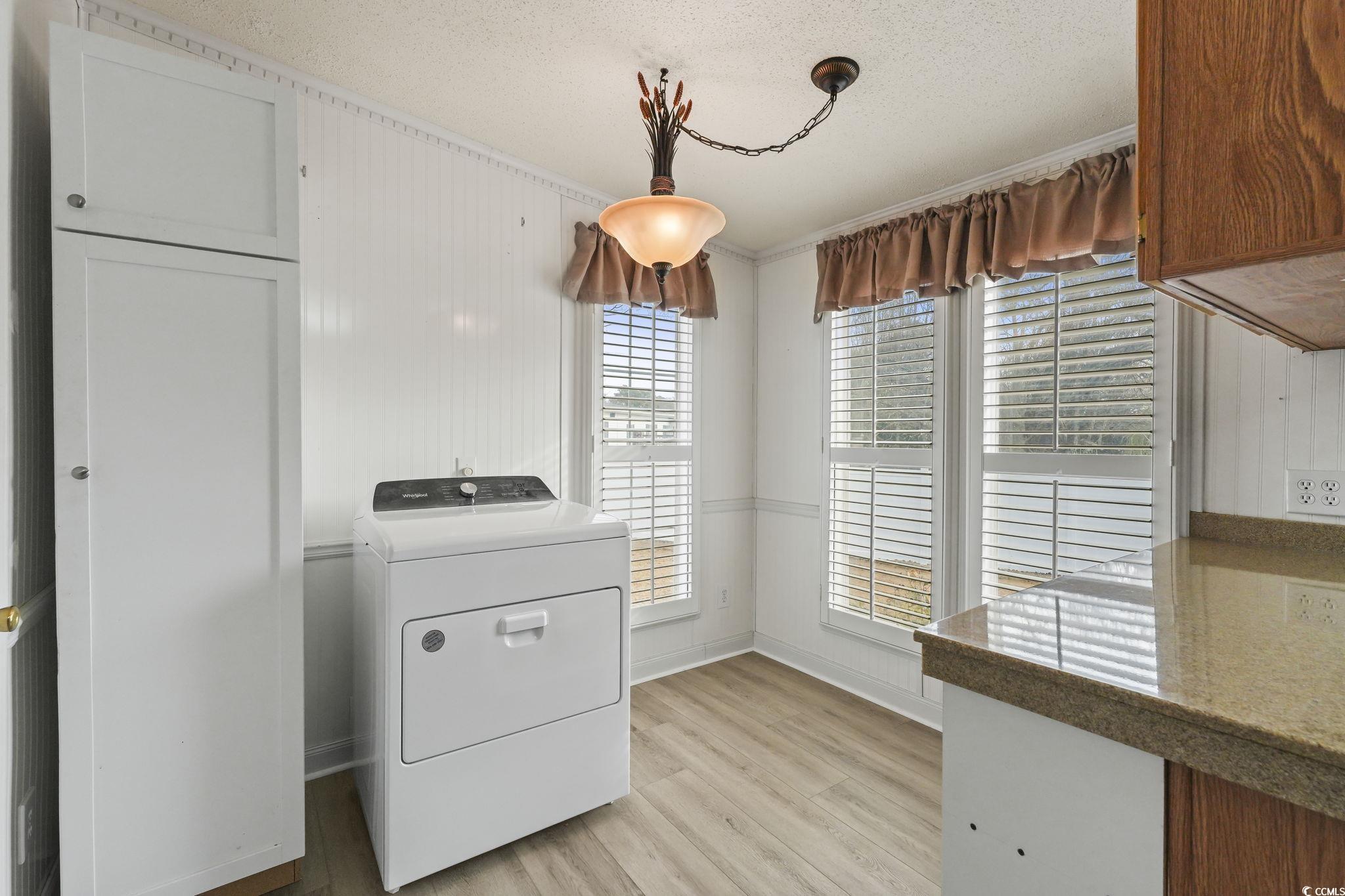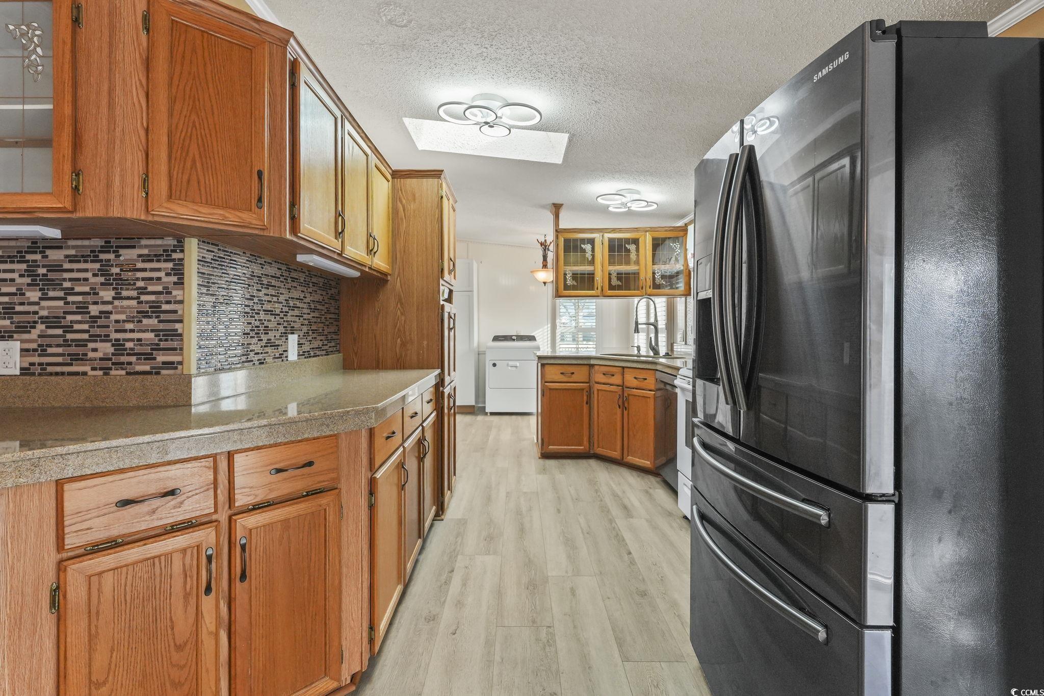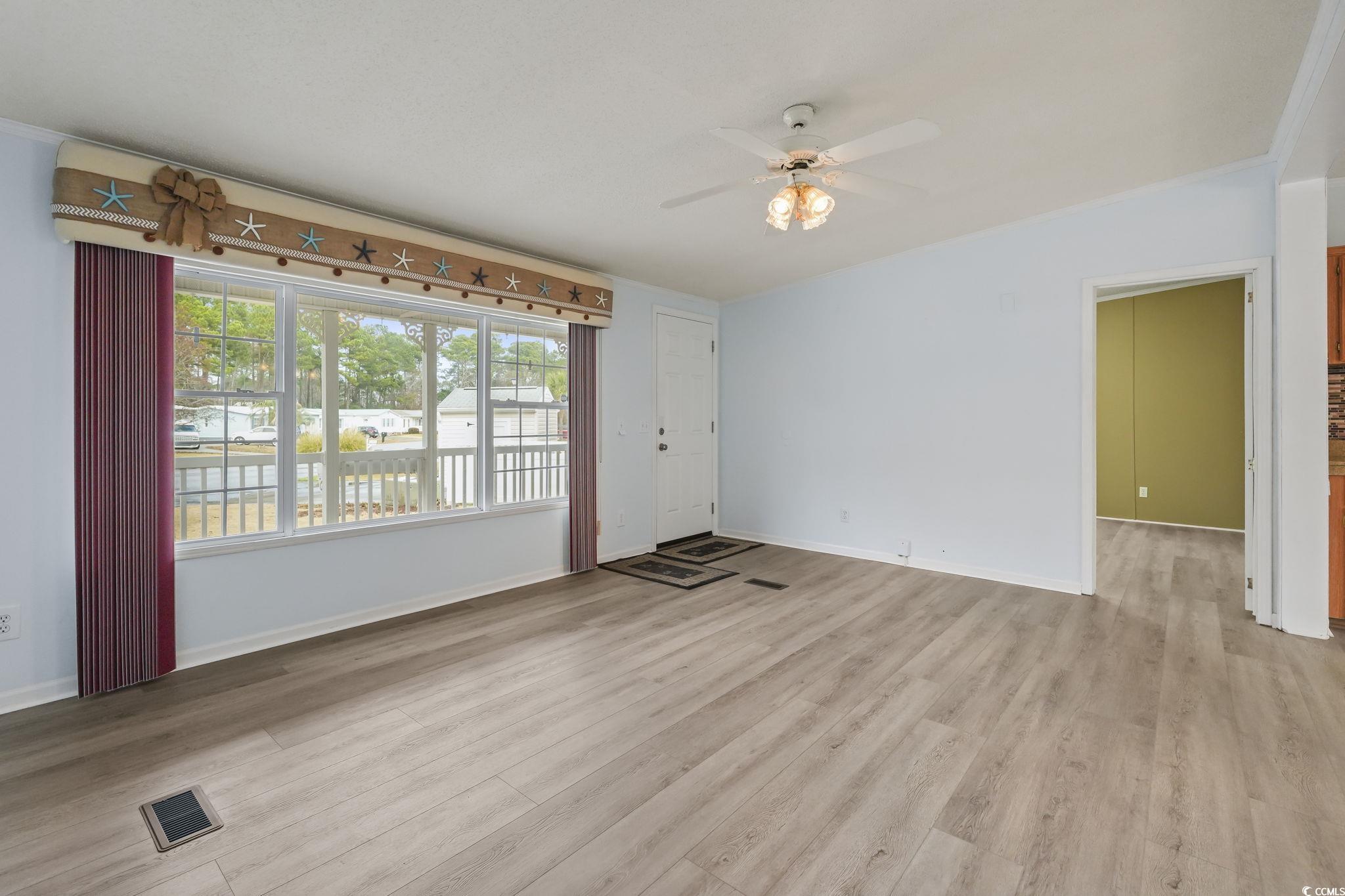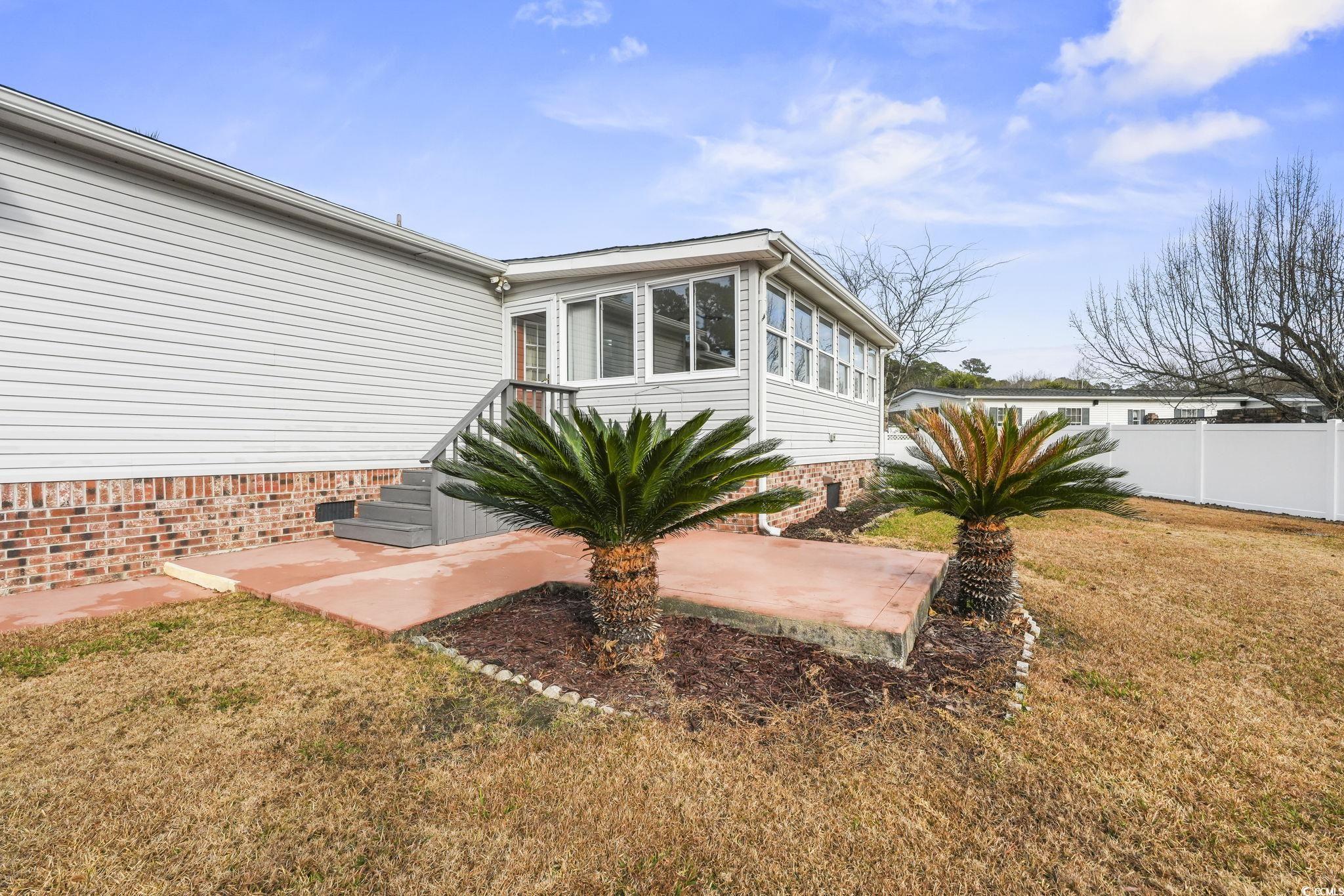 Welcome home to 203 Skippers Court. This is a 3 bedroom 2 bathroom manufactured home on a brick foundation sitting on 0.30 acre lot in a cul-da-sac. Enjoy a cup of coffee or a good book in the carolina room overlooking the serenic pond. This home features new luxury vinyl plank flooring installed in 2025, plantation shutters, backsplash in the kitchen, eastonite countertops, and a 220 plug for a generator. Wheither you are looking for a primary, secondary, or investment property, Captain's Choice is in a great location. Just a very short drive to North Myrtle Beach, and minutes from all the shopping, dining, and entertainment the Grand Strand has to offer. Don't miss seeing this one today!
