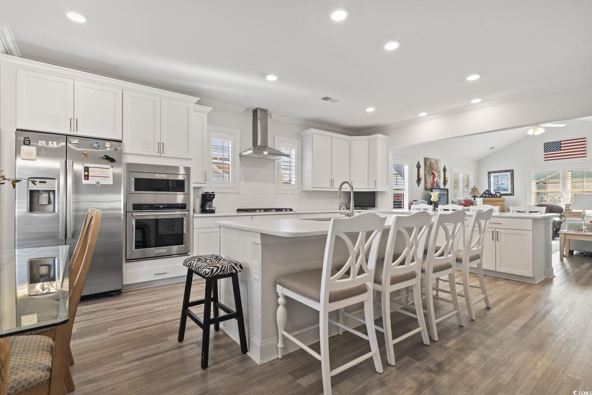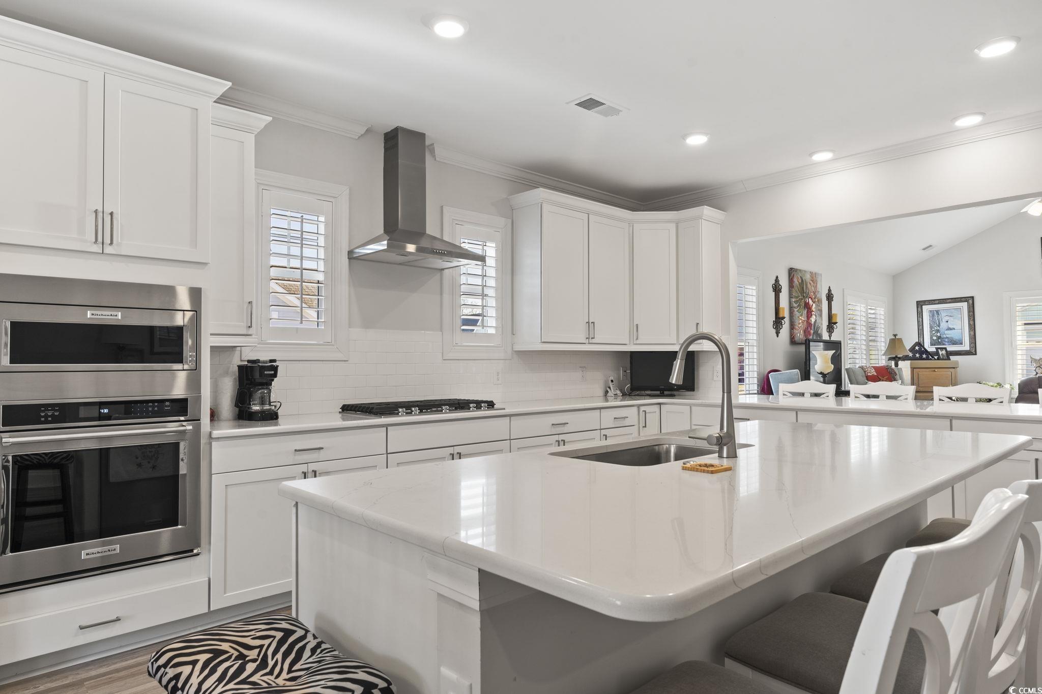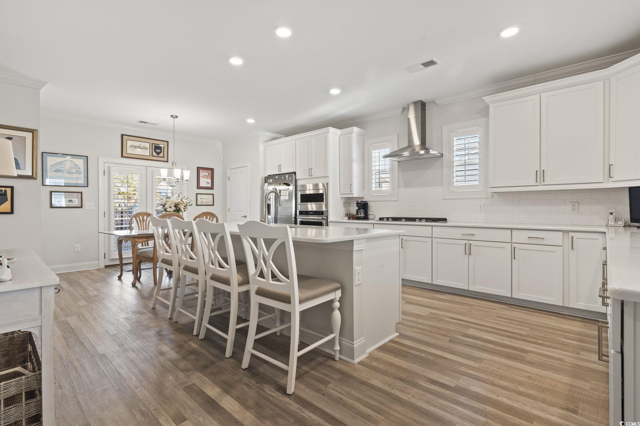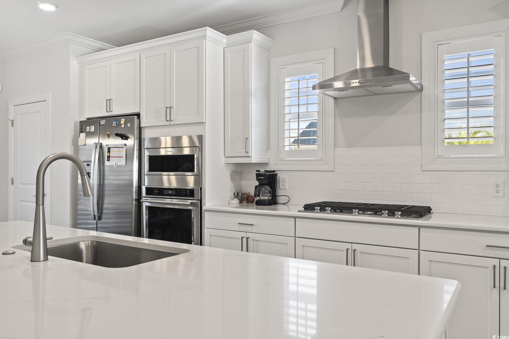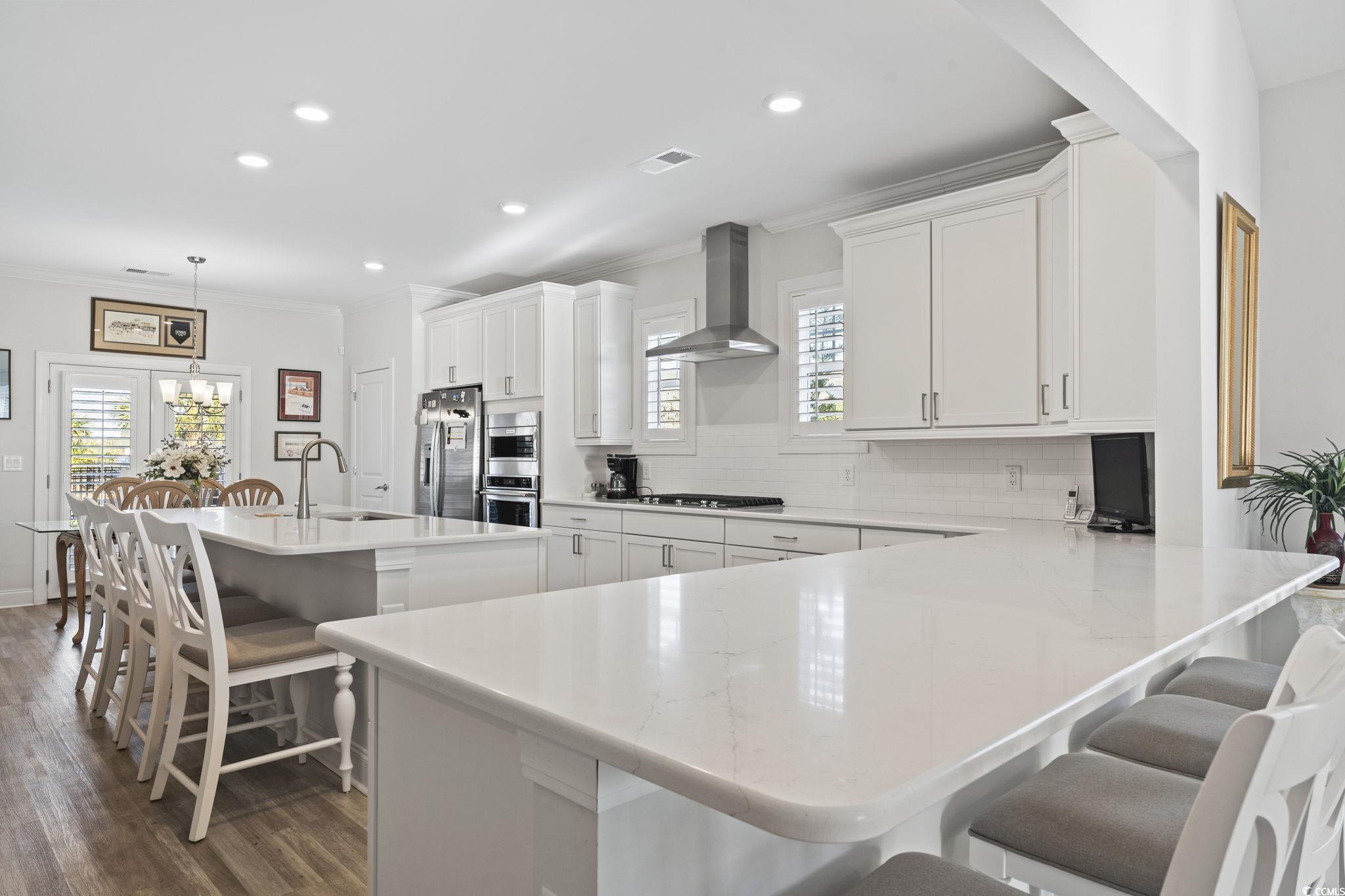 Welcome to this exceptional 5-bedroom, 3-bathroom corner-lot residence located in the highly desirable Robbers Roost community, offering the perfect blend of upscale design, coastal convenience with a community pool, and everyday comfort. Ideally positioned east of Highway 17 and less than one mile from the beach, this home places you just minutes from Cherry Grove, while still enjoying a quiet residential setting. This stunning home is offered fully furnished and turnkey, allowing for an effortless transition into coastal living. Step inside to discover upgraded LVP flooring throughout, complemented by plantation shutters on every window, adding timeless elegance, natural light control, and architectural charm across the home. The heart of the property is a chef-inspired gourmet kitchen featuring natural gas, quartz countertops, premium finishes, and an expansive oversized island with extended peninsula, making it an entertainer’s dream and the ultimate gathering space for family and friends. Designed for both functionality and lifestyle, this home truly delivers an entertainment paradise, with open living spaces that transition effortlessly from kitchen to living and dining areas. The fenced-in backyard offers room to relax, entertain, or customize to your vision. Enjoy true peace of mind knowing this home is located in a natural gas community and equipped with a whole-house generator, allowing you to relax in comfort and continuity during power outages—an invaluable luxury for coastal living. Car enthusiasts and storage seekers will appreciate the three-car garage with tandem bay, ideal for accommodating a full-size SUV, golf cart, or additional storage needs. Additional walk-in storage space on the second floor provides flexibility rarely found in homes this close to the coast. Enjoy the convenience of a golf cart-friendly lifestyle, with easy access to nearby restaurants, grocery stores, pharmacies, and everyday essentials—all just minutes from your door. Whether you’re seeking a primary residence, coastal retreat, or luxury lifestyle upgrade, this North Myrtle Beach home offers refined finishes, an unbeatable location, and move-in-ready ease in one exceptional package.