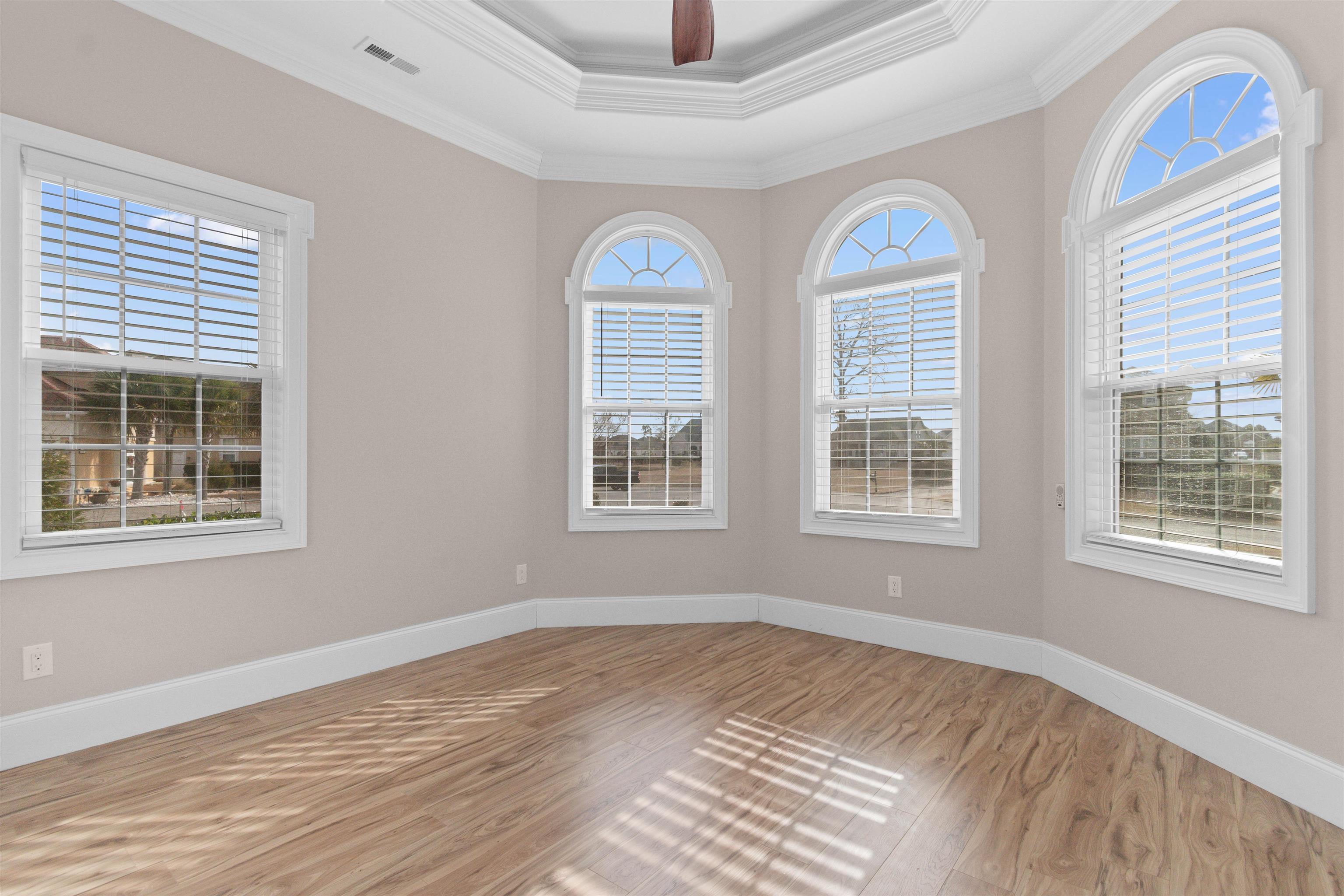 Tucked away in a peaceful cul-de-sac, 1121 Bluffton Court is a stunning, meticulously maintained residence that shows like a model home. Elegant arched windows flood the interior with natural light, setting the stage for an open, welcoming layout designed for both comfort and entertaining. The kitchen anchors the home and overlooks the main living space, keeping everyone connected. This central gathering area is beautifully appointed with a tray ceiling featuring custom lighting details, classic crown molding, and a warm fireplace that creates an inviting focal point. The primary suite is a true retreat, highlighted by tray ceiling accents, spacious walk-in closets, and a spa-inspired ensuite complete with dual vanities, a walk-in shower, and a luxurious soaking tub. Every detail throughout the home reflects exceptional care and timeless style, making it truly move-in ready. Additional bedrooms offer flexibility for guests, a home office, or hobby space. Outdoor living is just as impressive, with a screened-in porch perfect for unwinding at sunset and a private patio overlooking the backyard. A two-car garage, dedicated laundry room, and low-maintenance landscaping add everyday ease. Located in the highly sought-after Carolina Waterway Plantation, residents enjoy outstanding neighborhood amenities including a clubhouse, resort-style swimming pool, tennis and basketball courts, playground, and beautifully maintained common areas with sidewalks ideal for walking and biking. All of this is just minutes from shopping, dining, golf courses, and the beach, making this home the perfect blend of luxury, lifestyle, and location.