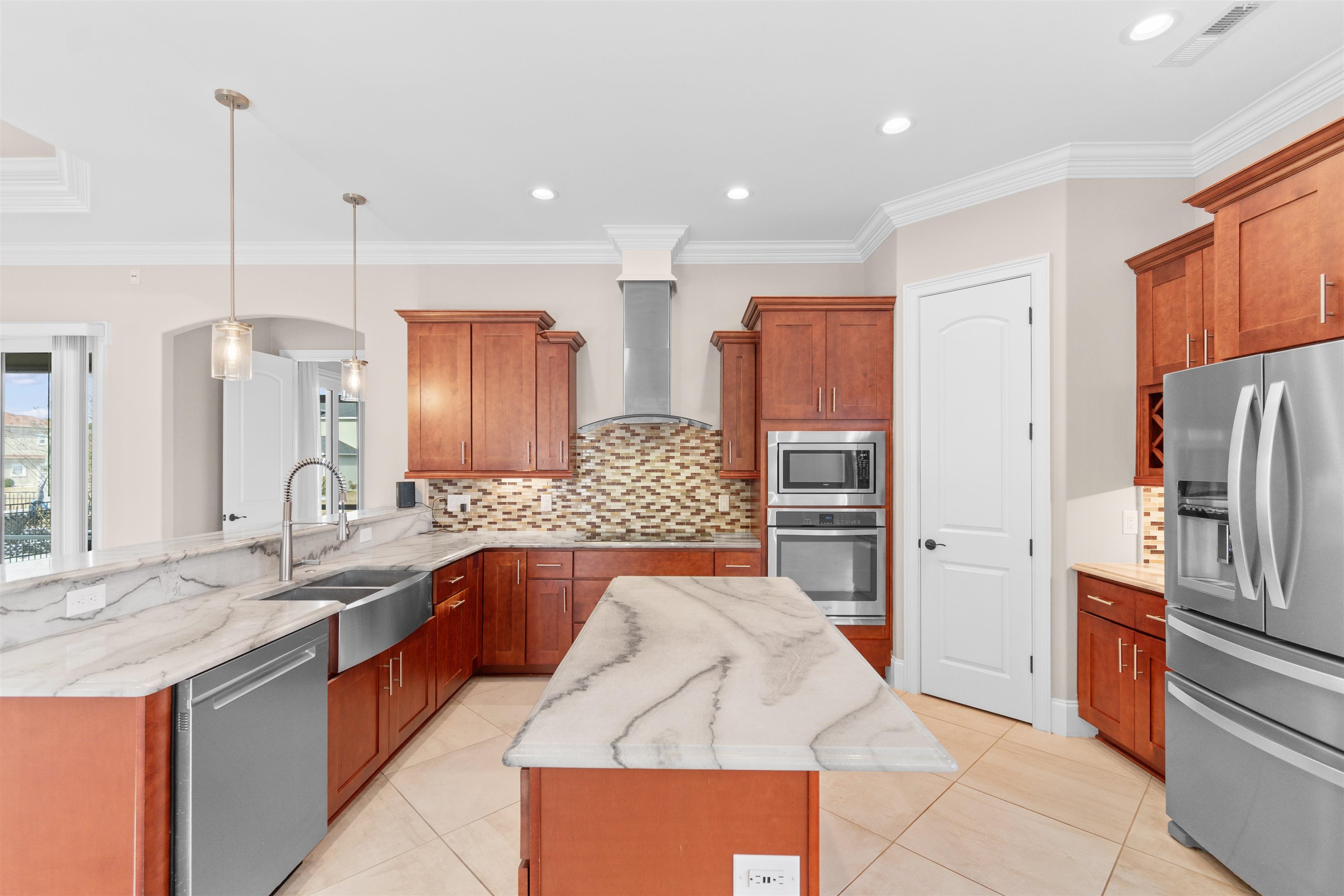 Dishwasher, Garbage Disposal, Refrigerator, Microwave, Breakfast Bar, Pantry, Stainless Steel Apps., Solid Surface Countertops