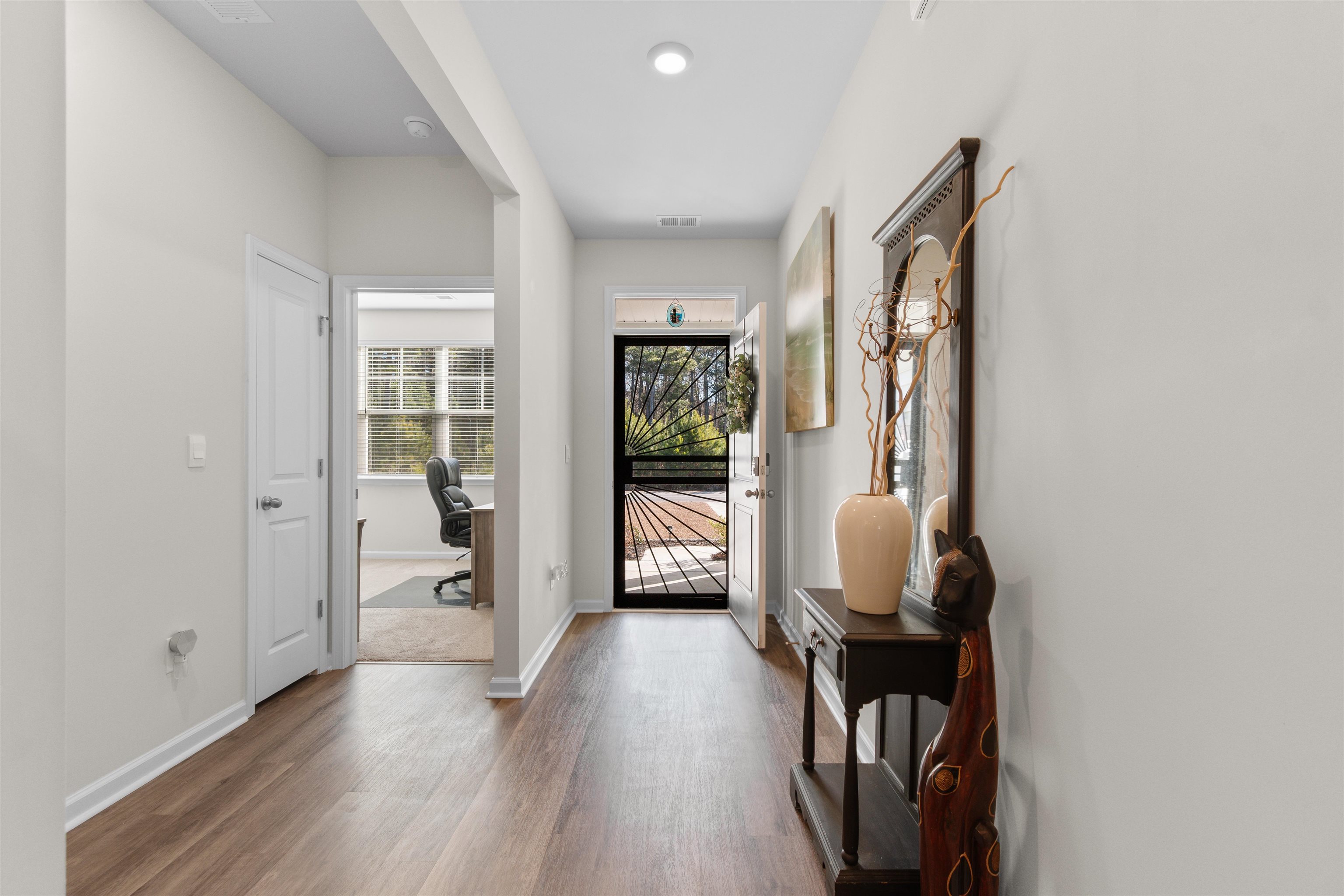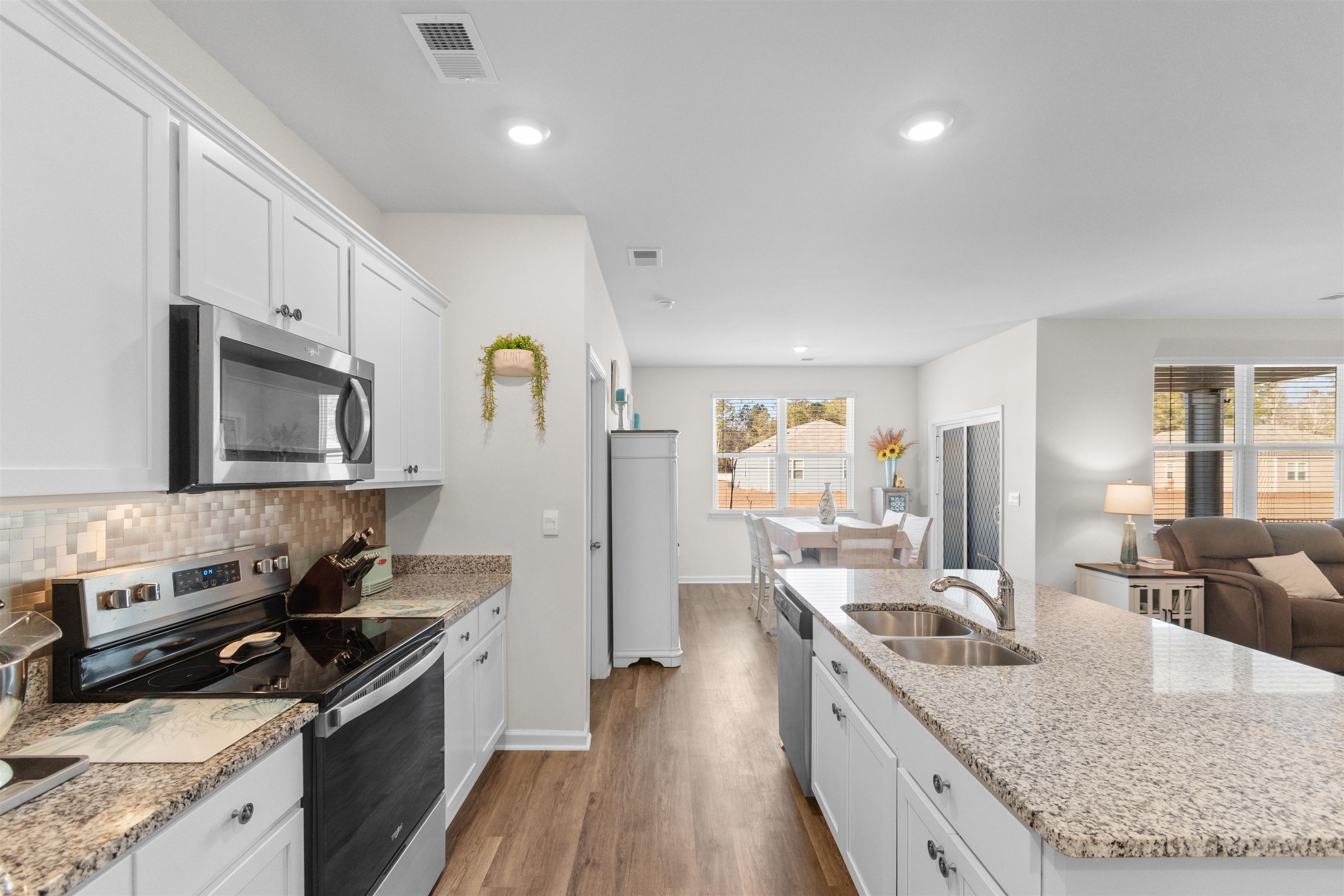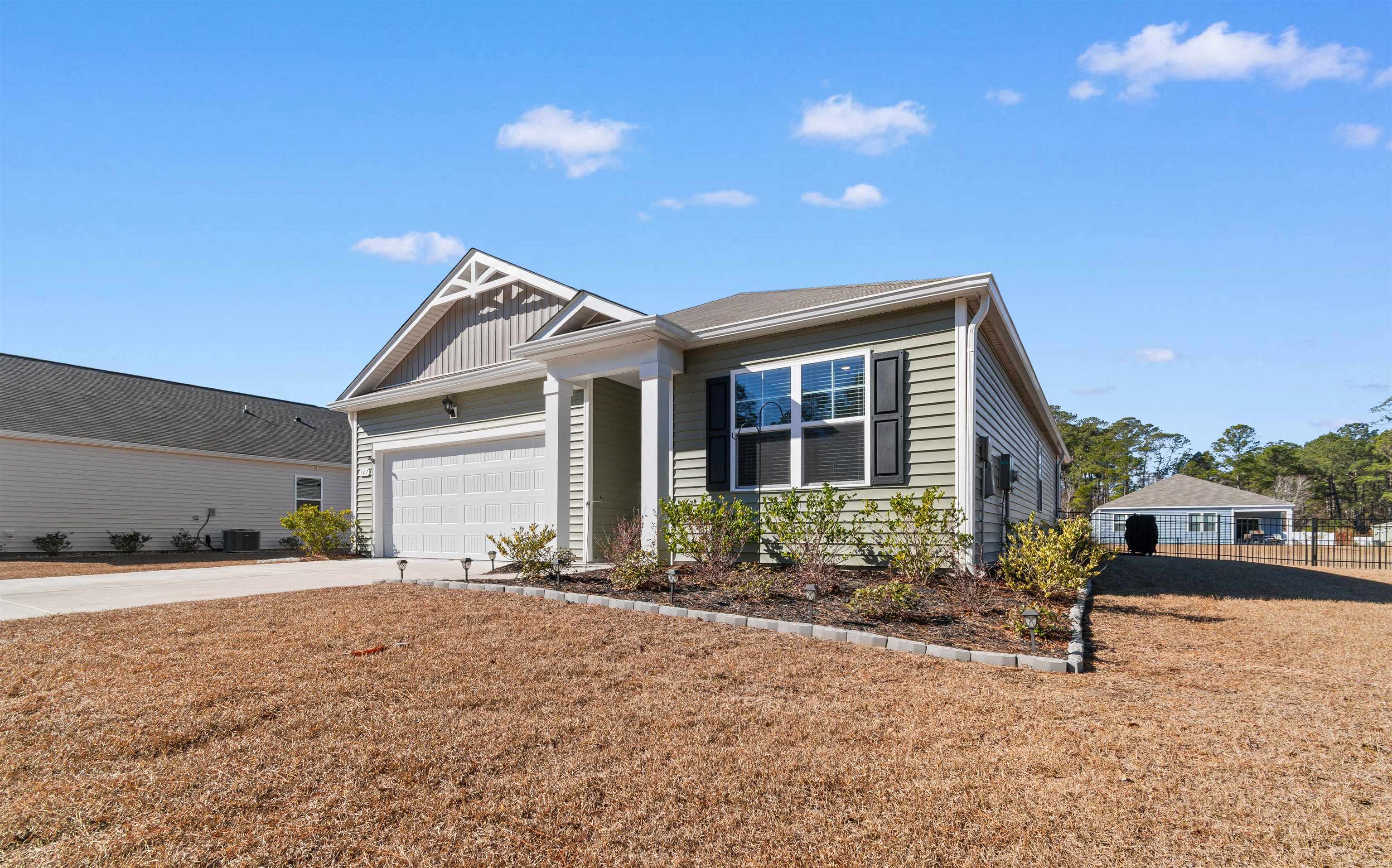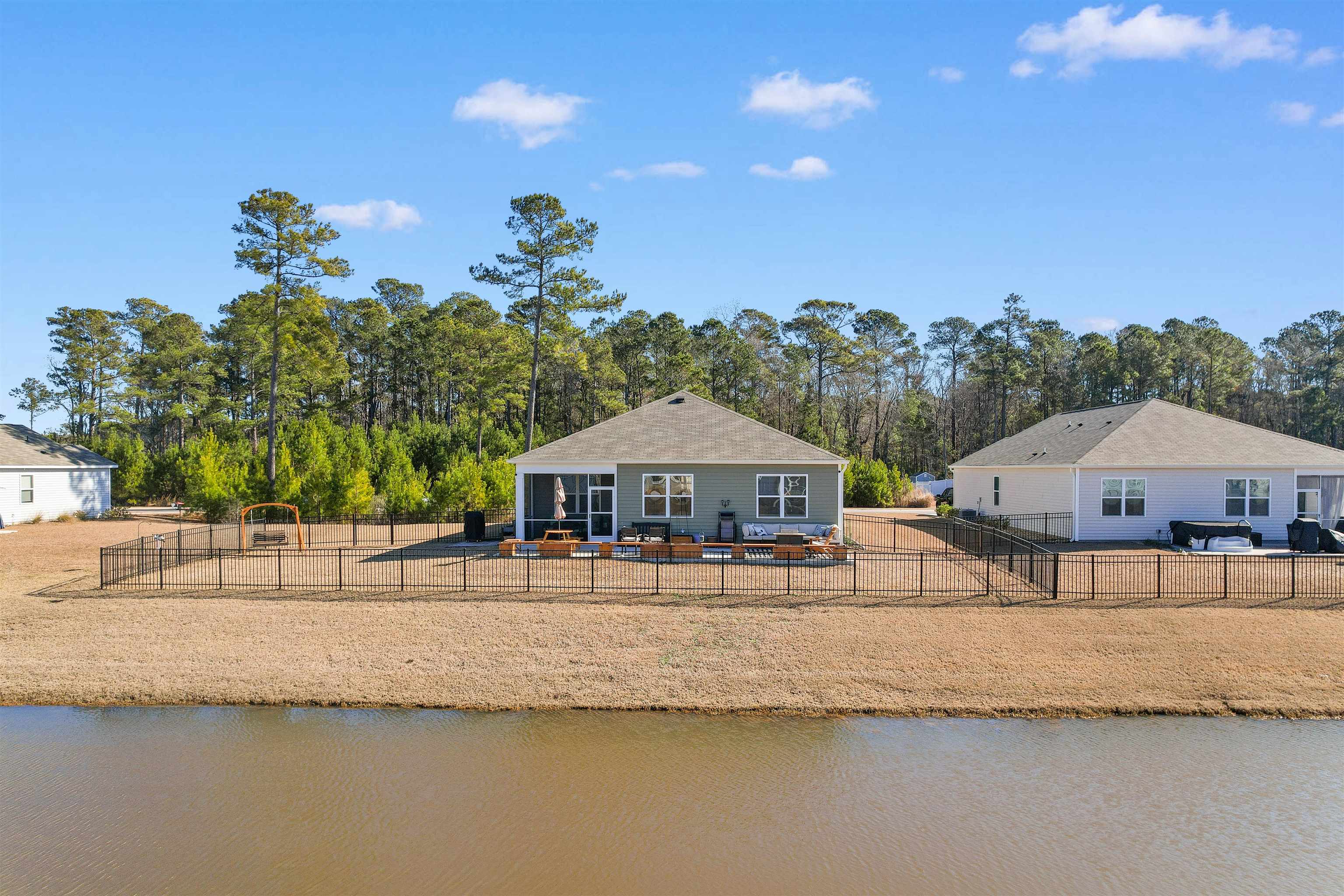 This lot in Tallwood Lakes is just awesome! Come check out this beautiful ranch home on one of the largest lots in Tallwood Lakes! Set on a spacious .26 acre lot on the water, this move-in-ready 3-bedroom, 2-bath ranch home is located off Rt 57 in desirable Longs, SC, with North Myrtle Beach schools! This home offers the owner privacy, space, and modern comfort. Step inside to an open floor plan featuring durable LVP flooring throughout the main living areas and a spacious living room ideal for entertaining or relaxing. The heart of the home is the gorgeous kitchen, complete with granite countertops, stainless steel appliances, a large center island, ample cabinetry for plenty of storage (with slider shelves), large pantry, and has an easy flow into the dining and living spaces. This home is perfect for entertaining with the open kitchen, living area and a dining area!! No one will miss a minute of the fun when guests are over. The master bedroom has an amazing view of the water, a large closet, and a huge master bath complete with dual sinks, and a walk in shower with a built in seat. Bedrooms 2 and 3 are carpeted and located at the front of the home. The bedrooms are split by the 2nd full bathroom and the laundry room is conveniently located off the entry hall close to the bedrooms. This home is the definition of outdoor living at-its-best! Enjoy the screened-in porch overlooking the water and a fully fenced backyard, plus an extra large concrete patio with seating and planters—perfect for morning coffee, grilling, or hosting friends. An added bonus: no neighbors across the street, instead a beautiful wooded view, offering extra peace and privacy. Some upgrades include the security door, the fenced yard, extended concrete patio which gives an additional 20 feet of space, the gable over garage, gutters, sliding shelves in the cabinets and the upgraded landscaping. The seller has truly thought of it all. Conveniently located in southern Longs, just across Route 57 is Little River, with easy access to Highway 57, Highway 9, and Highway 31. Enjoy being close to beaches, shopping, dining, and entertainment while still tucked away in a peaceful residential setting.