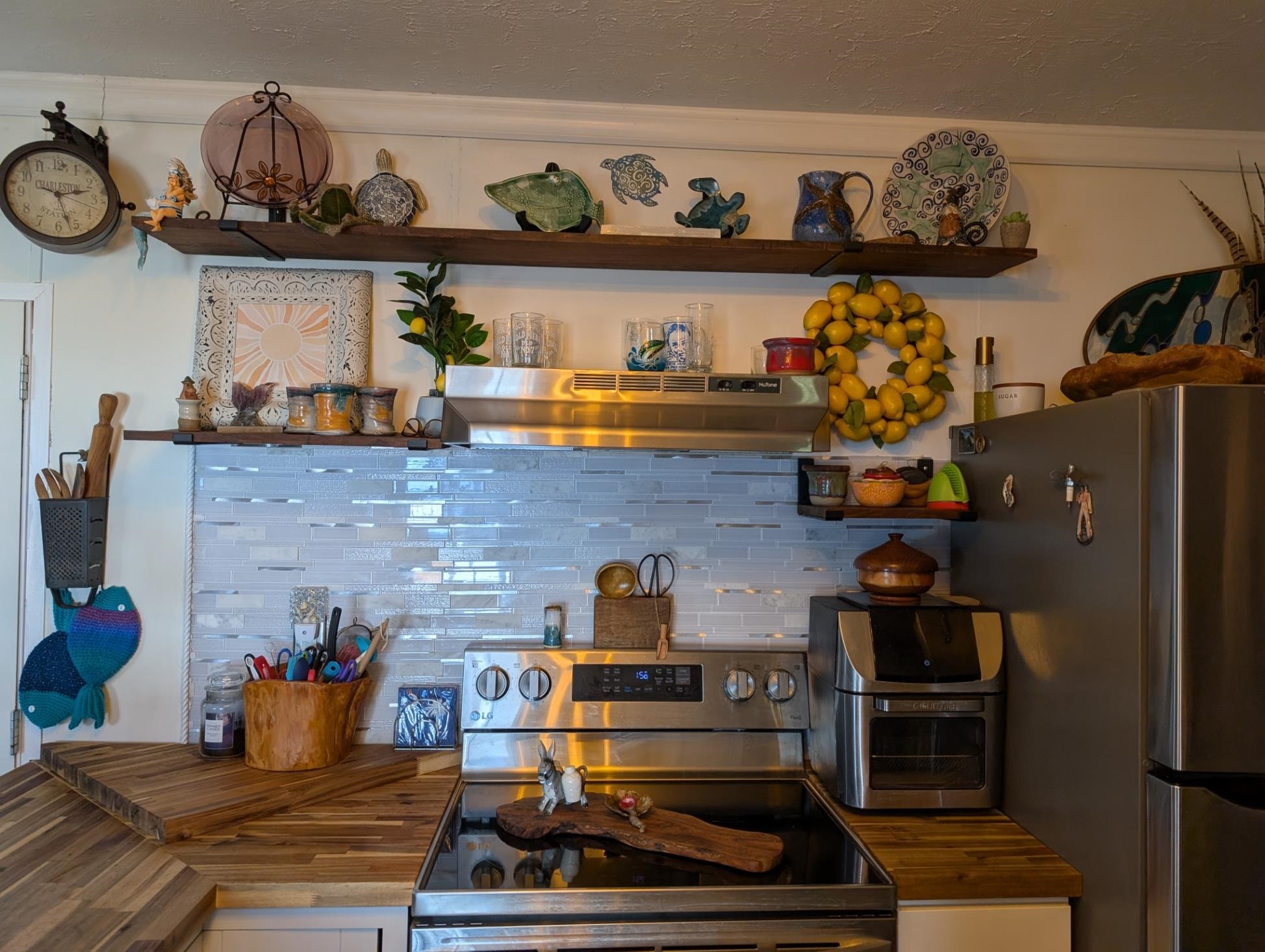 Range, Refrigerator, Ceiling Fan, Stainless Steel Apps.