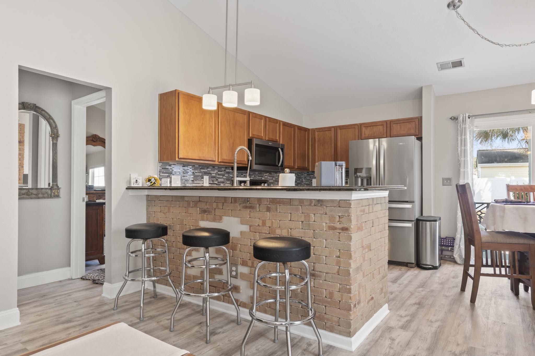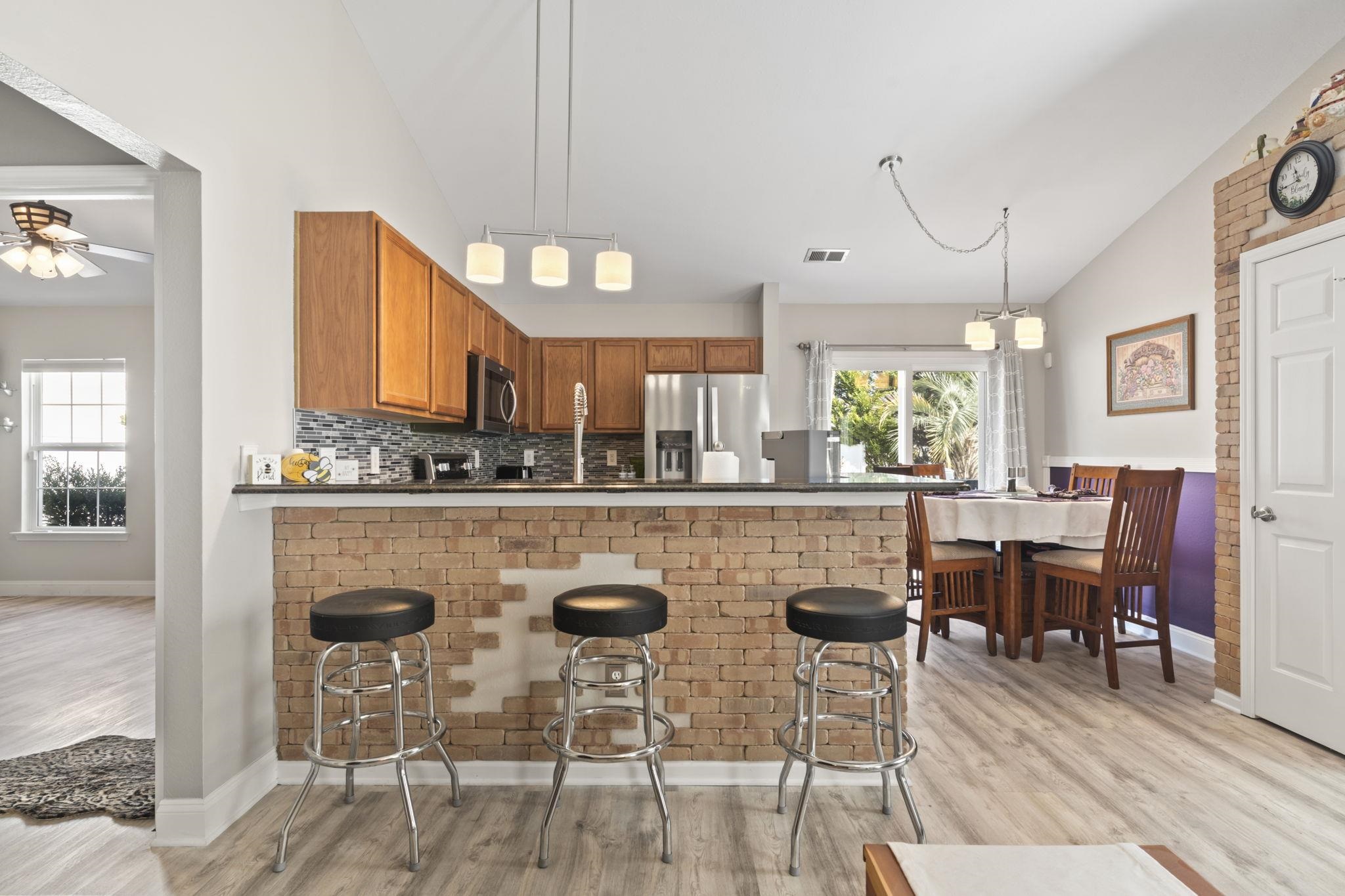 Range, Dishwasher, Garbage Disposal, Refrigerator, Microwave, Breakfast Bar, Pantry, Double Oven, Stainless Steel Apps., Solid Surface Countertops