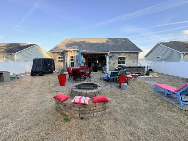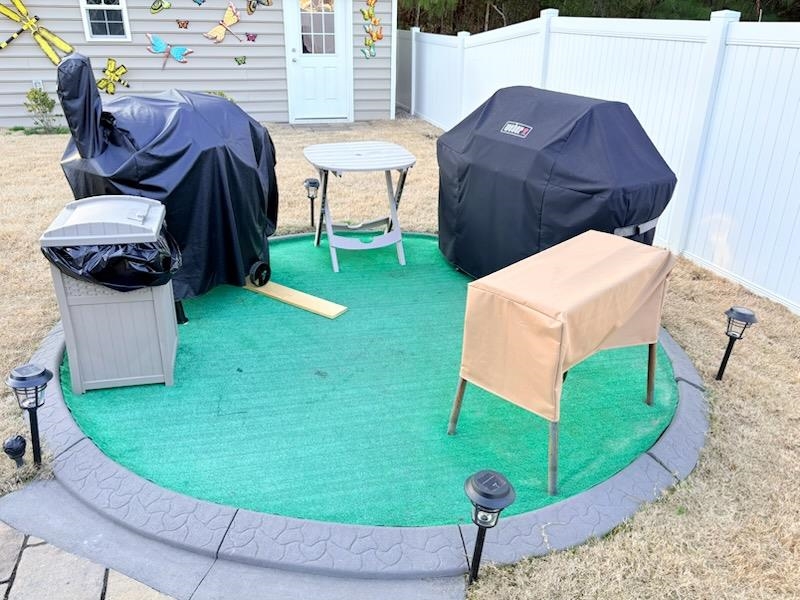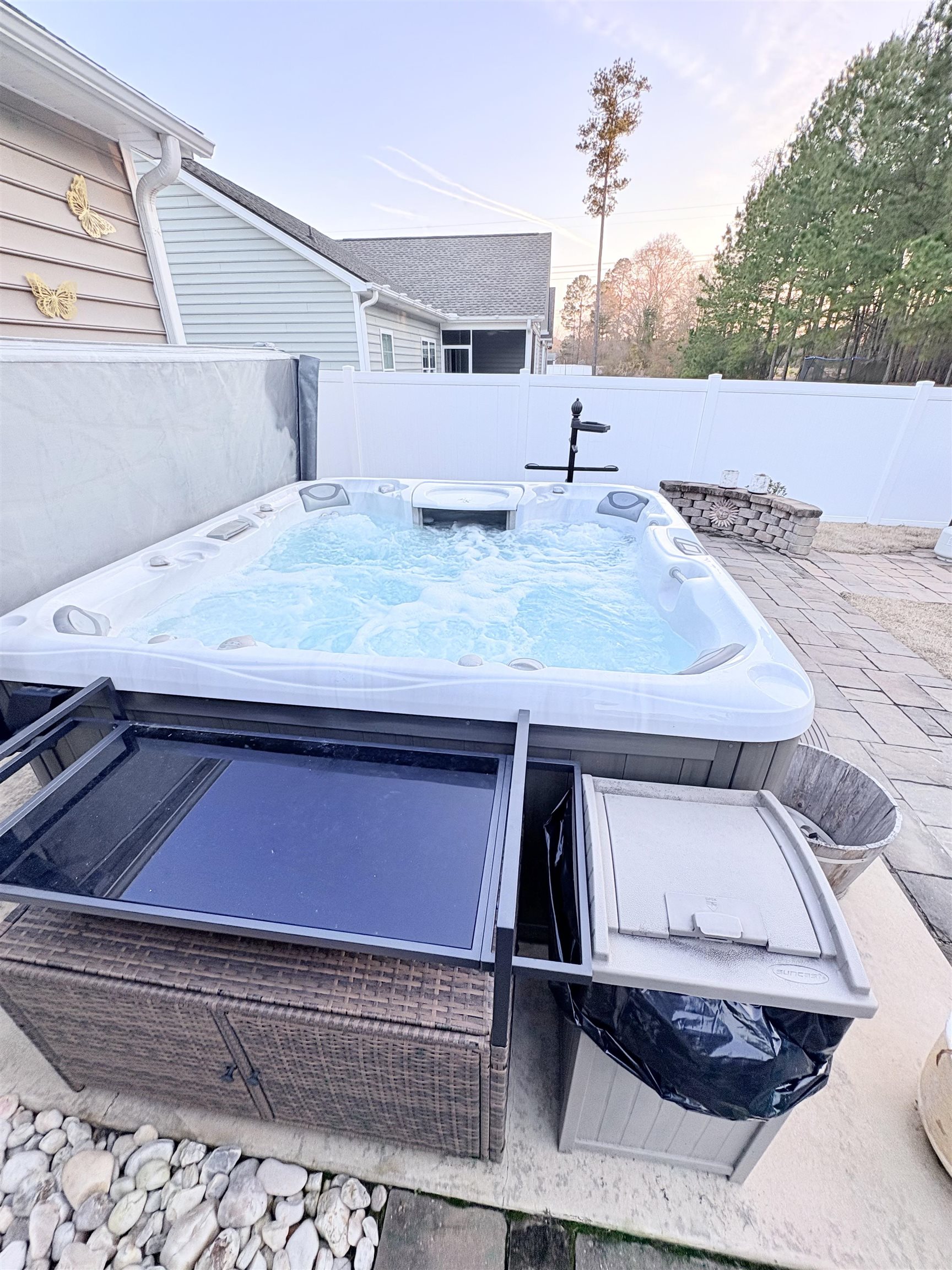 Patio, Front Porch, Rear Porch, Fencing, Spa/Hot Tub, Outside Storage Detached, Built-in BBQ