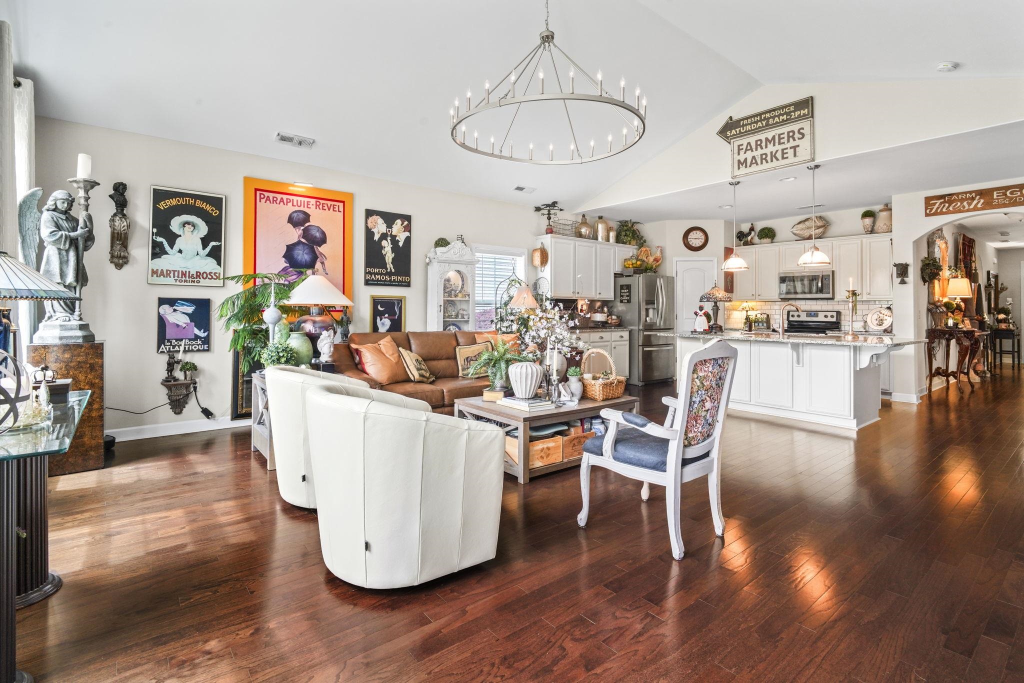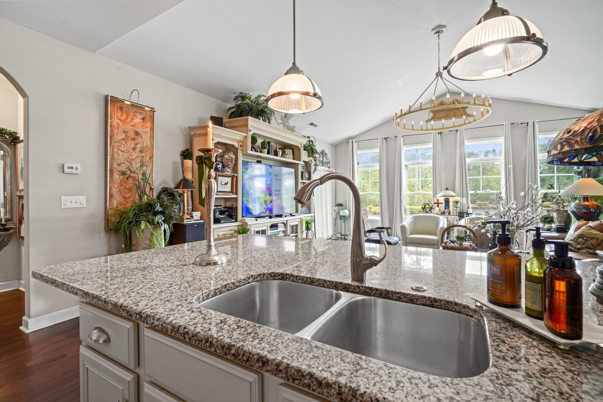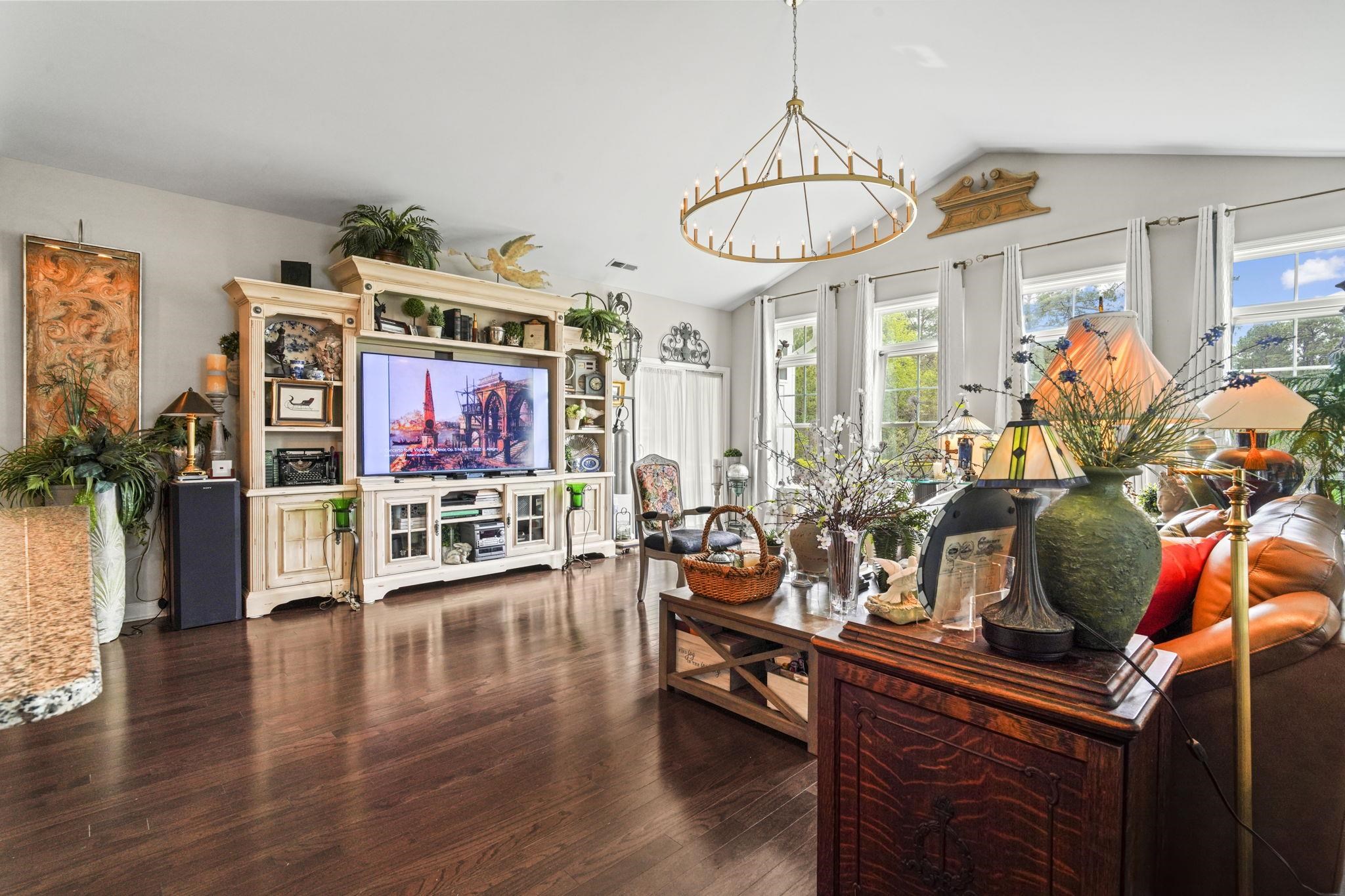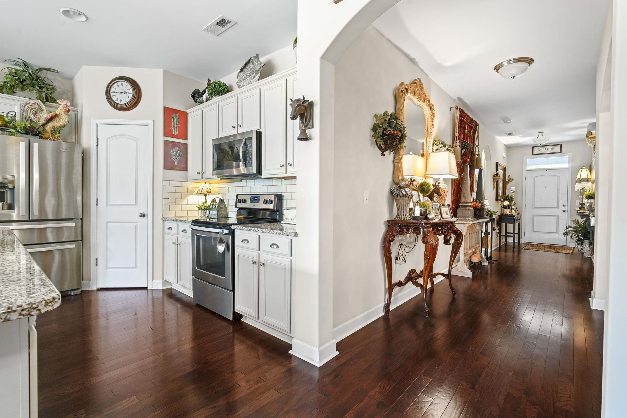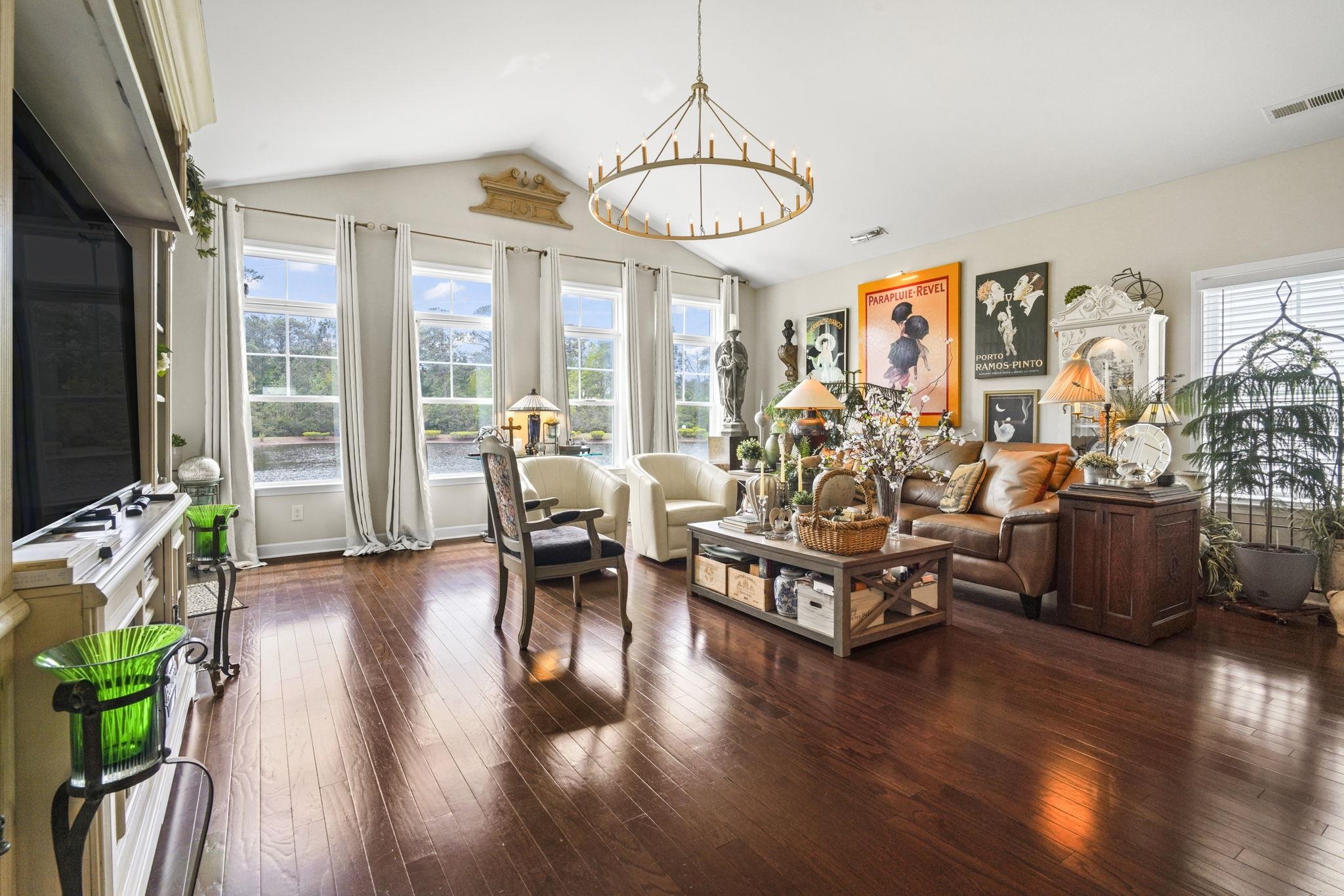 Designed by an interior designer, this stunning 3-bedroom, 2-bath single-story home is located in the exclusive Brookberry section of The Farm—an intimate enclave of just 55 homes built by RS Parker, known for its close-knit community feel. From the moment you arrive, the attention to detail is evident with lush landscaping, an irrigation system, and a beautifully tiled front entry. Inside, the foyer welcomes you with real hardwood flooring in a factory white oak French finish, setting the tone for the elevated design throughout. The home features a formal dining room with two statement chandeliers, a spacious laundry room, and a two-car garage. The main living area is filled with natural light from four tall windows showcasing serene pond and preserve views, complemented by vaulted ceilings and a striking bronze hanging light fixture. The kitchen is thoughtfully upgraded with the largest granite countertop offered by the builder, stainless steel appliances, updated fixtures and lighting, and an air purification system. The primary suite offers peaceful water views with additional windows creating a panoramic feel, along with a tiled step-in shower featuring safety handrails. Enjoy quiet mornings or relaxing evenings on the screened porch with a knee wall, overlooking a private backyard and natural surroundings. This one-of-a-kind home also offers access to community amenities including two pools, a playground, fitness room, and basketball court. Conveniently located just minutes from Tanger Outlets, dining, medical facilities, and everyday essentials—and only a short drive to the beach.