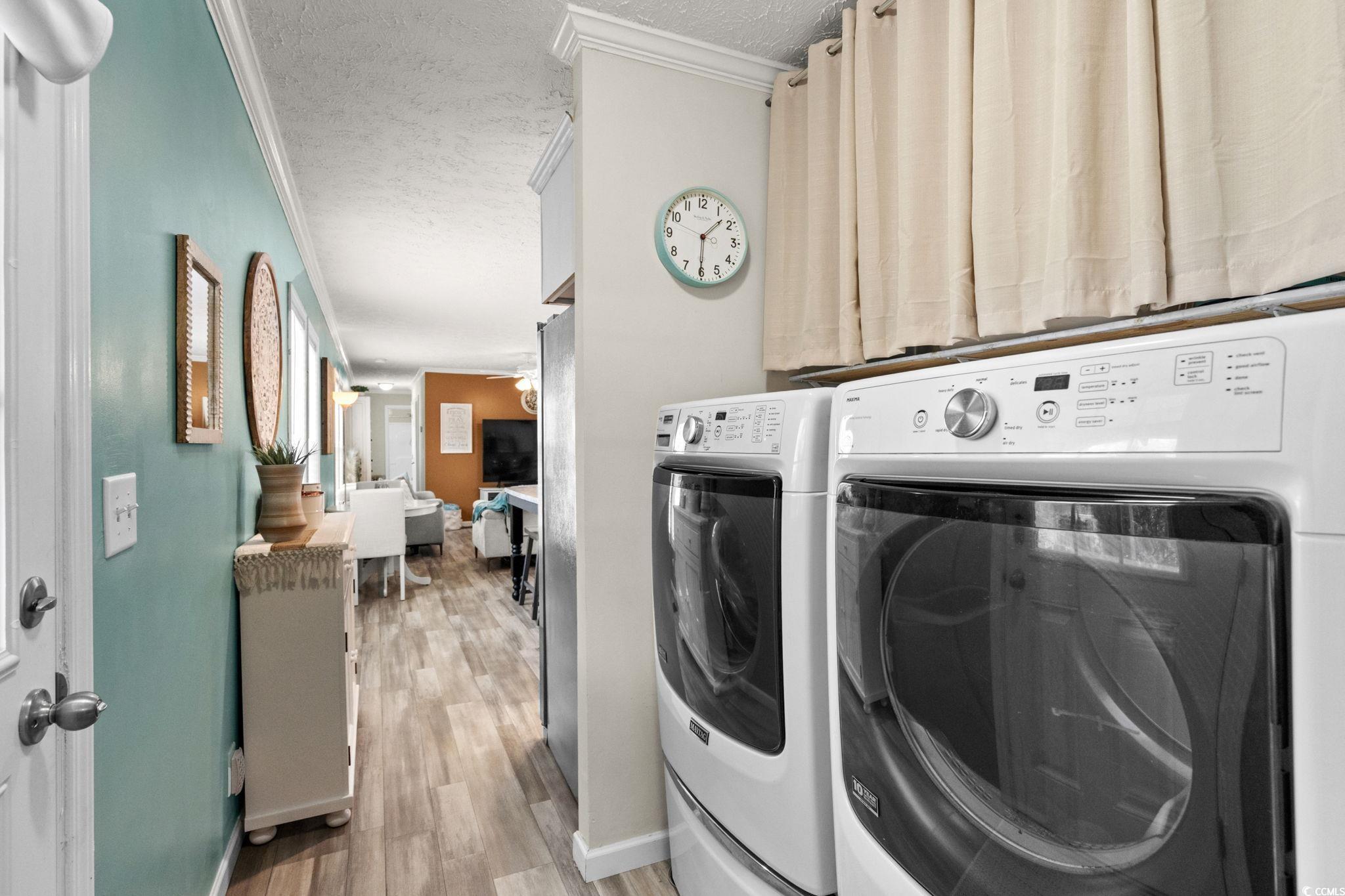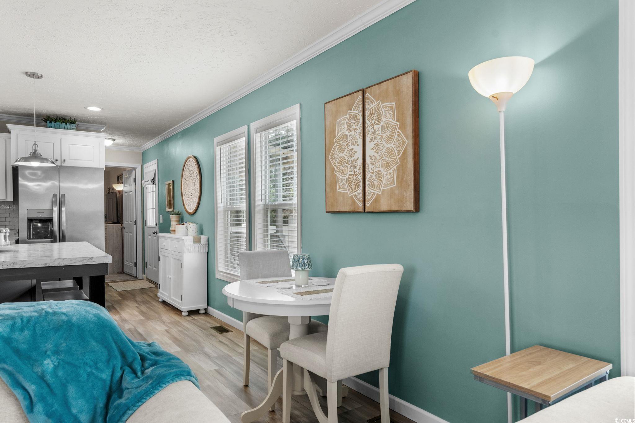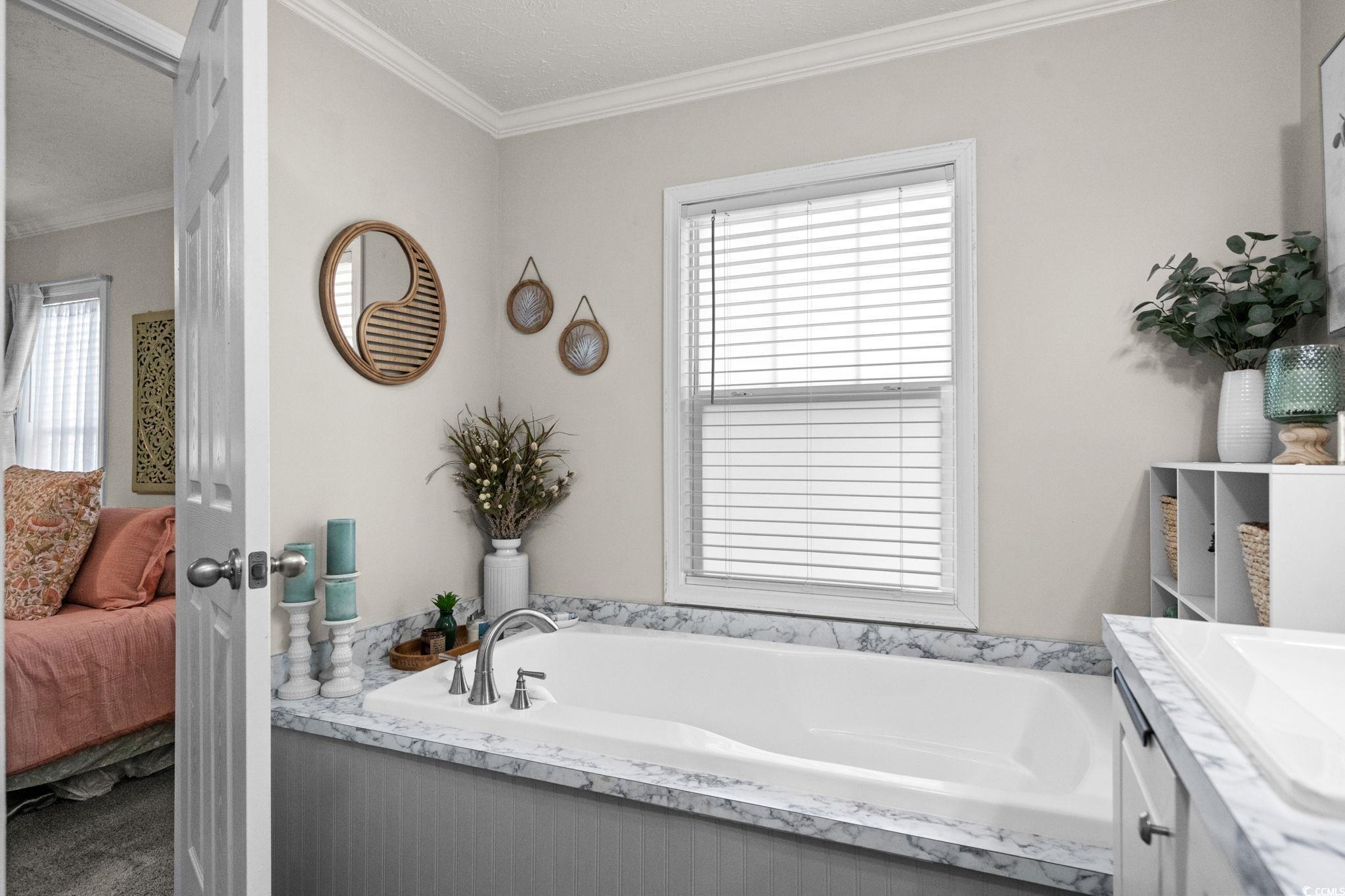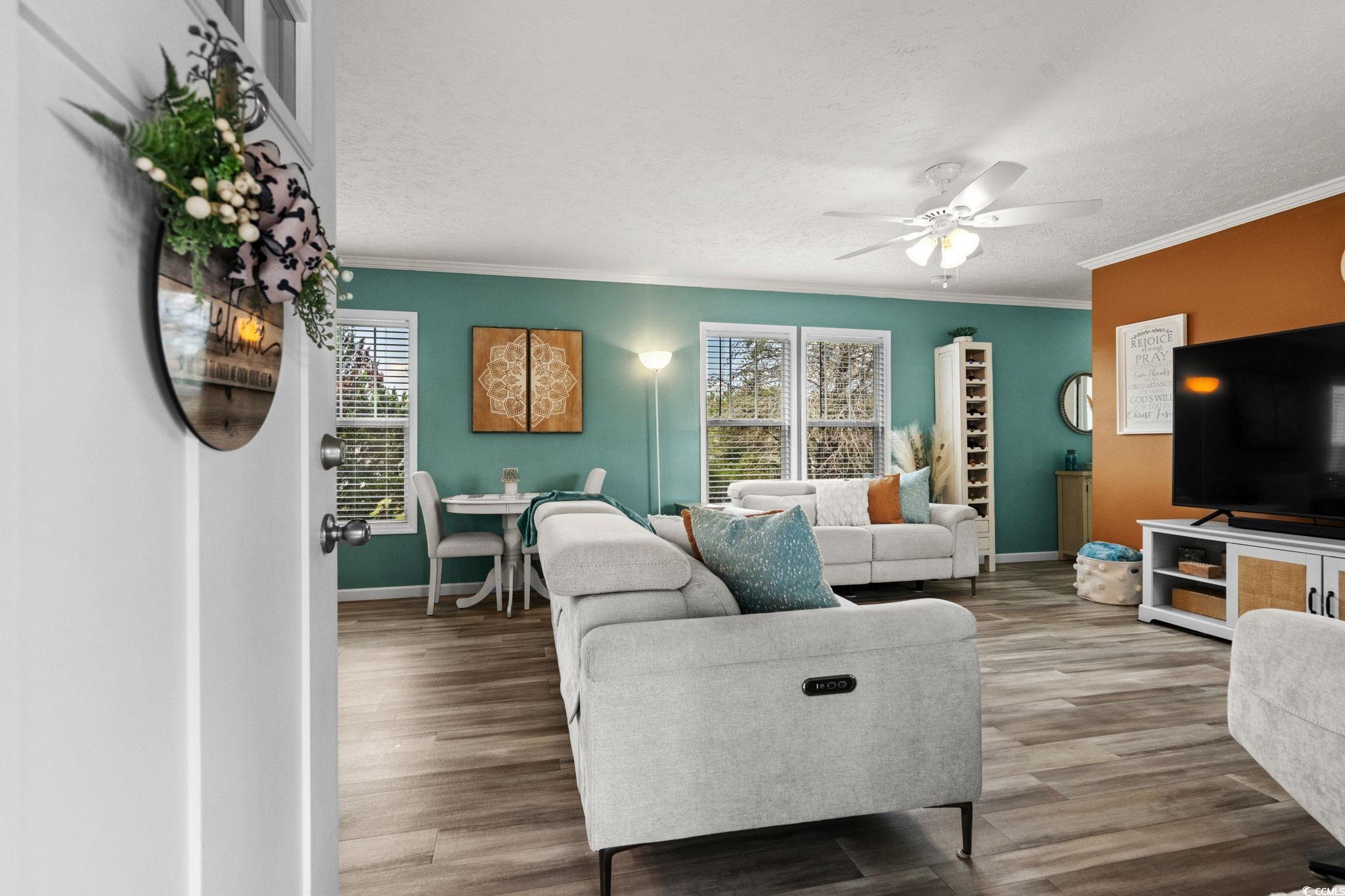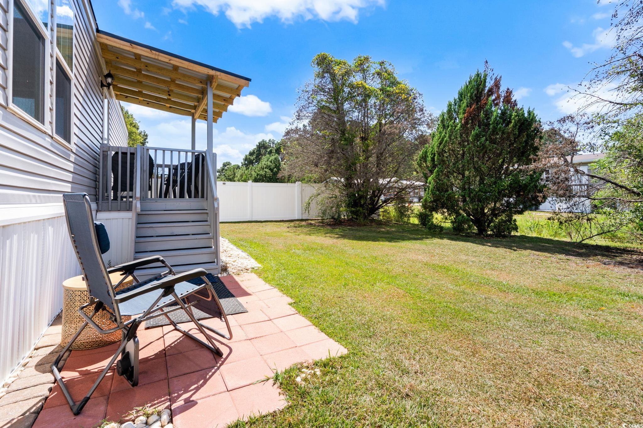 Welcome to Carolina Tides — formerly known as Conway Plantation, this vibrant land-lease manufactured home community is located in the heart of Conway, South Carolina. Built in 2023 by Clayton Homes, this custom single-wide manufactured home still feels brand new and includes a five-year extended warranty (transferable for a minimal fee). Inside, you’ll find three bedrooms, two bathrooms, crown moulding throughout, and an open-concept design that’s as functional as it is inviting. The kitchen is a true highlight with stainless steel appliances, a custom 9.5-inch deep single-basin chef’s sink, stylish backsplash, and durable Formica countertops. Luxury vinyl flooring runs through the main living areas, while plush carpet adds comfort in the bedrooms. The primary suite is a spacious retreat, offering two custom walk-in closets and an oversized bathroom with a soaking tub. This home is immaculate—bright, welcoming, and showing like a model. Step outside to enjoy front and back porches, a fenced yard, and two storage sheds. A Maytag washer and dryer may convey, making this home truly move-in ready. Additional features include drywall throughout, energy-efficient windows, and durable exterior vinyl siding. Carolina Tides offers more than just a home—it’s a lifestyle. Residents enjoy community amenities such as a swimming pool, clubhouse, basketball court, and playground, all within a friendly, active neighborhood setting. Conveniently located just minutes from top-rated schools, Conway Medical Center, shopping, dining, and entertainment—and only six minutes from Coastal Carolina University—this home puts everything you need within easy reach. Perfect as a primary residence or second home, with the beach just a short ride away. Schedule your showing today and take advantage of the Holiday Special on the Lot Rent!