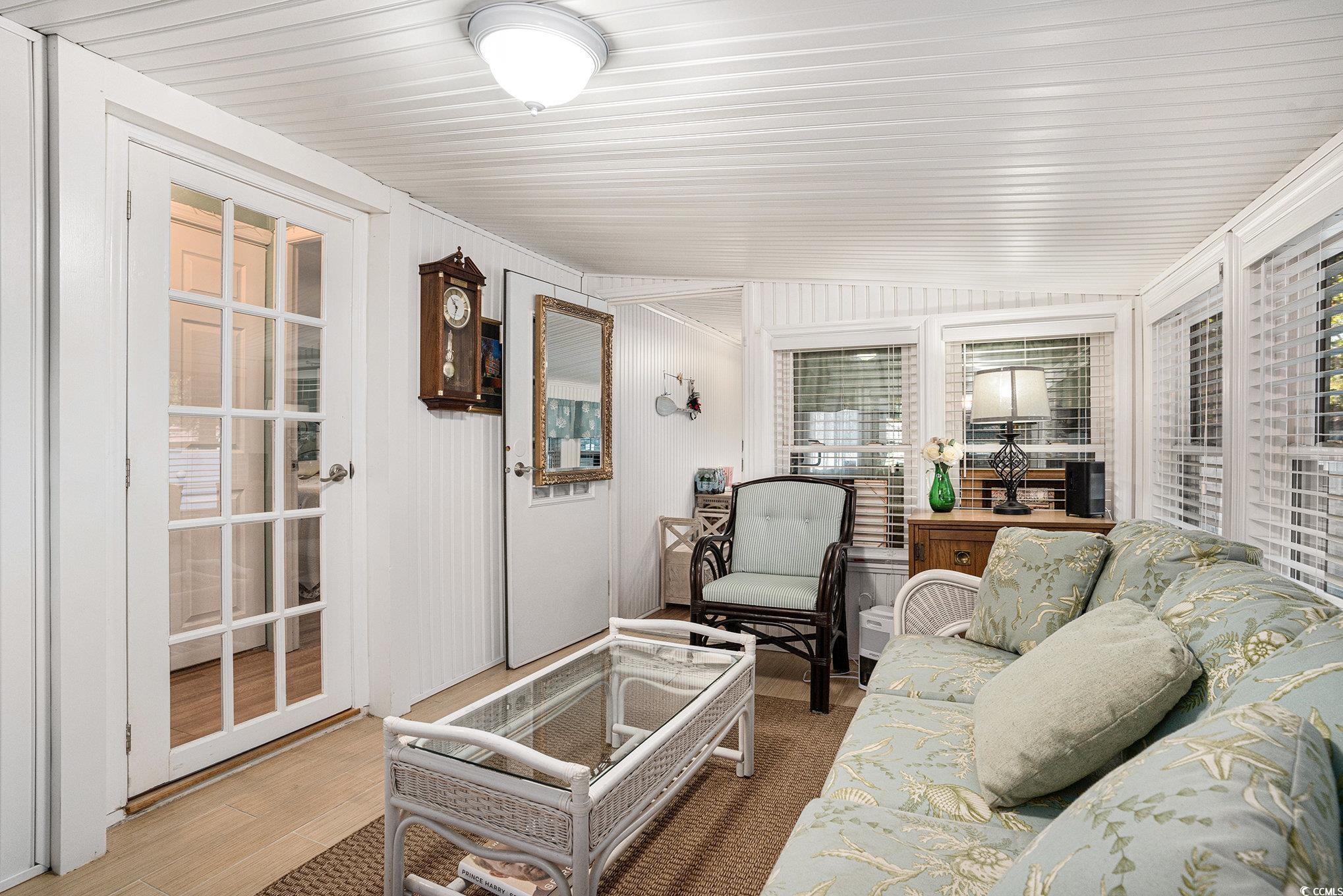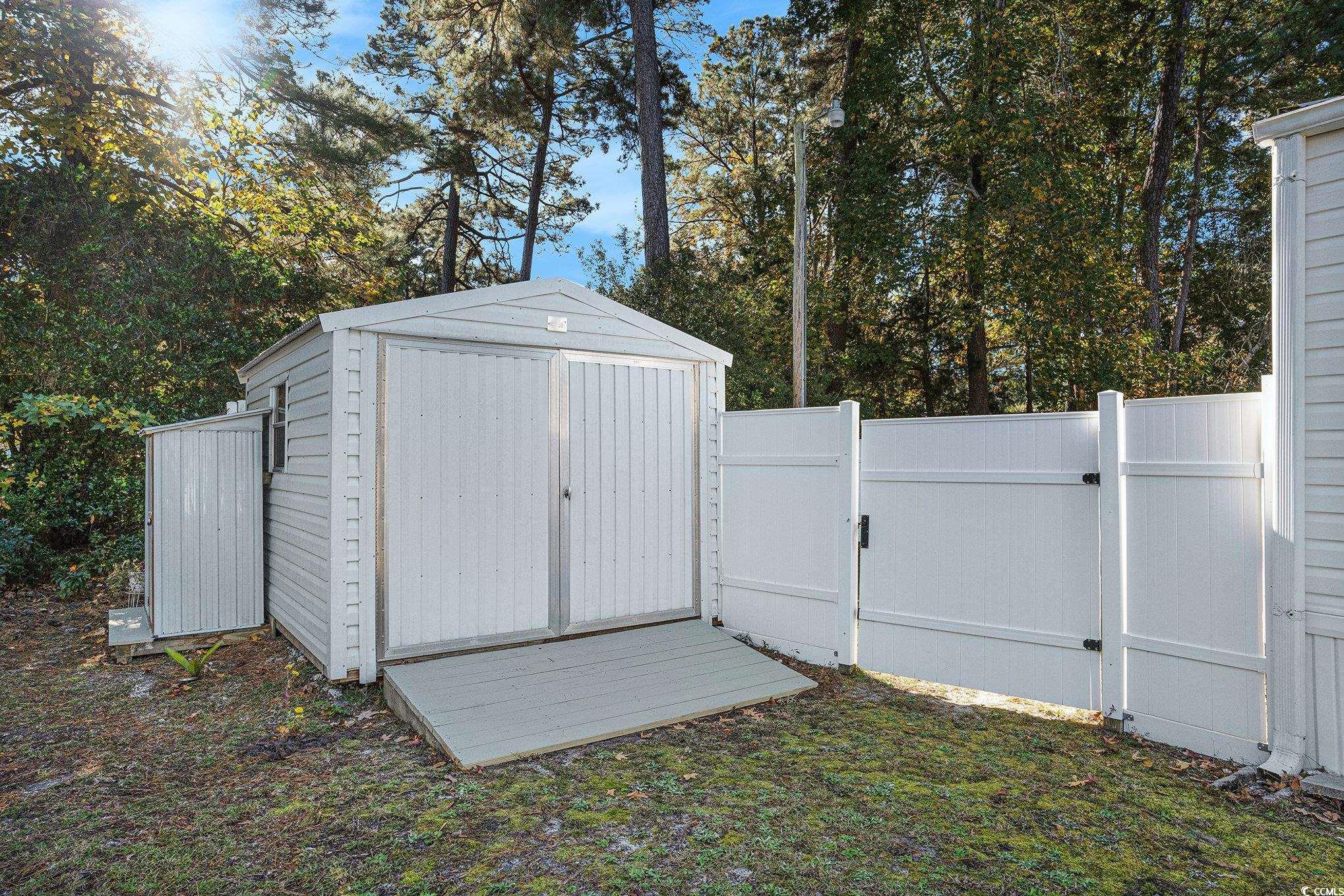 Beautiful 3-bedroom, 2 bath home nestled in the wonderful community of Windjammer Village in Garden City! This expansive home offers a split floor plan, ceiling fans throughout, large owner's suite with ensuite, walk in closet, covered front porch, sunroom, 3rd bedroom can also double as an office, detached storage w/electric shed, fenced in backyard, outdoor shower, NEW garage w/electric and extended driveway. Windjammer Village offers a pool and a clubhouse. Conveniently located near shopping, dining, championship golf courses, medical facilities and CLOSE TO THE BEACH! Perfect for your second home or primary residence.
