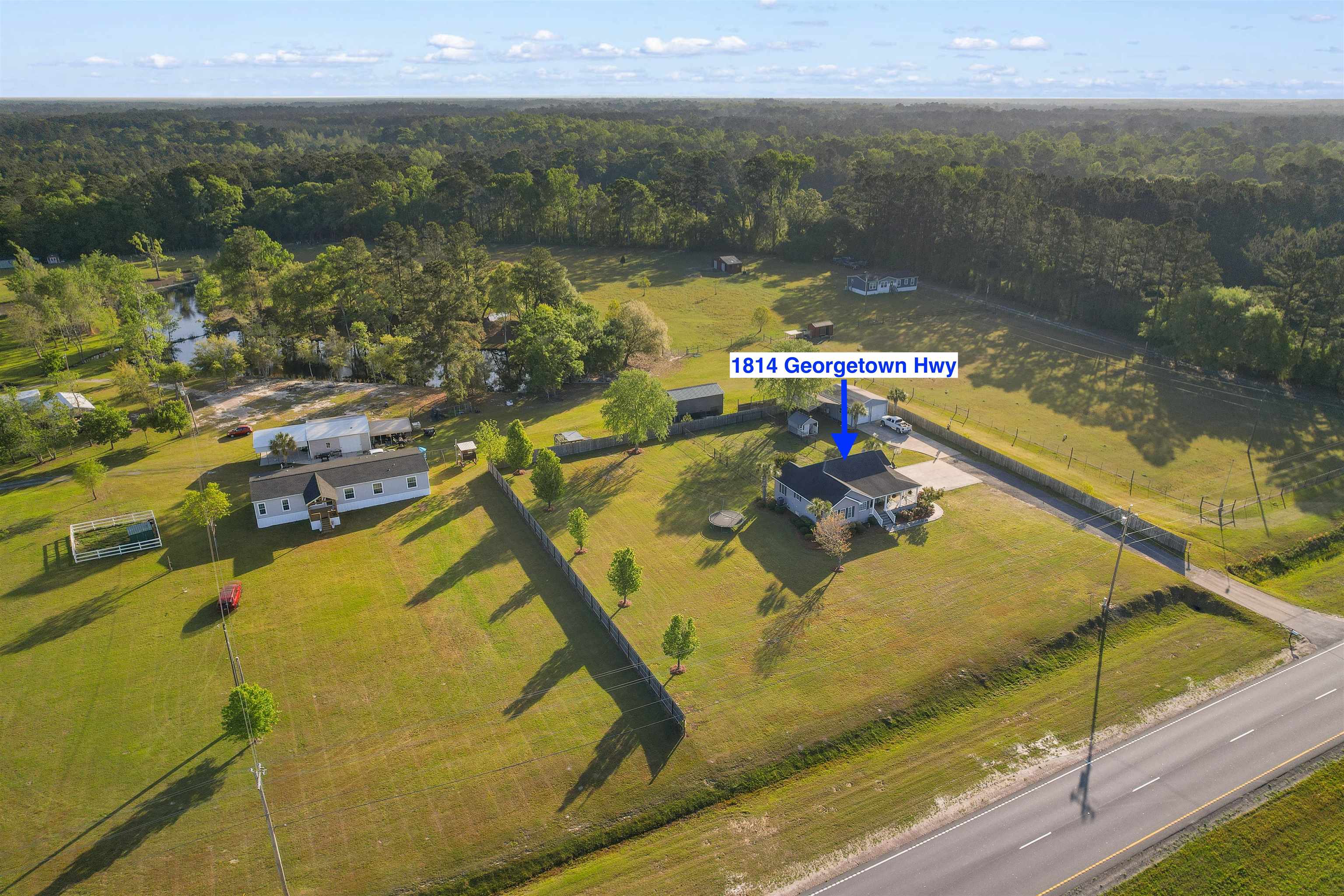 Welcome to this well-maintained 3-bedroom, 2-bath home situated on a 1-acre lot along Georgetown Highway in Georgetown, SC. Offering a comfortable and functional layout, this home features a dedicated dining room and a spacious kitchen complete with wood cabinetry and stainless steel appliances—perfect for everyday living and entertaining. Down the hall is primary suite that offers a private retreat with an ensuite bathroom featuring dual sinks, a separate shower, and a relaxing soaking tub. The remaining bedrooms are quite spacious and share a generously sized hall bathroom. This home offers many recent upgrades including fresh interior paint and modern lighting, giving the home a clean, updated feel throughout. Outside, you’ll find a 24x30 insulated metal building equipped with a mini-split system—ideal for a workshop, hobby space, home gym, or additional storage. Approximately 15 minutes to Georgetown, 10 minutes to Andrews and an hour to Myrtle Beach—enjoy the freedom of country-style living with convenient access to nearby amenities. This home is move-in ready and ready for its new owners today!