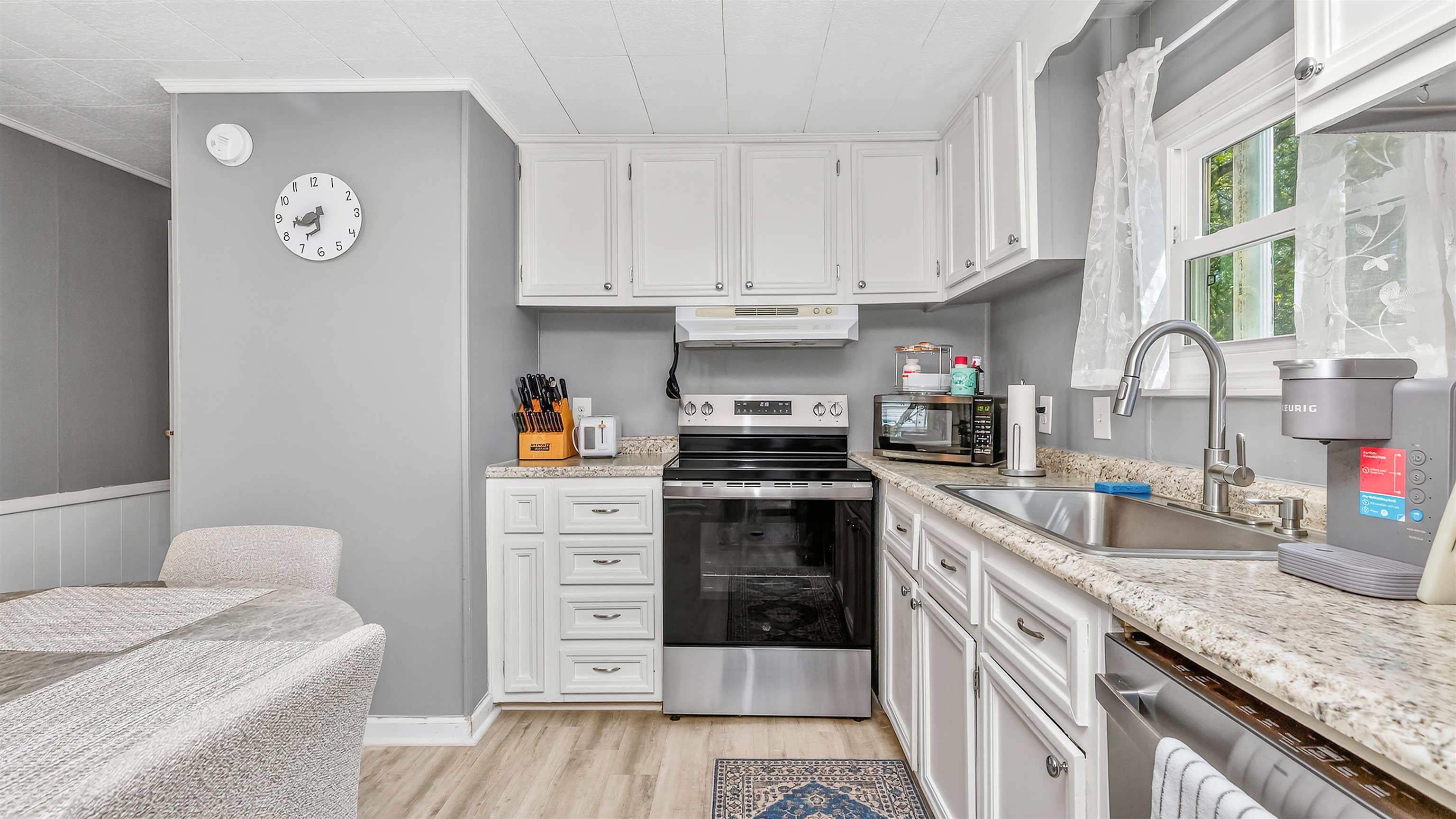 Range, Dishwasher, Refrigerator, Microwave, Breakfast Bar, Freezer, Range Hood, Stainless Steel Apps.