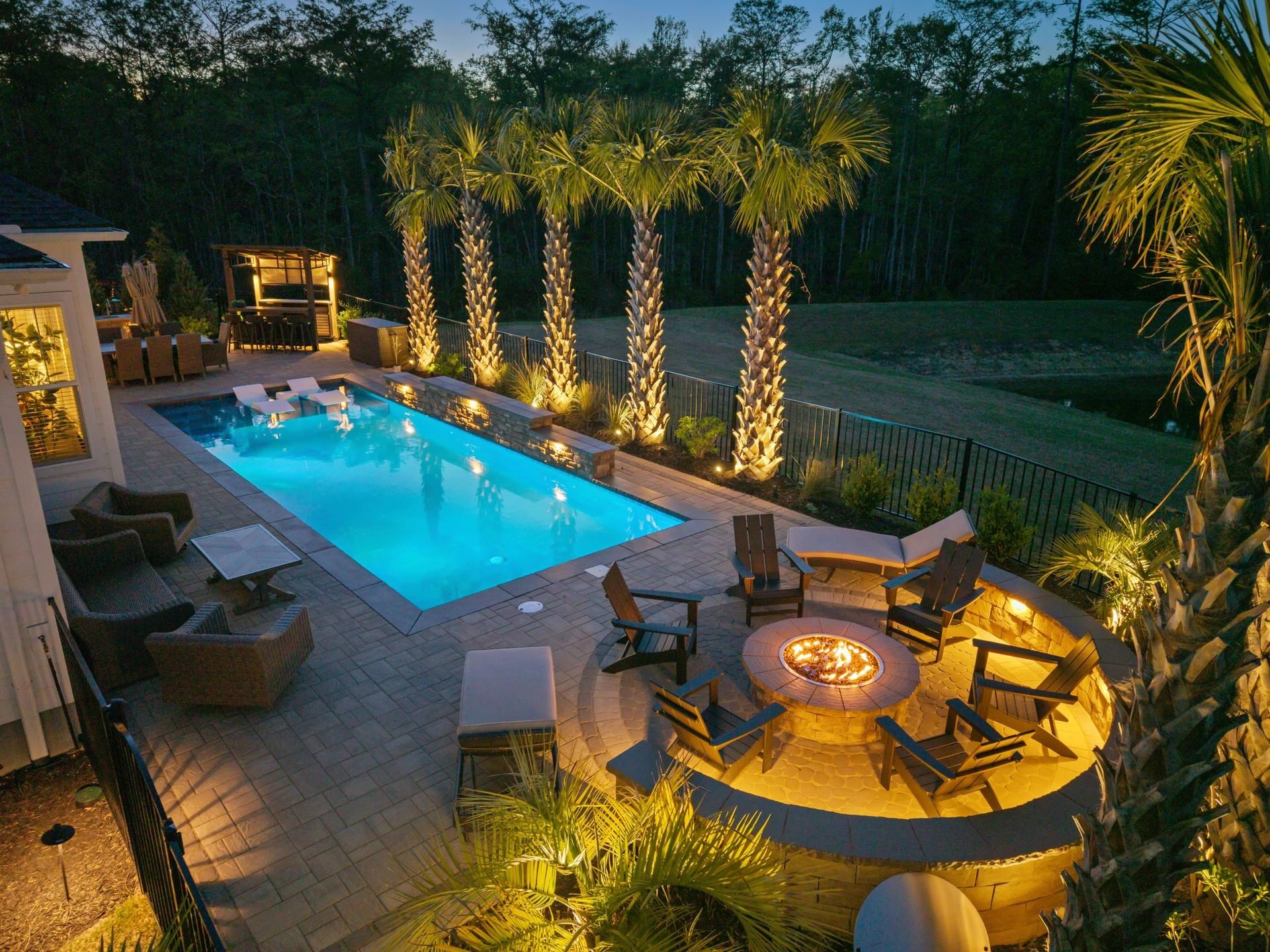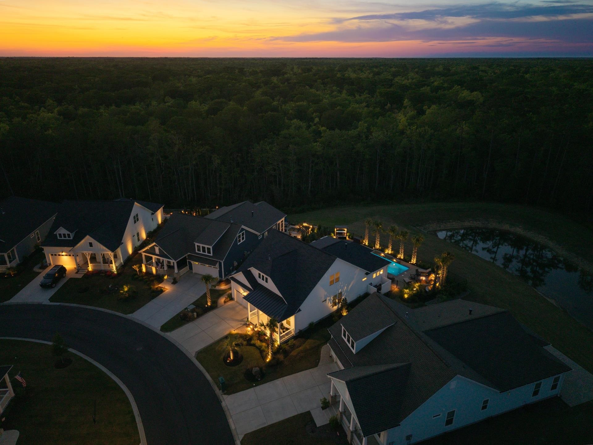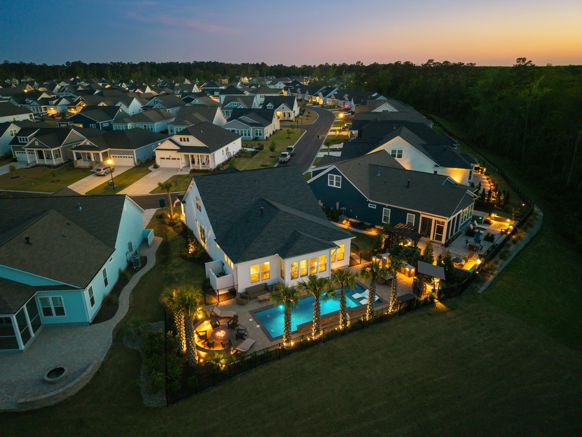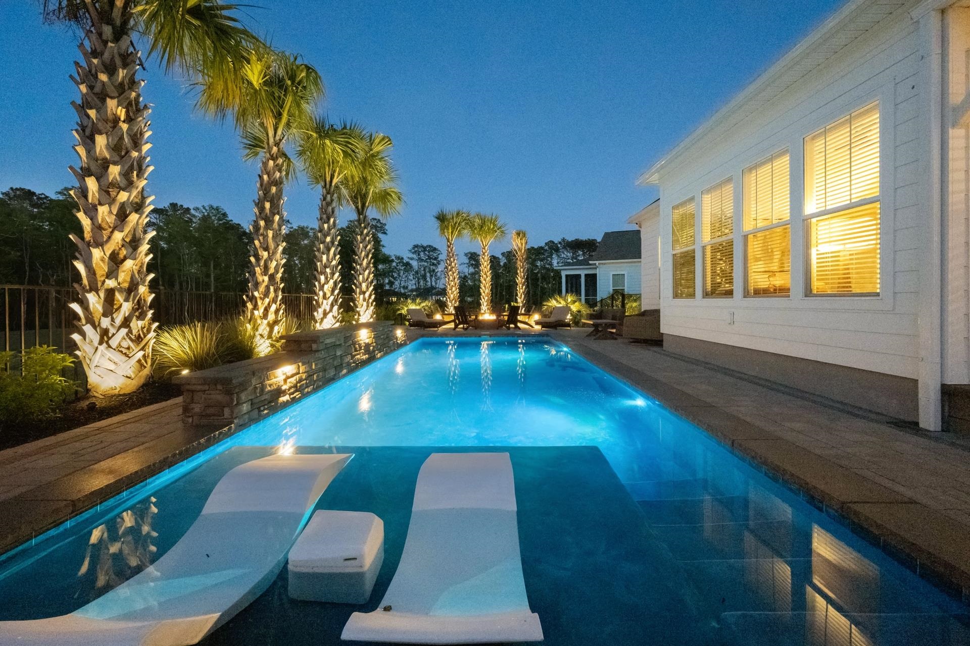 Welcome to 6436 Berg St in the beautiful Prince Creek West neighborhood of Longwood Bluffs. This exceptional, move-in ready home has every feature and upgrade you have wished for. Situated on a premium homesite overlooking a pond and forest, the backyard oasis will capture your heart and calm your emotions with every visit. How many homes have a backyard with a long, gunite saltwater pool with waterfall returns that can be heated or cooled, a full outdoor kitchen with gas grill, pizza oven, burner, fridge, sink, storage drawers, and a gas firepit area with knee wall surround not to mention beautiful pavers underfoot? And that is only just the beginning. Step inside to see soaring ten foot ceilings and hard wood flooring throughout the living areas and bedrooms. The open concept family room with tray ceiling and gas fireplace is open to the chef's kitchen with an over-sized island made better with quartz countertops and state of the art Kitchen Aid, stainless steel appliances. Soft close custom cabinets are not only in the main kitchen but also in the dry bar adjacent to the kitchen. Lots of kitchen storage in the full sized pantry just off the Butler's pantry that can also be used as a coffee bar. A breakfast table area provides gorgeous light filled views of the backyard area and there is even a separate full-sized formal dining room for all your evenings entertaining friends and family. A separate laundry room with LG Thniq washer and dryer has cabinets over head and a ceiling fan for keeping cool while you work. The large primary bedroom is a calm sanctuary with views of the backyard. The ensuite bath features a double vanity and custom tile on the vanity wall, an over sized step-in shower with both a regular and rain shower head for your personal preference. Beyond the bathroom is a custom walk-in closet with extensive shelving, drawers and hanging areas for your wardrobe. You have to see it to appreciate it. A second downstairs bedroom is also generously sized and has its own ensuite bathroom with custom tile work. Walk upstairs to see the large bonus room that can be used for watching TV, playing games, hanging out with friends or working on your next painting. A full bathroom and third bedroom complete the upstairs space that also includes several closets for extra storage. Back downstairs, walk through the kitchen, past the Butler's pantry into the 2 1/2 car garage. The extra space is perfect for a golf cart or work station. Plenty of shelving in the garage for storage bins as well as a work sink and epoxy flooring. Beautiful landscaping and outside lighting complete this amazing home that will provide for your every need. There is even a lovely front porch to enjoy your morning coffee or afternoon visiting with friends and neighbors. Longwood Bluffs has access to the Prince Creek West park with swimming pools, pickleball and tennis courts, walking trails and a covered picnic area with fireplace. Plenty of shopping close by as well as medical facilities and restaurants along the Murrells Inlet Marsh Walk. Take a 10 minute drive to Huntington Beach State Park for a relaxing day at the beach or viewing our native, local wildlife. Award winning schools, art galleries, golf courses, boat ramps for deep water or creek fishing, make this a great place to live, work or play. Myrtle Beach is 20 minutes north while Charleston is 70 miles south. Come tour 6436 Berg St, Murrells Inlet and begin living your coastal dream life along the South Carolina Coast today.