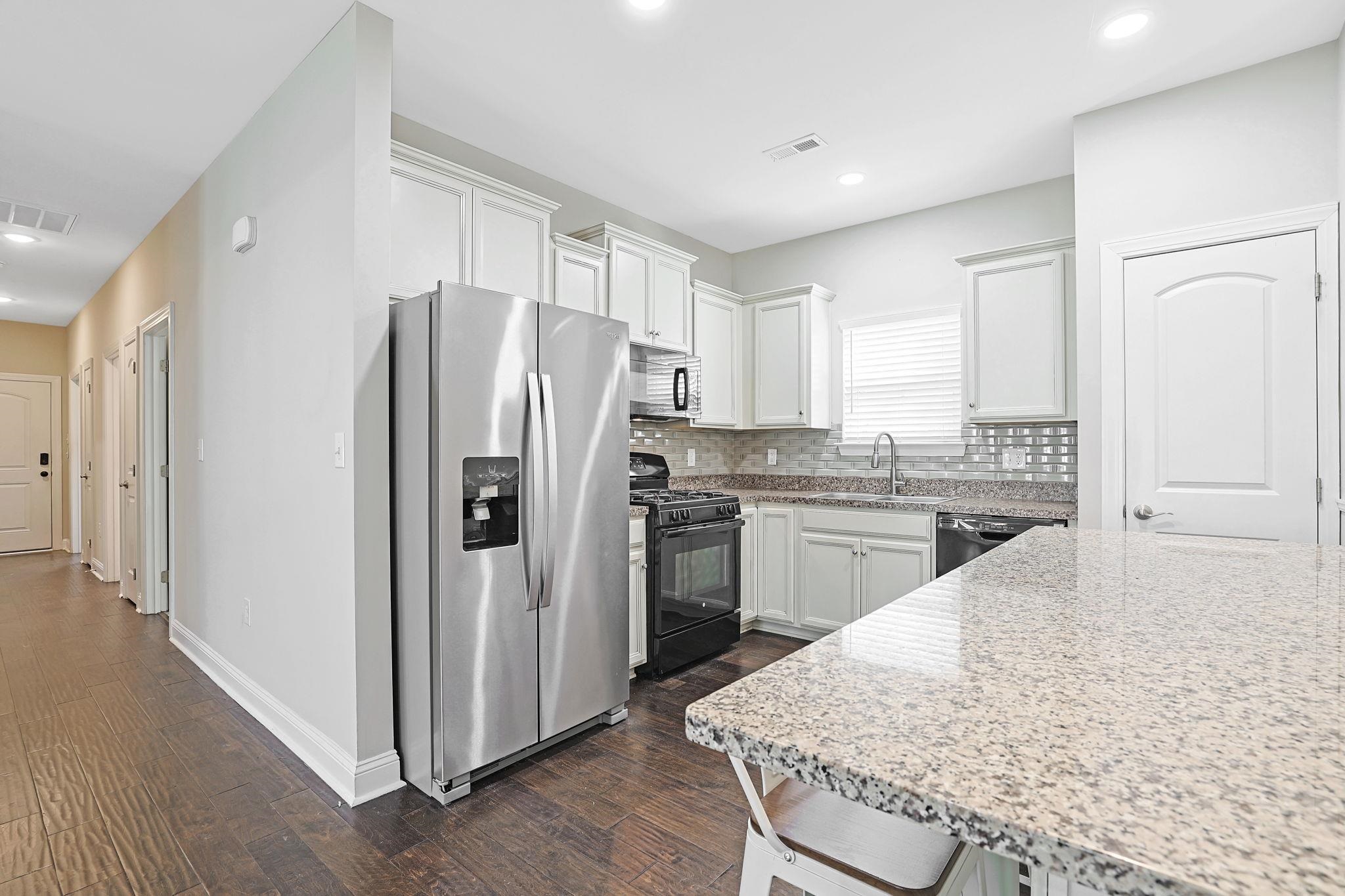Range, Dishwasher, Refrigerator, Microwave, Breakfast Bar, Pantry, Solid Surface Countertops