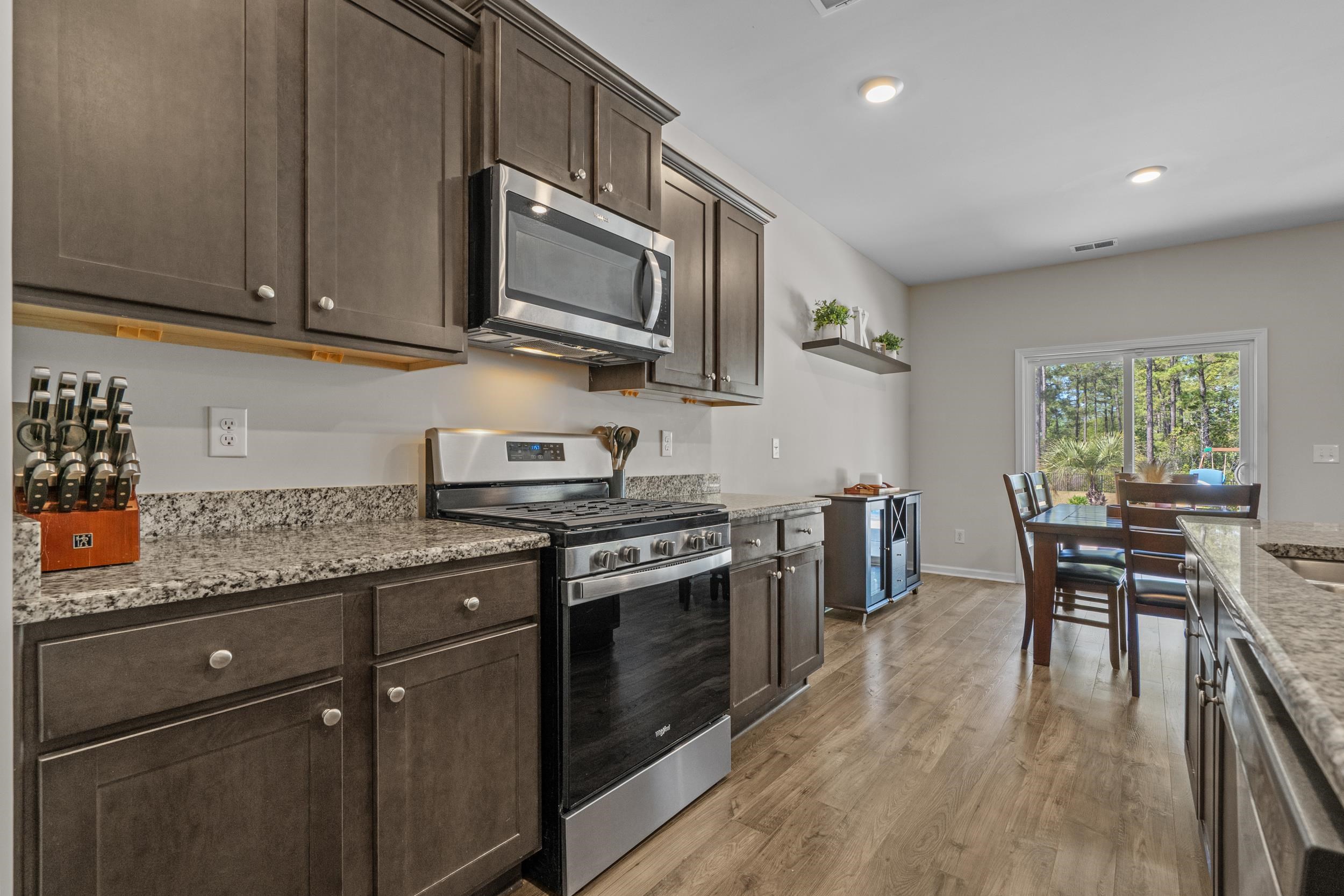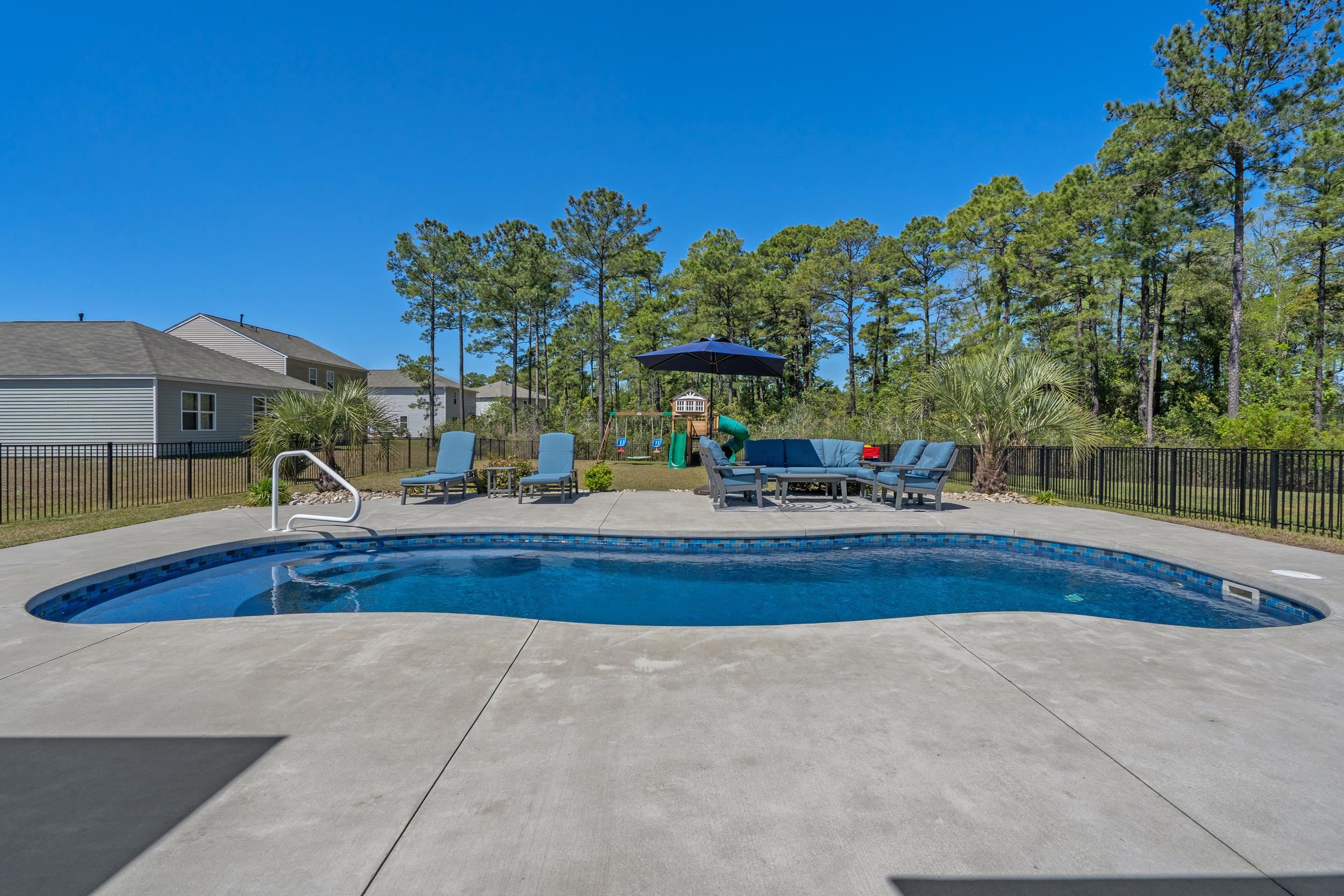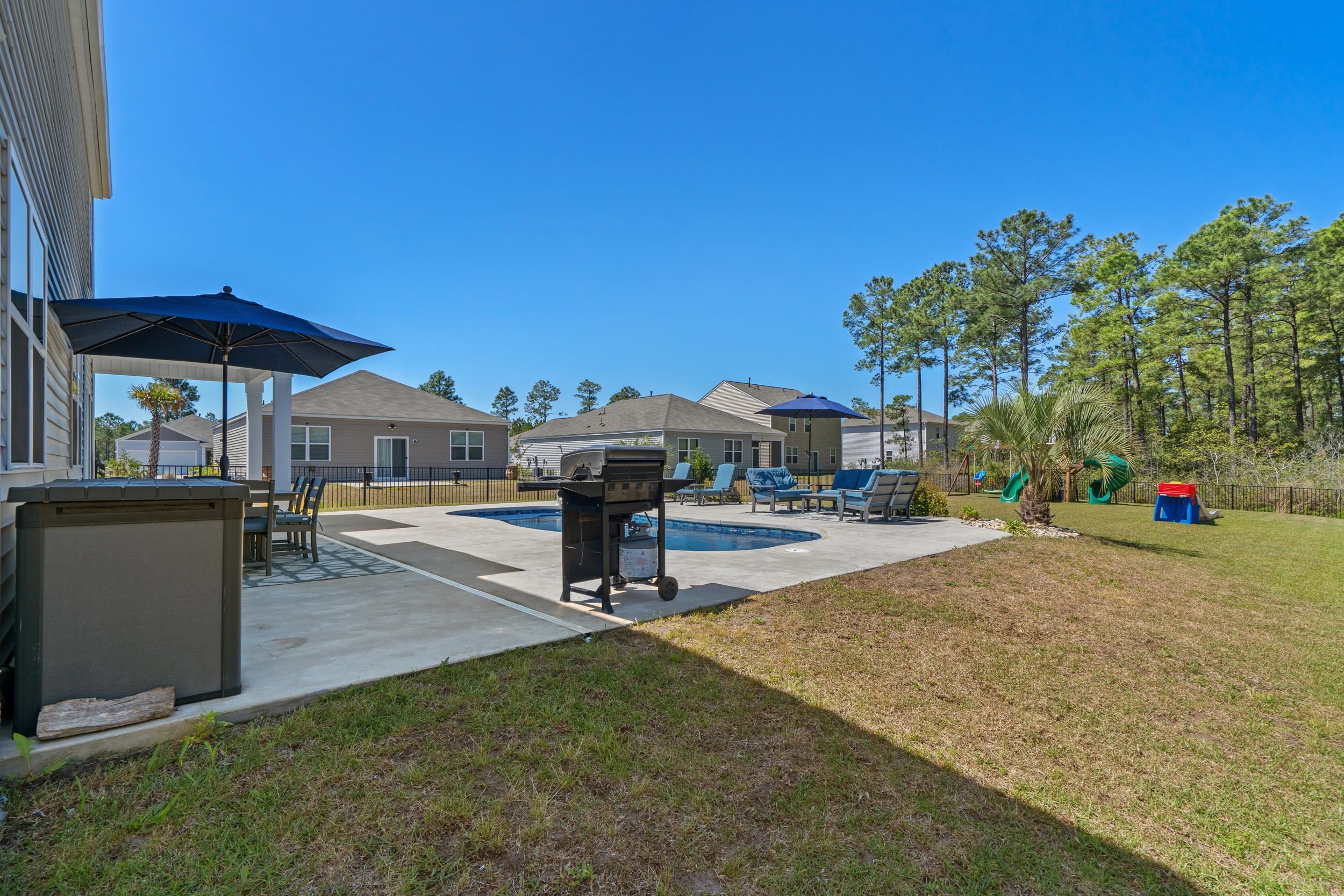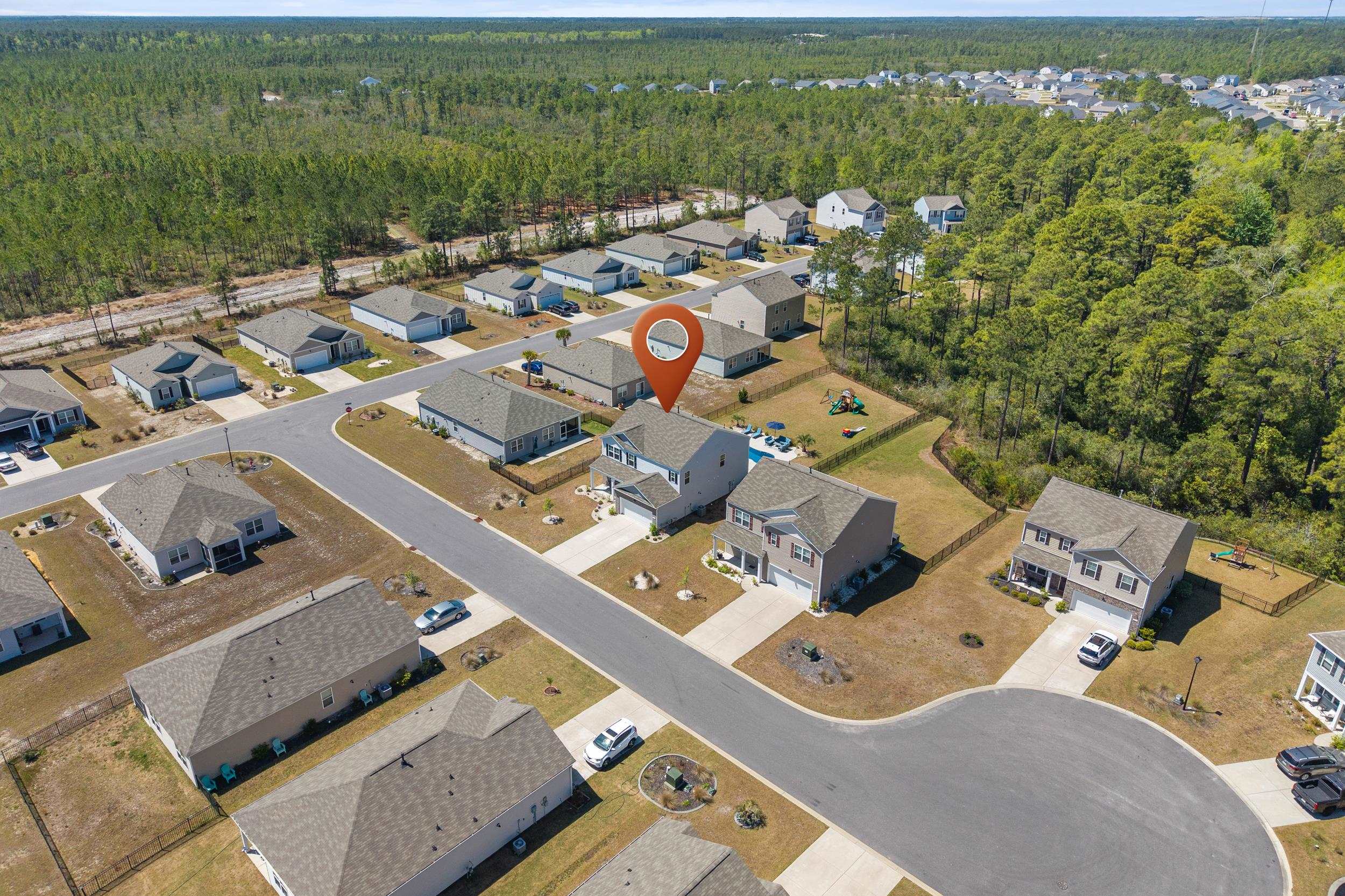 Welcome to this beautifully maintained, better-than new built home tucked away on a quiet wooded cul-de-sac in charming Conway, offering the perfect blend of peaceful country living and coastal convenience. Situated on a spacious lot, this 5-bedroom, 3.5-bath residence features an open and functional floor plan designed for both everyday living and entertaining, complete with a desirable first-floor primary suite providing comfort and privacy, as well as a versatile flex room perfect for a home office, playroom, or additional living space. The kitchen offers solid surface countertops, ample cabinetry, generous prep space, and natural gas cooking, with seamless flow into the main living and dining areas, while the upstairs loft adds valuable flexible space ideal for a media room, home office, or secondary lounge. Enjoy the peace of mind of newer construction without the added expense—this home already includes a fenced yard, private heated and cooled saltwater in-ground pool, landscaping, and window treatments, saving you time and money from day one. Step outside to your own backyard retreat where the pool becomes the centerpiece of everyday living—perfect for summer gatherings, weekend barbecues, or quiet evenings under the Carolina sky. With space for lounge chairs, outdoor dining, and entertaining, the fully fenced yard offers privacy and room to relax or play in your own personal oasis. Located just minutes from historic downtown Conway’s shops, dining, and riverfront charm, and only a short drive to having your toes in the sand in Myrtle Beach or North Myrtle Beach, this home truly offers the best of both worlds.