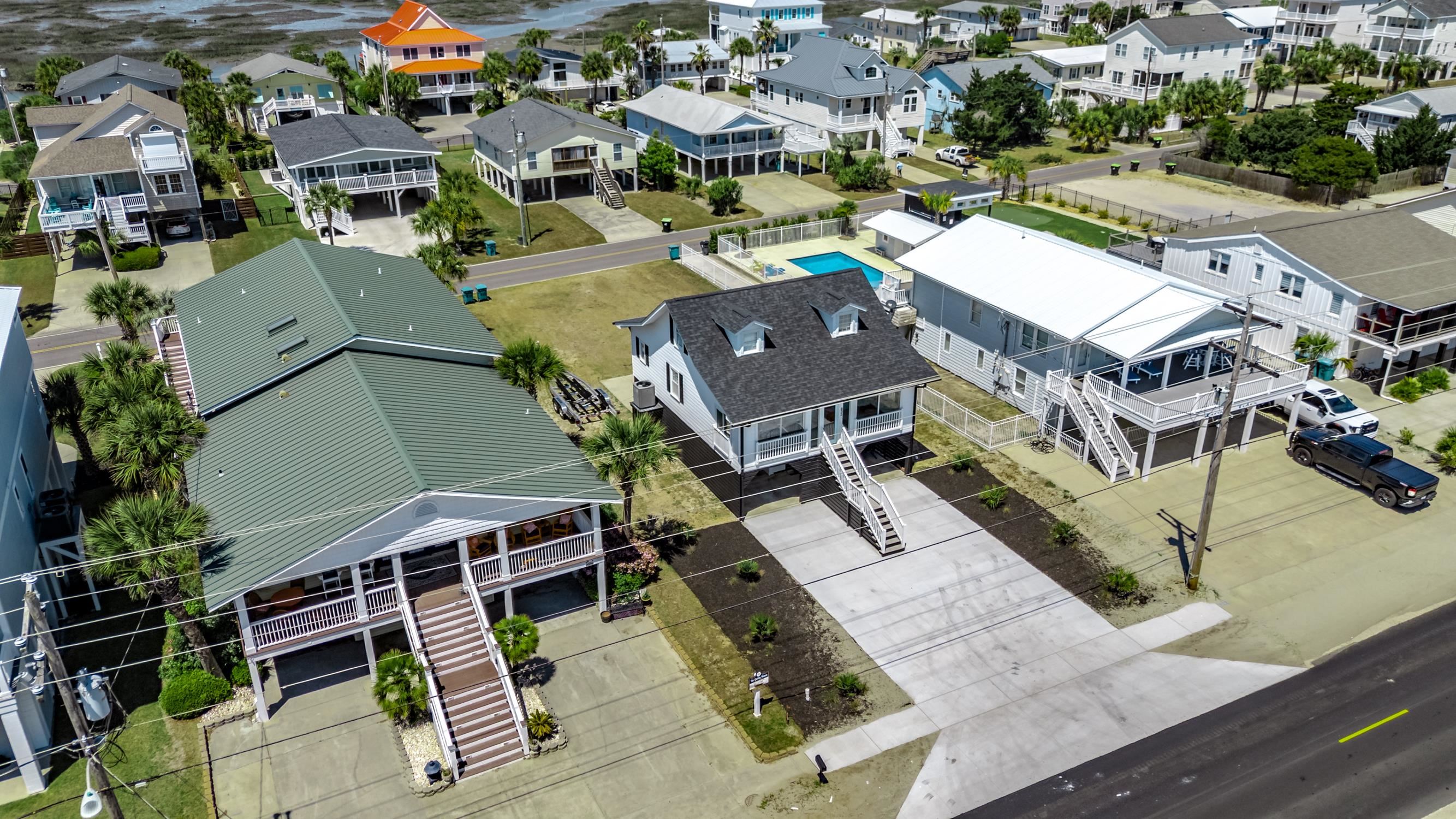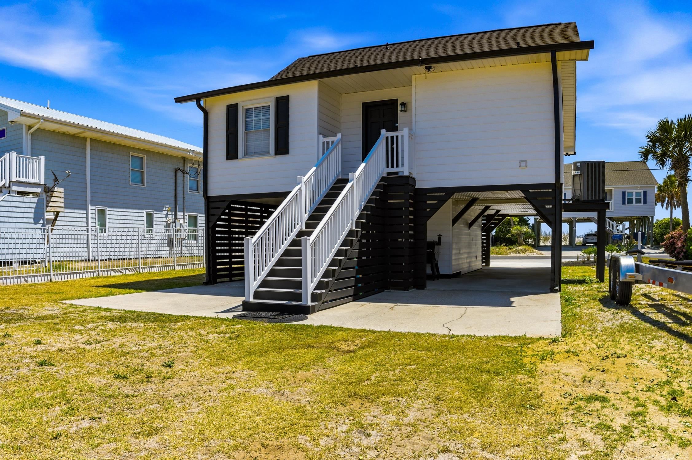 Welcome to 632 S Waccamaw Dr., a charming second-row beach home offering unobstructed ocean views and the perfect coastal lifestyle. Start your mornings on the spacious enclosed porch with a cup of coffee as you watch the sunrise over the water, or unwind in the evenings with a cocktail while enjoying the ocean breeze. It’s also the perfect spot for family time, whether you're playing board games or simply relaxing after a day at the beach. Inside, the home features an inviting open-concept living area with beautiful hardwood floors. The main bedroom is conveniently located on the first level, while the second floor offers two additional bedrooms and a full bath— ideal for family or guests. Situated on an oversized lot, this property provides endless possibilities, including space to add a pool or expand the home to accommodate larger gatherings. Beneath the home, you’ll find a spacious storage area for all your beach gear, an outdoor shower, and a shaded space perfect for entertaining or relaxing outdoors. Beach access is just steps away, making it easy to enjoy everything the coast has to offer. The home has been thoughtfully updated with a new roof installed in 2024, along with new exterior siding, a new concrete driveway, updated front porch, a new HVAC system, and new landscaping all completed in 2025. This home is a true gem—full of character, coastal charm, and stunning ocean views. Schedule your showing today and experience it for yourself.