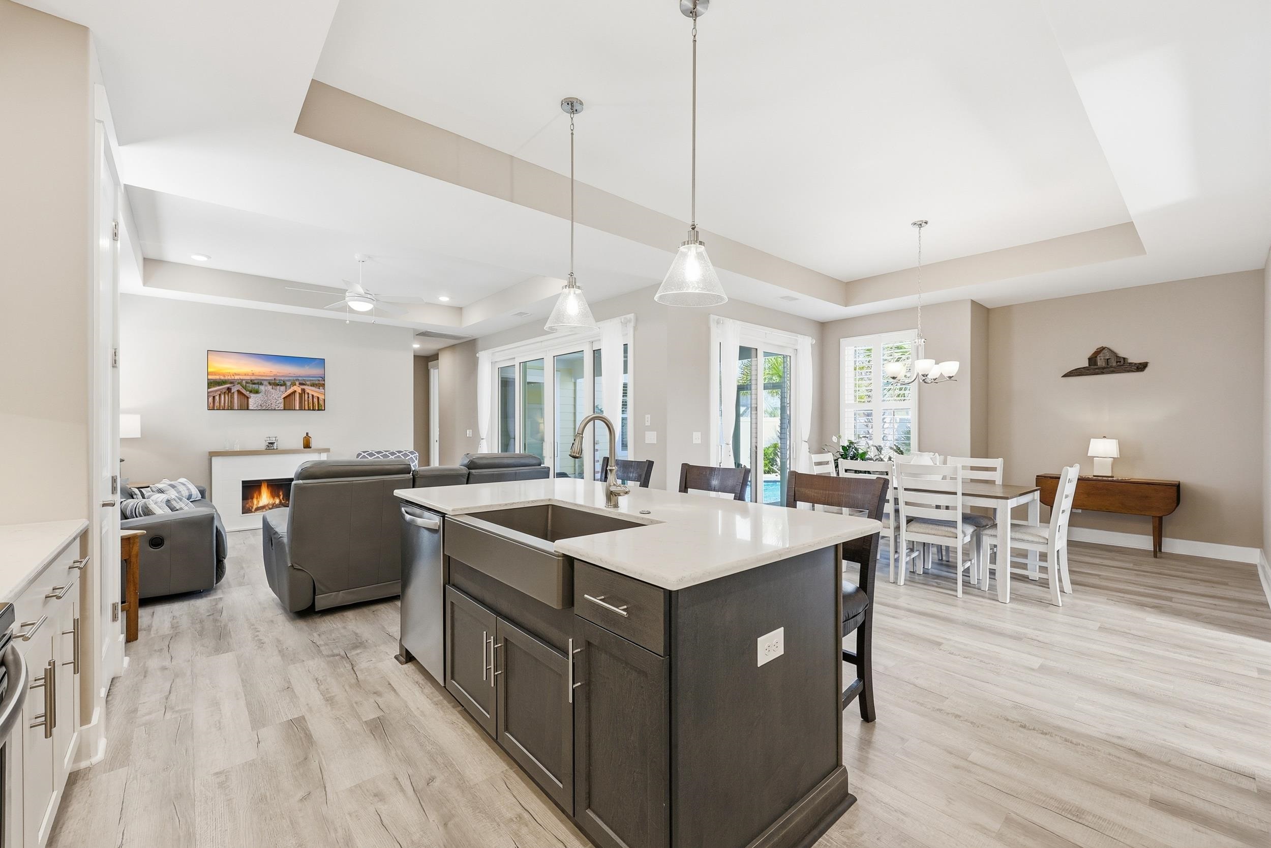 Welcome to this beauty, nestled within the gated waterfront community of Kingfish Bay in Calabash, NC. The Yellowtail I floor plan offers true turn-key living with modern coastal elegance, thoughtful upgrades, and your own private backyard retreat. From the moment you arrive, the home makes a statement. Step through the double-door entry into a breathtaking foyer with soaring, nearly two-story ceilings--setting the tone for the light-filled, open-concept design that follows. The main living area is both stylish and functional, featuring tray ceilings, luxury vinyl plank flooring, smooth rounded corners, and abundant natural light throughout. The seamless flow between living, dining, and kitchen spaces creates the perfect setting for everyday living and entertaining. The home has Plantation Shutters throughout. The gourmet kitchen is a standout, complete with stainless steel appliances, a built-in microwave, range hood, Quartz countertops, and a classic subway tile backsplash--designed to impress while remaining highly functional. This thoughtfully designed 3-bedroom, 2-bath home offers privacy and comfort with a split-bedroom layout. The primary suite is a true retreat, showcasing a tray ceiling, custom closet, and a spa-inspired bath featuring dual vanities, and a tiled walk-in shower. Private in-ground pool with water and fire features, enhanced by upgraded pool finish and designer patio tile. Professionally landscaped with upgraded palm trees, shrubs, and custom exterior lighting on both the home and surrounding trees (front and back). Screened-in patio with durable epoxy flooring--perfect for year-round outdoor living ! Whether you're sipping your morning coffee, hosting friends, or unwinding after a beach day, this space offers the ultimate blend of relaxation and privacy. The fenced backyard adds an extra layer of comfort for pets and outdoor living. The garage is fully equipped with epoxy flooring, built-in shelving, and added laundry cabinetry and shelving for optimal organization and functionality. As a resident of Kingfish Bay, you'll enjoy unmatched amenities, including a private oceanfront clubhouse on Sunset Beach with dedicated parking, a resort-style community pool and spa, fitness center, cinema room, and a riverfront park with kayak launch--offering the ultimate coastal lifestyle.