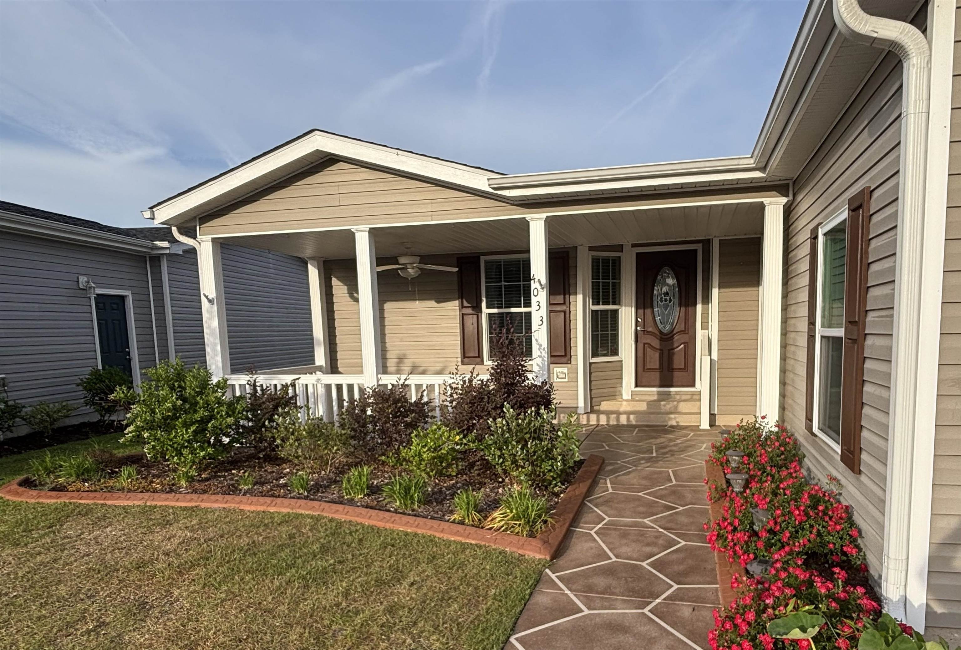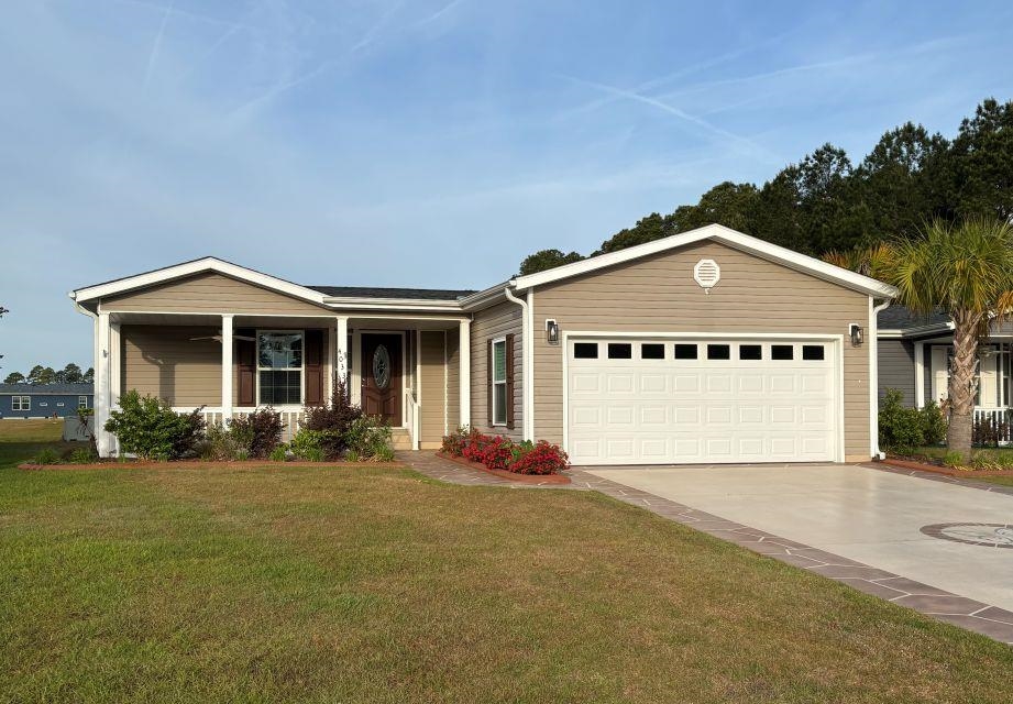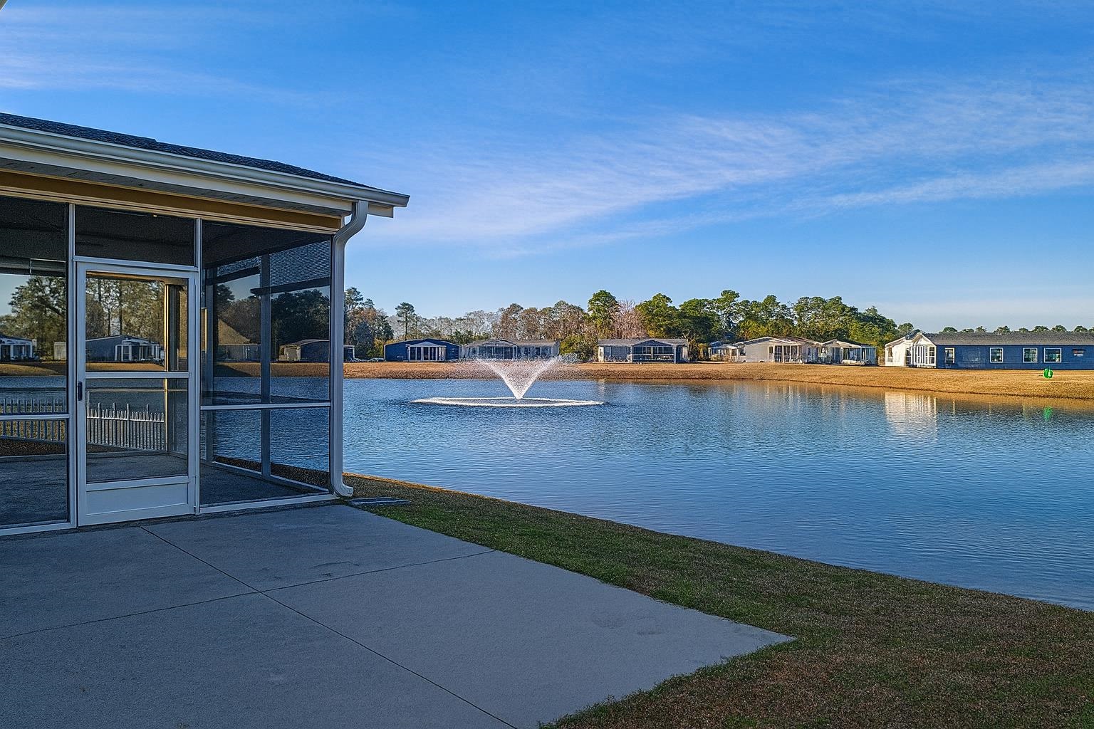 Lake and fountain view! Imagine residing in a secure, gated community where travel by golf cart is a daily convenience and breathtaking lake views greet you right outside your back door. This home offers the perfect opportunity to embrace the relaxed and vibrant Lakeside Crossing lifestyle from day one. Enjoy an abundance of activities and events while having a beautiful retreat to return to after a day full of fun. This popular Augusta model is situated on a prime lake lot, and its upgrades are apparent as soon as you arrive. The cement border, sealed driveway and painted sidewalk and porch were completed in 2025; as were the upgraded landscape and pull-down garage screen with a door, which makes outdoor work easy and adds to the home’s curb appeal. Entering through the front door, you are welcomed by abundant natural light and picturesque lake views visible through the wall of windows at the back of the home. To the left, a versatile third bedroom with French doors provides space for a bedroom, home office, library, or den. The open floor plan seamlessly connects the dining area, kitchen, and living room, creating a spacious environment perfect for entertaining or relaxing. The kitchen is designed for culinary enthusiasts, equipped with newer appliances, a farmhouse sink, an oversized pantry, and a large island. The primary bedroom includes a ceiling fan, walk-in closet, and an ensuite bathroom with a double vanity and a spacious walk-in shower. All bathroom fixtures have been upgraded, and you will love the two-way water access with pull-out sprayers on the faucets in the primary bath. The ceiling fans in the bedrooms, living room, front porch, and screened-in back porch ensure year-round comfort. Lakeside Crossing offers a wealth of amenities to keep you active and entertained without ever leaving the neighborhood. Enjoy access to indoor and outdoor pools and hot tubs, a fitness room, pub area, craft room, ballroom, dance and yoga room, tennis and pickleball courts, pool tables, and more. Sidewalks throughout the community make it easy to get around and enjoy the outdoors. Beyond the gates of Lakeside Crossing, you are conveniently located near dining and shopping options along Highway 501. Some photos in this listing have been virtually staged.
