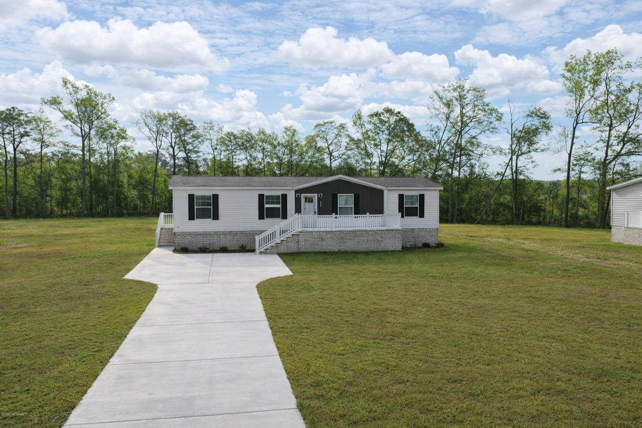 Welcome to this beautiful, brand-new manufactured home featuring brick underpinning and situated on approximately 0.78 of an acre of peaceful land with no HOA restrictions. This thoughtfully designed home offers three spacious bedrooms and two full bathrooms, providing comfort and functionality for everyday living. The open floor plan creates a seamless flow throughout the main living areas, and the inviting living room includes a cozy fireplace that makes the space feel warm and welcoming. The large kitchen island is perfect for entertaining guests or enjoying casual meals, while also offering plenty of prep space for cooking. A built-in desk area provides a convenient spot for working from home, helping with homework, or tackling creative projects. The laundry room is both practical and spacious, featuring a utility sink and abundant storage. This property is connected to public water and public sewer. You can enjoy the peace and privacy of rural living while still being just approximately 21 minutes from North Myrtle Beach, where you’ll find beautiful beaches, restaurants, entertainment, and golf. Buyer is responsible for all measurement verifications.