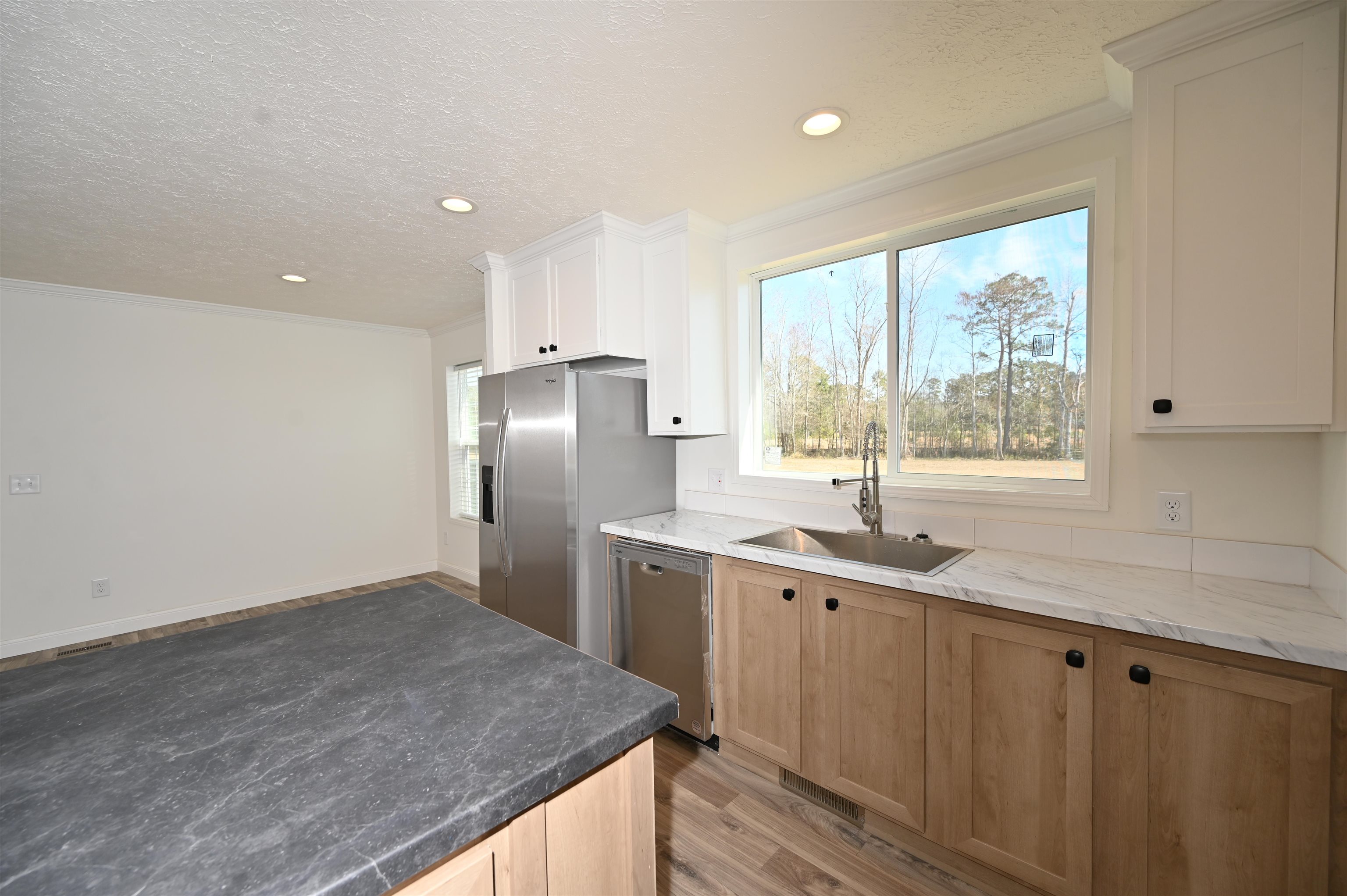 Welcome to this beautiful, brand-new manufactured home featuring brick underpinning and situated on approximately 0.63 of an acre of peaceful land with no HOA restrictions. This thoughtfully designed home offers three spacious bedrooms and two full bathrooms, providing comfort and functionality for everyday living. The open floor plan creates a seamless flow throughout the main living areas, and the inviting living room includes a cozy fireplace that makes the space feel warm and welcoming. The large kitchen island is perfect for entertaining guests or enjoying casual meals, while also offering plenty of prep space for cooking. A built-in desk area provides a convenient spot for working from home, helping with homework, or tackling creative projects. The laundry room is both practical and spacious, featuring a utility sink and abundant storage. This property is connected to public water and public sewer. You can enjoy the peace and privacy of rural living while still being just approximately 21 minutes from North Myrtle Beach, where you’ll find beautiful beaches, restaurants, entertainment, and golf. Buyer is responsible for all measurement verifications.