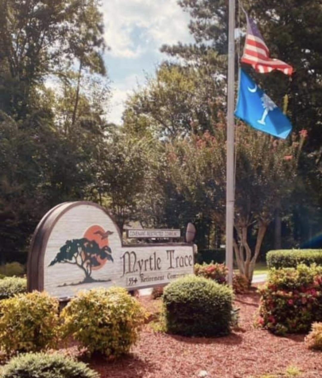 ON GOLF COURSE , AGE 55+ MYRTLE TRACE , 2 OR 3 BEDROOM /2 FULL BATHROOMS , home in BEST 55+ community. NEW KITCHEN , NEW shower in main BATHROOM , , NEW CARPET . All new windows. This newly painted interior home with large rooms is on a lot bordering a golf course. This is a 2 Bedroom "split" floor plan situated on a quiet street. Wet bar & SMALL Refrigerator in FAMILY room.. This is a pet-friendly community with a clubhouse with activities plus a community pool. One mile from Conway hospital and Walmart. Also nearby golf, restaurants and shopping! 15 MILES TO THE BEACH AS THE CROW FLIES . : Four activities a day at the clubhouse, different activities. Seven days a week, monthly parties & monthly dinners out. Features cultivated landscaping, an inviting clubhouse, outdoor saltwater pool, an exciting bocce ball court, and a horse shoe pit. This home affords you easy access to the beach and golfing along with all of the other activities and happenings in Myrtle Beach & Conway including fun eateries, award winning off-Broadway shows, public fishing piers, Conway’s historic river walk, and intriguing shopping adventures along the Grand Strand .Conveniently located to your everyday needs, including grocery stores, banks, post offices, medical centers, doctors’ offices, and pharmacies. 15 MILES TO THE BEACH AS THE CROW FLIES . Myrtle Trace is a vibrant and active 55+ community with Fantastic amenities, including an outdoor pool and clubhouse. The low HOA dues and low SC taxes make this an affordable option for those seeking an active retirement lifestyle. The community offers a plethora of activities, including potluck dinners, movie nights, bocce ball, dominoes, shuffleboard, horseshoes, line dancing, poker, scrabble, canasta, bridge, mahjong, game nights, bingo, chorus, garden club, ice cream socials, and holiday parties. Centrally located, this property is just a mile away from Coastal Carolina University and only12 miles from the beach. Enjoy a round of golf at the nearby Burning Ridge Golf Club or shop at The Outlets, both just a minute down the street. You'll also find a range of shopping and dining options nearby, including Tanager Outlets, Food Lion, Kroger, Walmart, and Lowes Home Improvement. Don't miss out on the opportunity to own this exceptional home in the desirable Carolina Forest area.